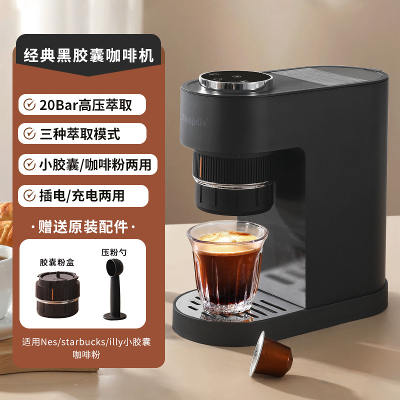 • [공식 규격] 클래식 블랙 - 캡슐 커피 머신 [플러그인 및 충전식 겸용/20Bar 고압 추출/캡슐 콜드브루 커피 파우더 일체형]