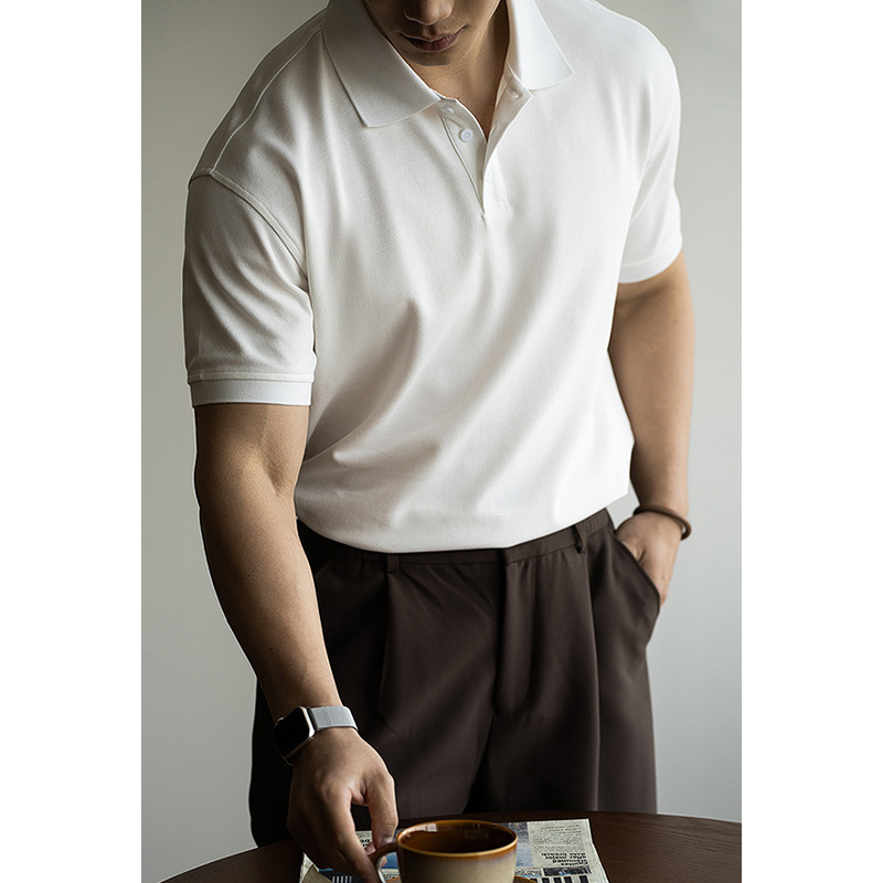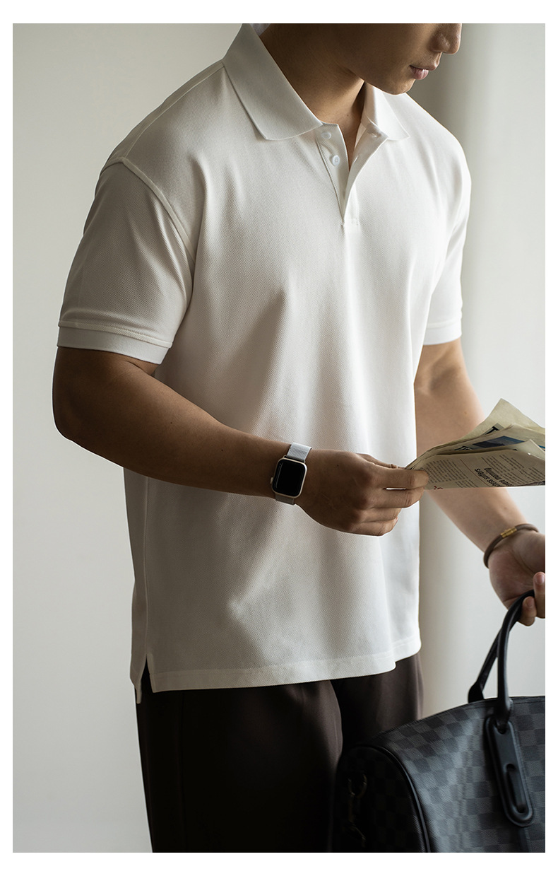 미국 헤비급 280G 두꺼운 진주 반팔 POLO 셔츠 남자 2025 년 여름 조명 비즈니스 캐주얼 옷깃 얇은 코트