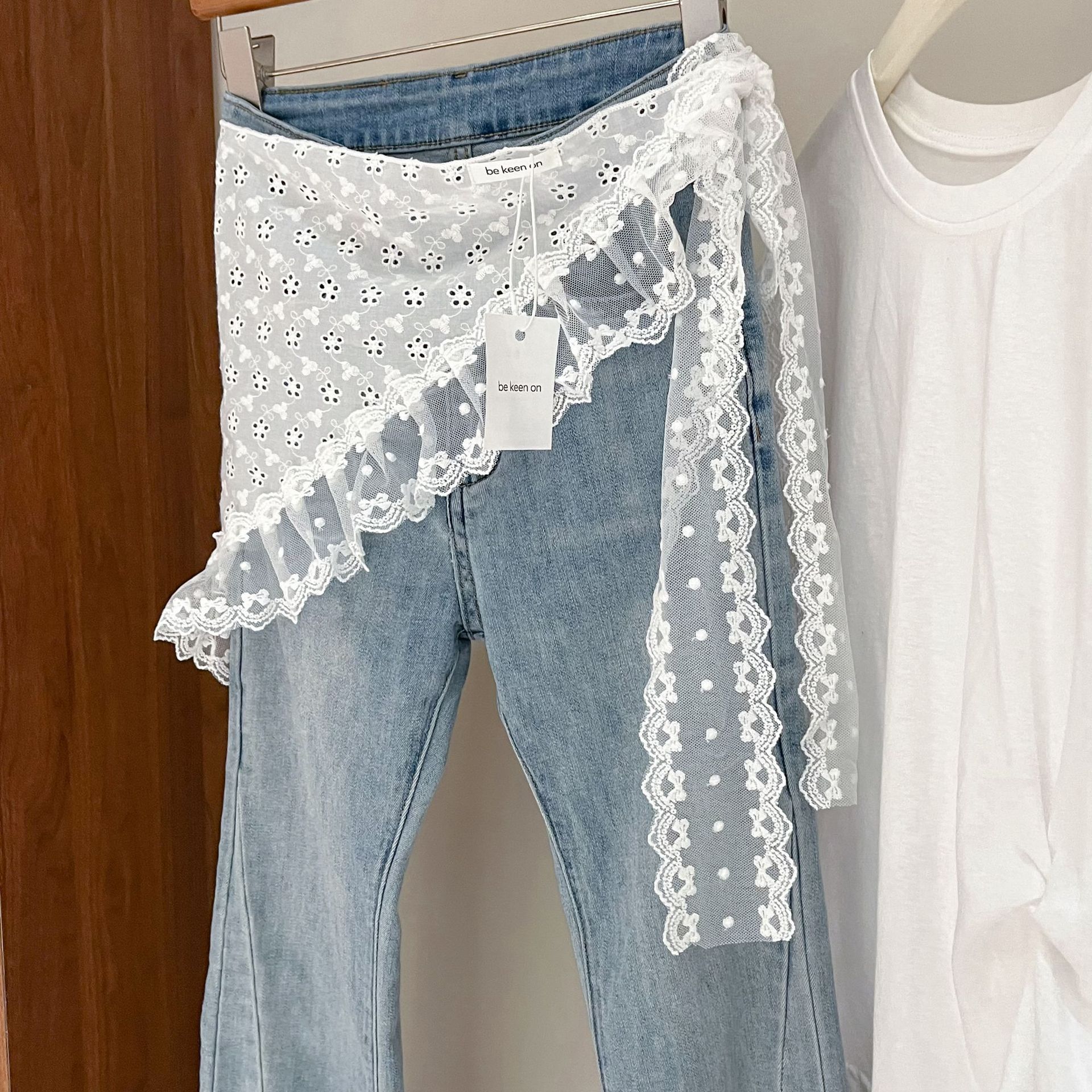 여아용 한국식 레이스 메쉬 커튼, 패셔너블한 레이어드 스커트, 맞춤형 레이스업 거즈 스커트