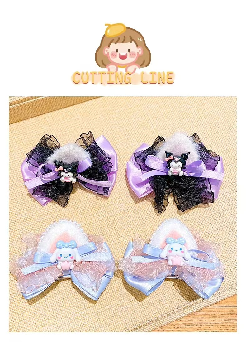 어린이 헤어 액세서리 폴카 도트 레이스 보우 쿠로미 어린 소녀 헤어 액세서리 Sanrio 어린이 헤어 클립은 머리를 다치게하지 않습니다스토어 가기