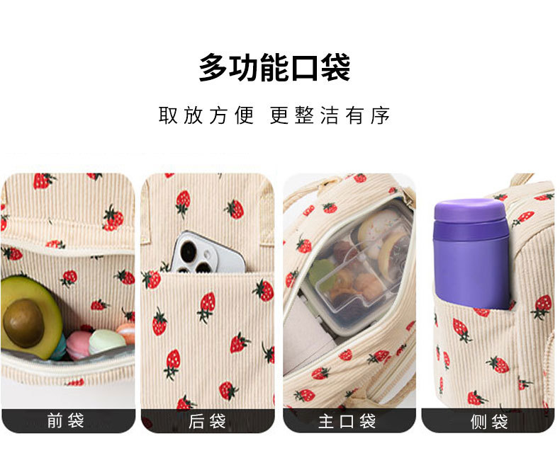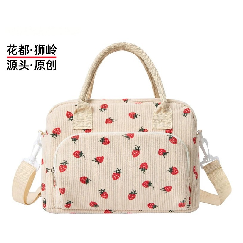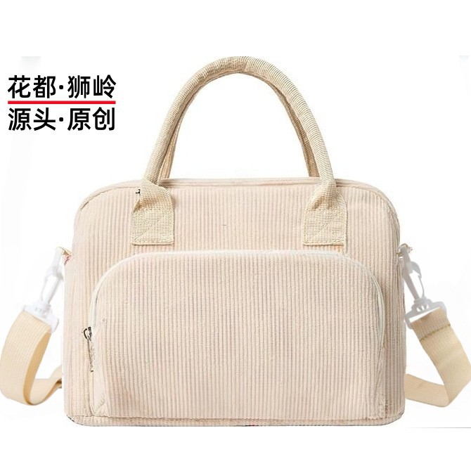 아마존 인기 도시락 가방 코듀로이 대용량 보온 가방 학생 도시락 가방 해외 직구 피크닉 가방