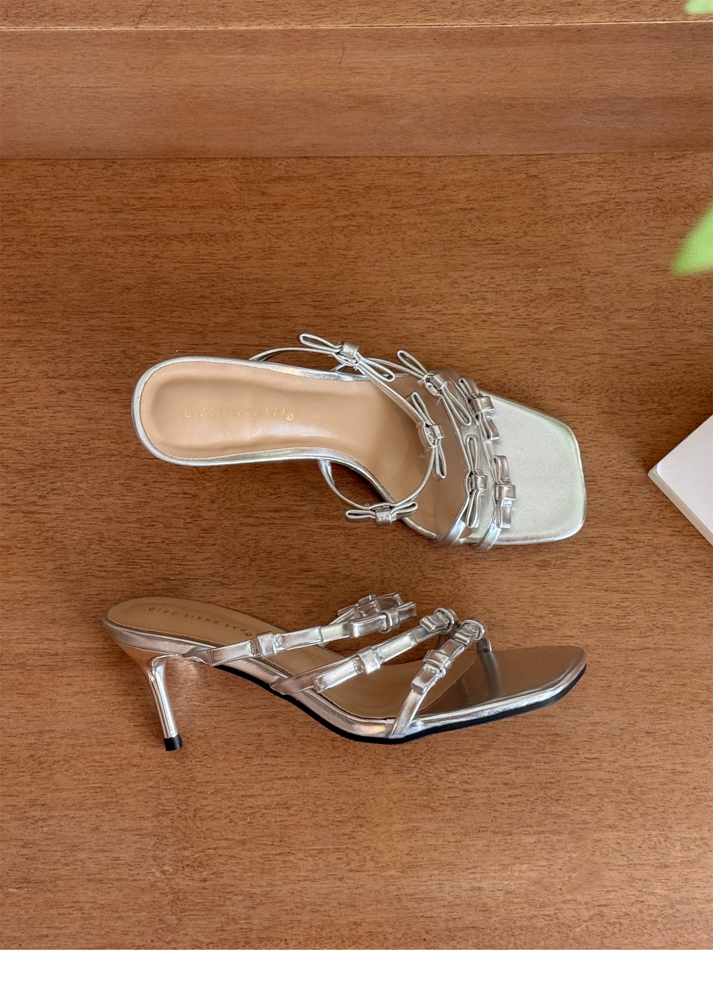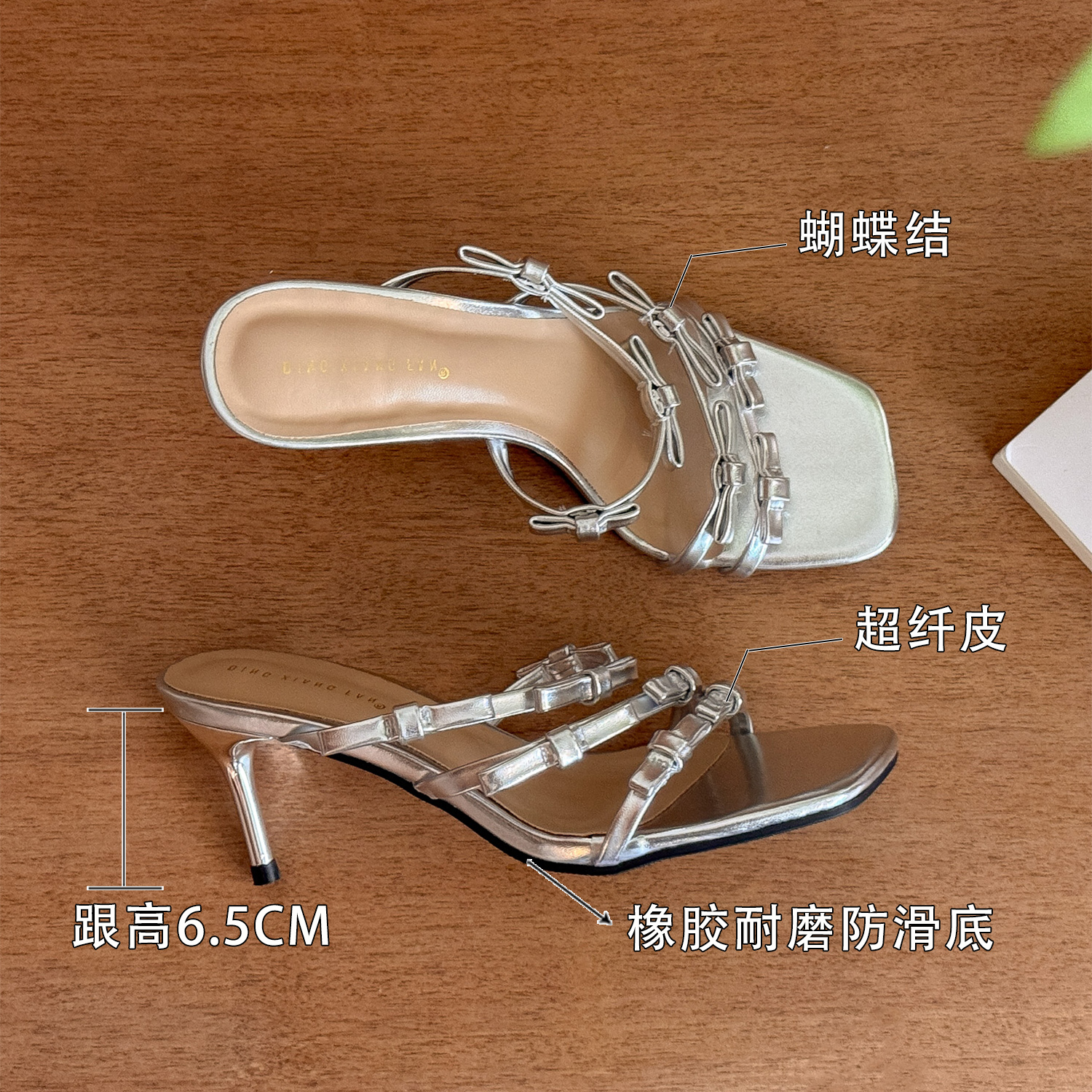 멋진 소녀! 실버 나비 스트랩 샌들 여성용 2025 여름 스퀘어 토 스틸레토스토어 가기