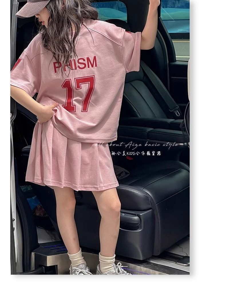 한국 스타일 소녀 세트 2025 여름 신식 소녀 서양식 반팔 티셔츠 큰 어린이 캐주얼 스커트 투피스 세트