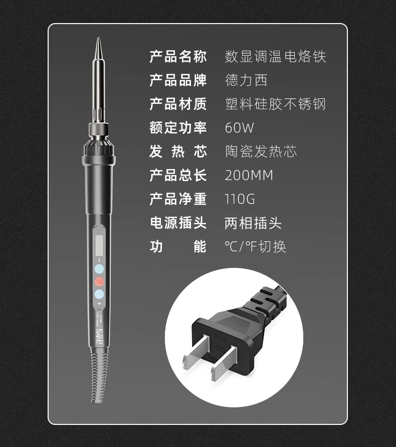 • 60w 온도 조절(빠른 가열 및 일정한 온도 지능형) 공식 표준 구성[납땜 인두 스탠드 포함].