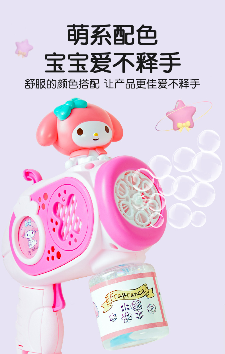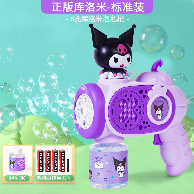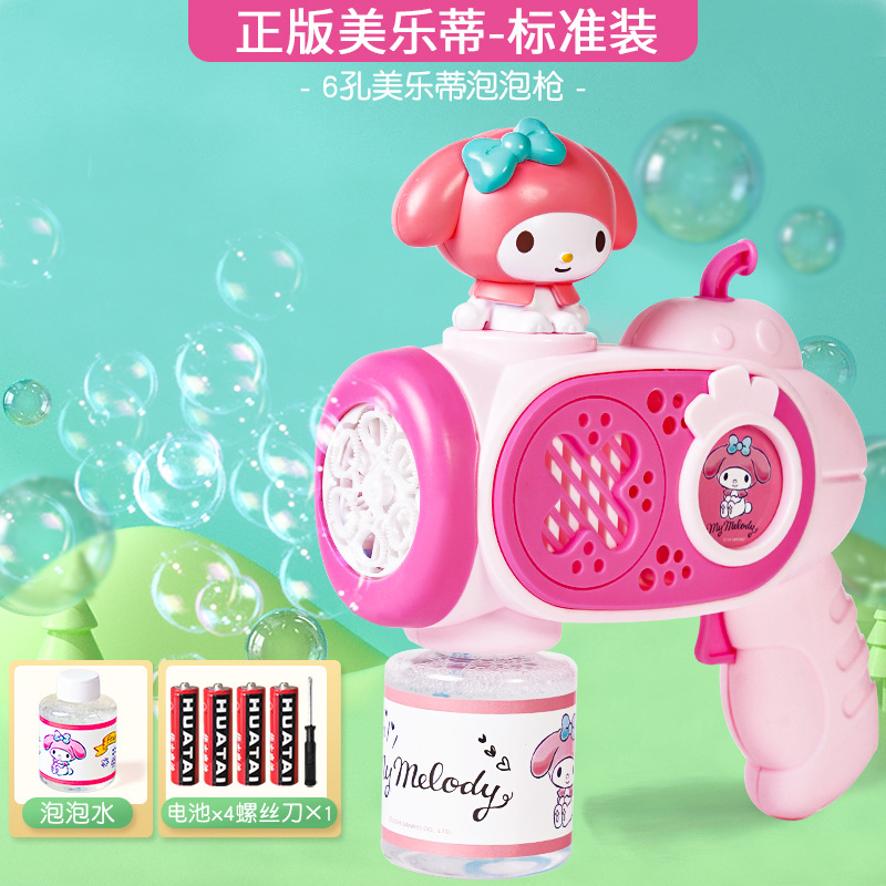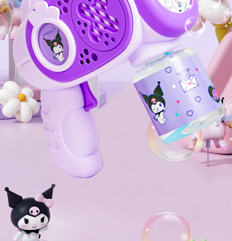 2025 새로운 어린이 거품 기계 핸드 헬드가 새지 않습니다 소녀 산리오 쿨로 미 전기 거품 총 자동 장난감