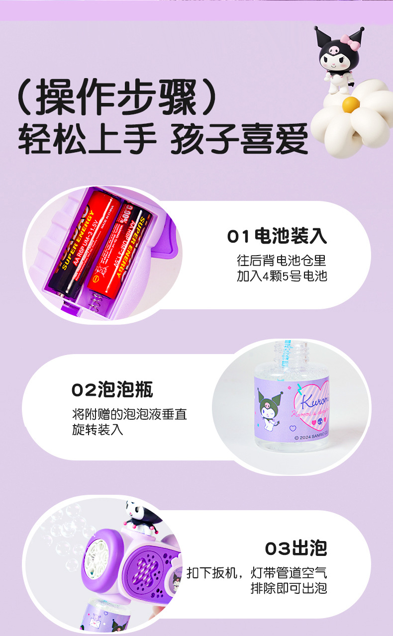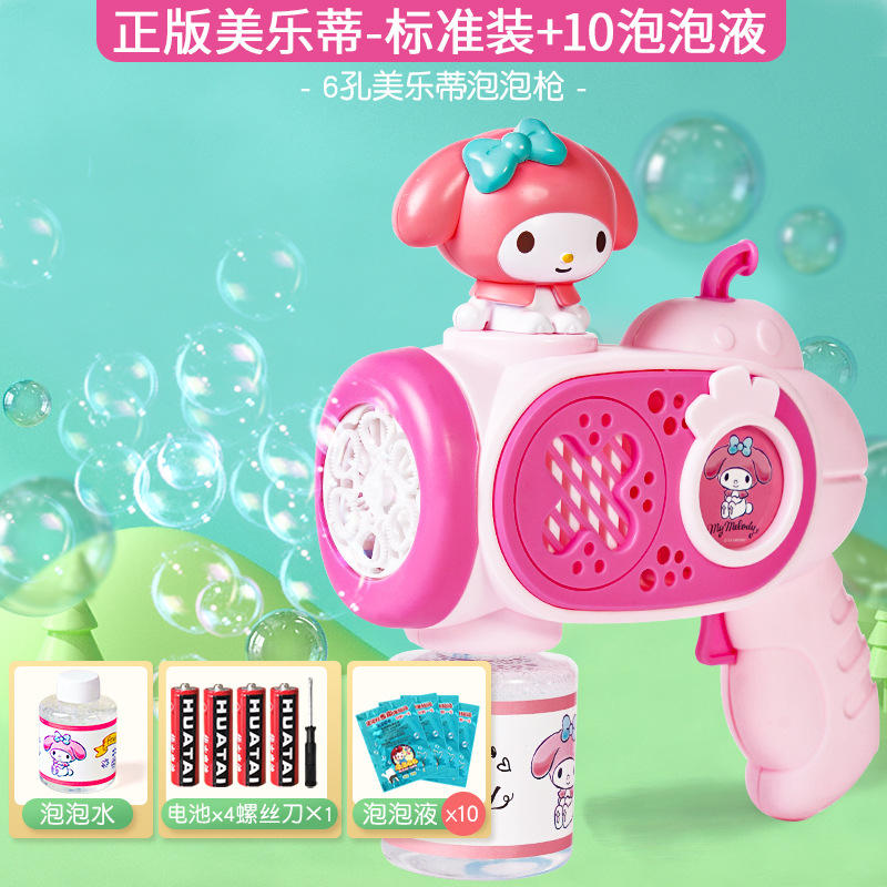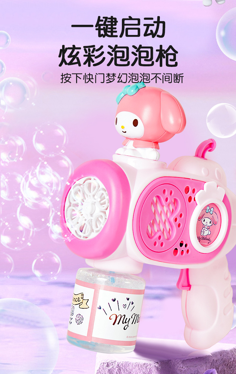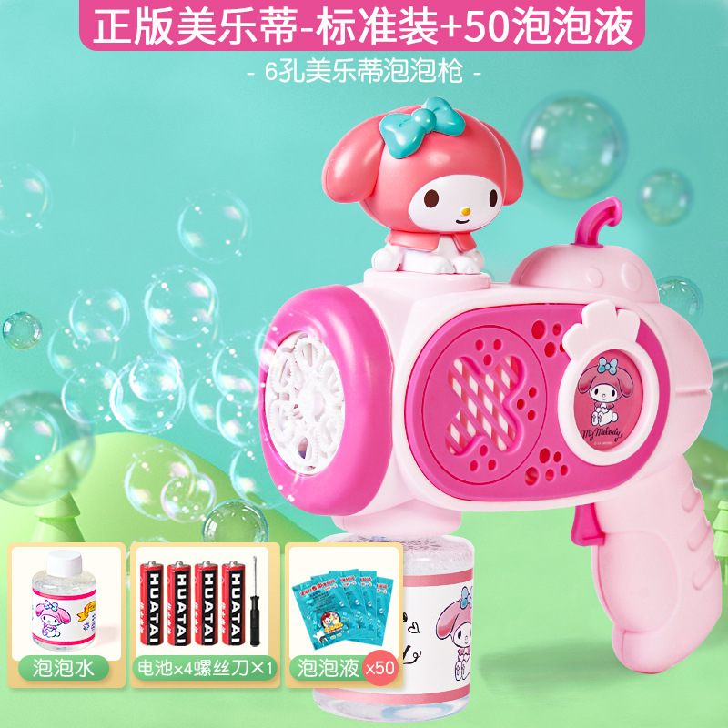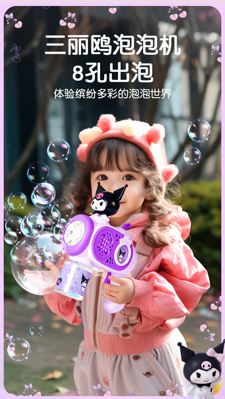 2025 새로운 어린이 거품 기계 핸드 헬드가 새지 않습니다 소녀 산리오 쿨로 미 전기 거품 총 자동 장난감스토어 가기