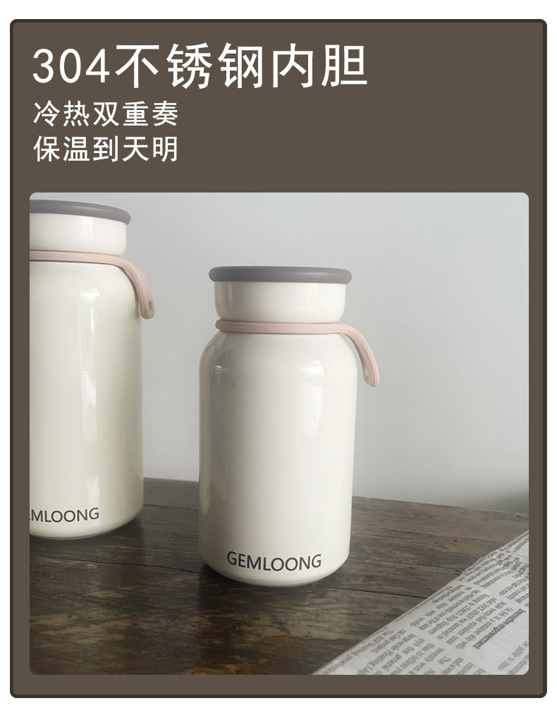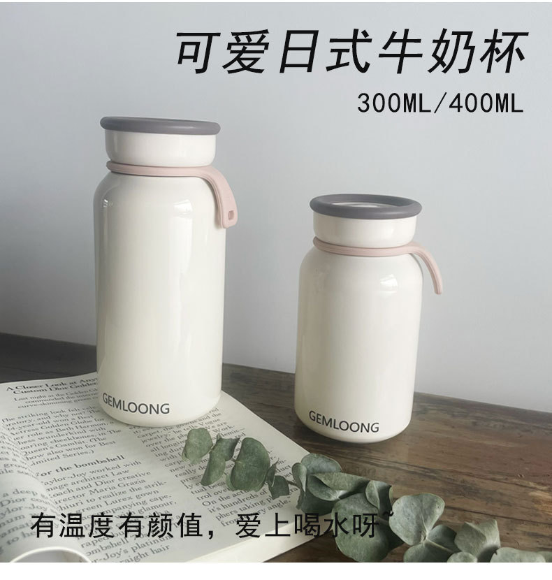 일본식 심플한 304 스테인레스 스틸 우유 보온병 컵, 고급스러운 여성용 소형 휴대용 진공 물컵, 기념품스토어 가기