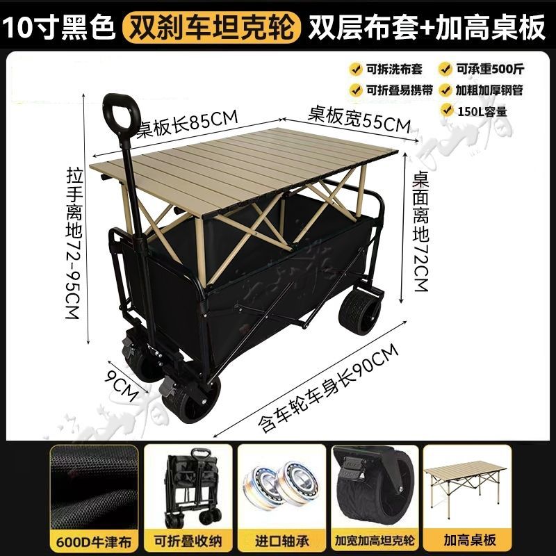 • 야오헤이 [600D 이중 두꺼운 옥스포드 천] - 10inch 탱크 휠 + 더블 브레이크 + 견인 버킷 스타일 + 접이식 검정색 테이블