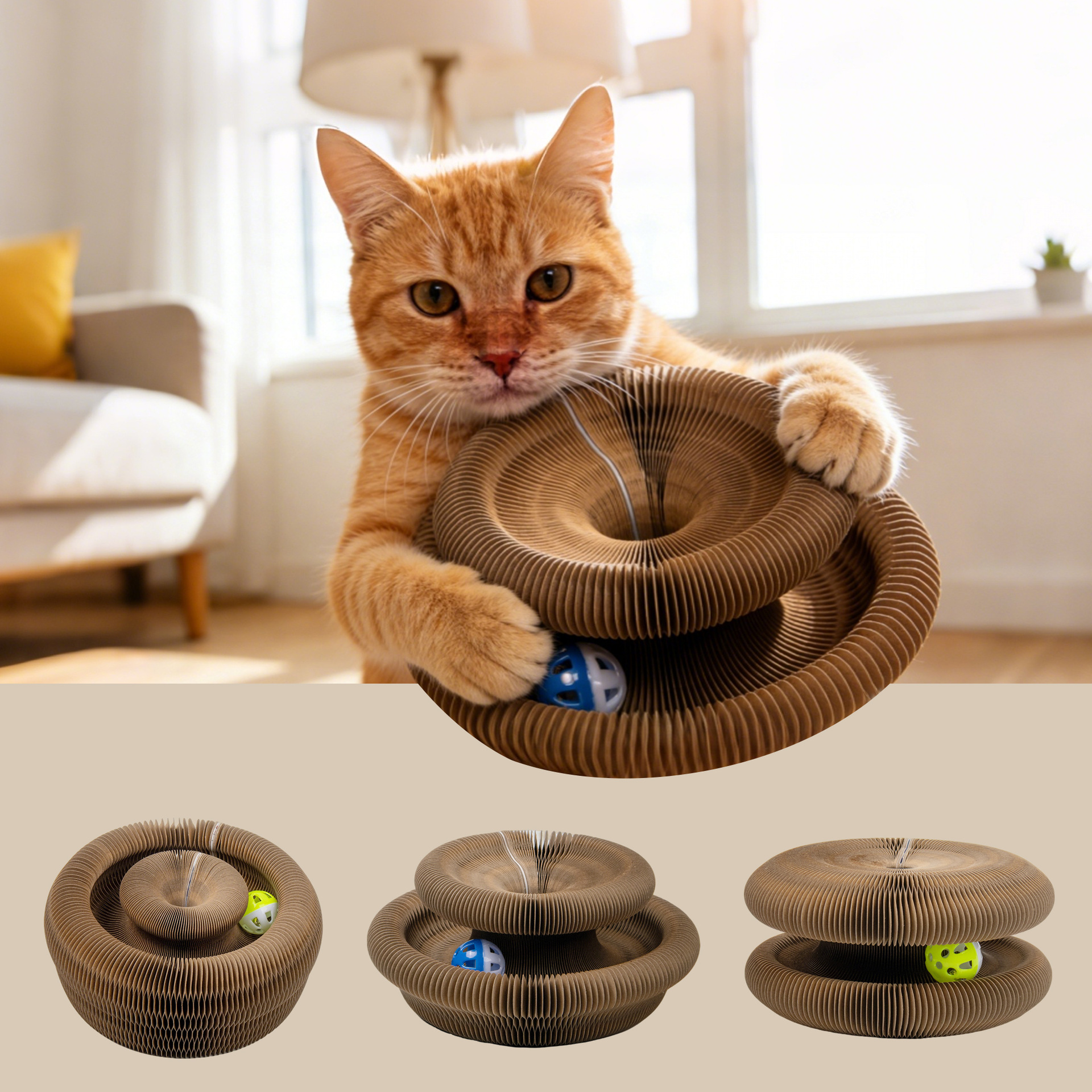 장기 고양이 긁기 보드 고양이 장난감 벨 자기 구호 고양이 연삭 발톱 고양이 등반 랙 골판지 종이 스크래치 방지 접이식 고양이 둥지스토어 가기