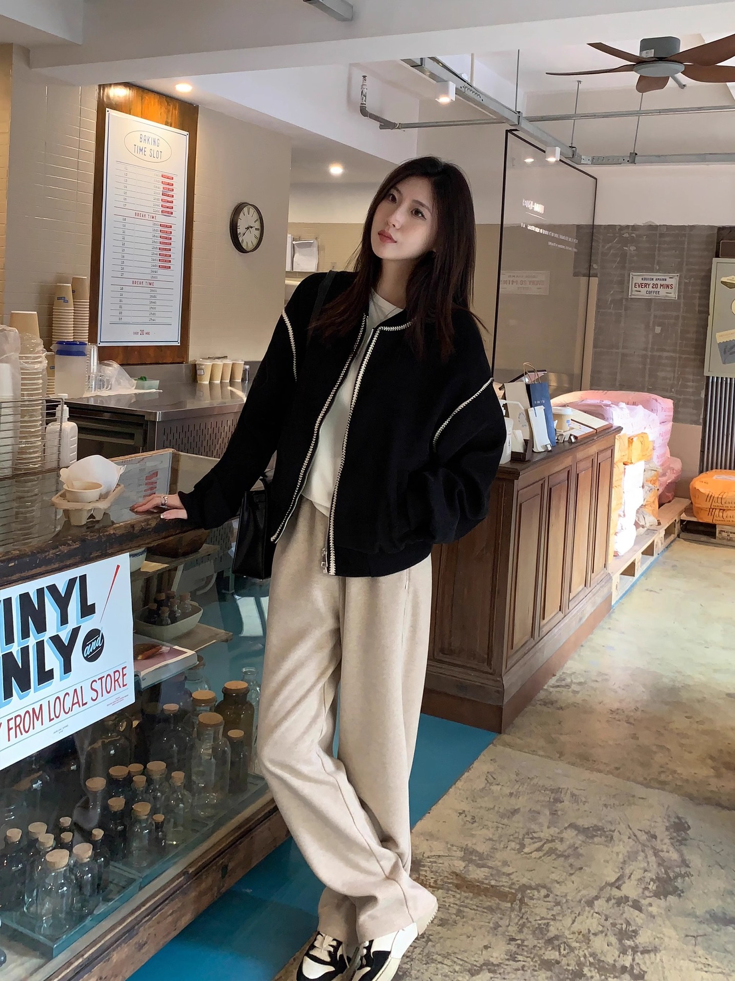 밀 패턴 레트로 캐주얼 짧은 야구 세트 여자 봄 새로운 느슨한 블랙 카디건 재킷 코트스토어 가기