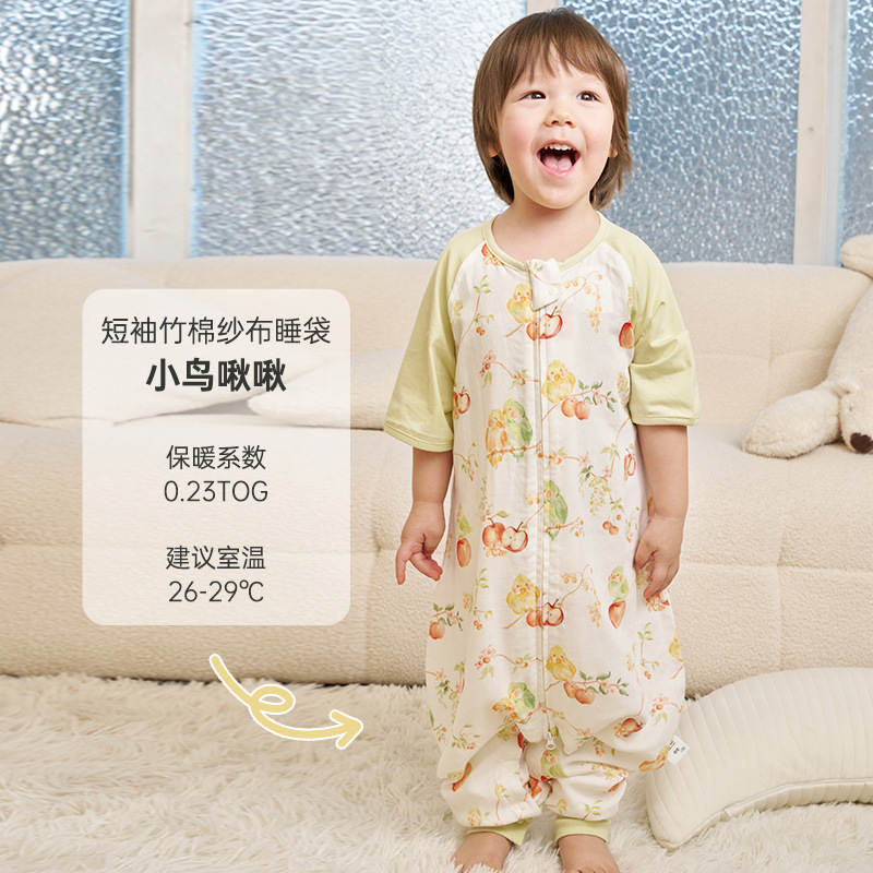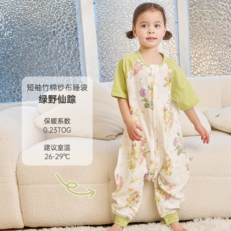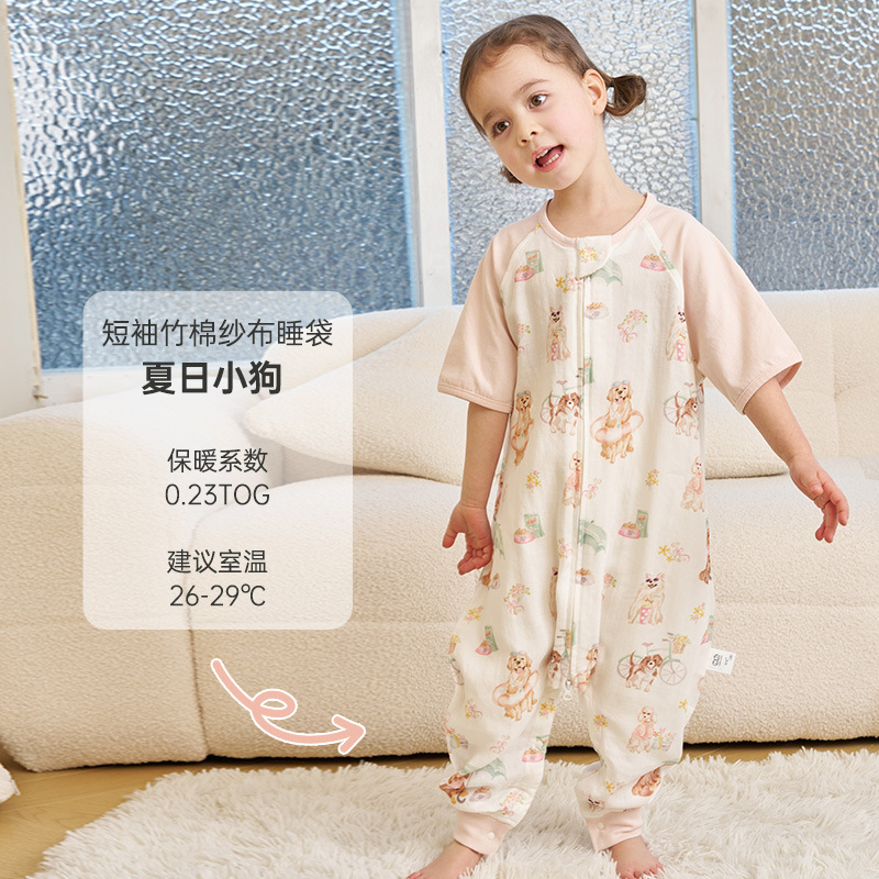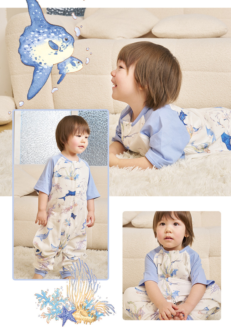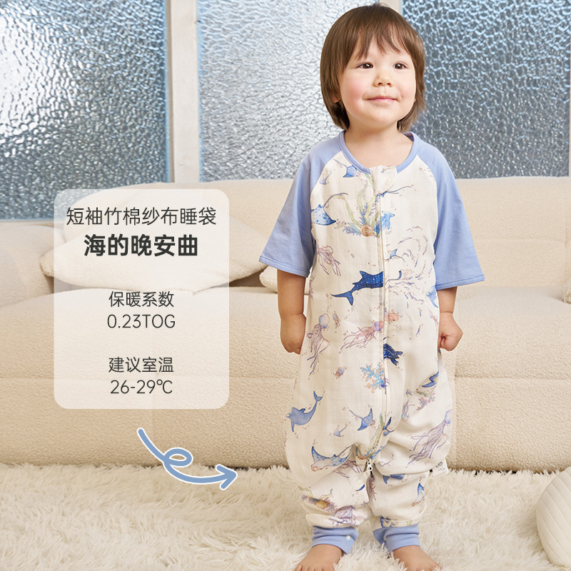 안단 신상 봄여름 얇은 수면조끼 아기 에어컨방 대나무면 반팔 다리 분리형 아동 수면조끼 유아 롬퍼
