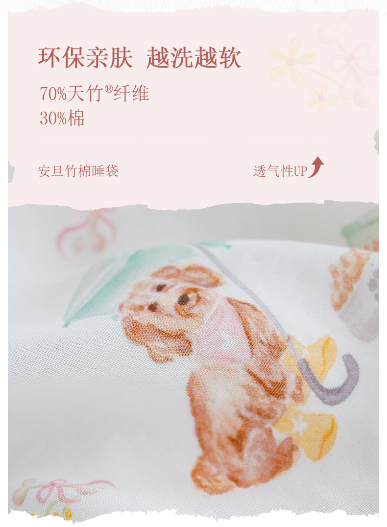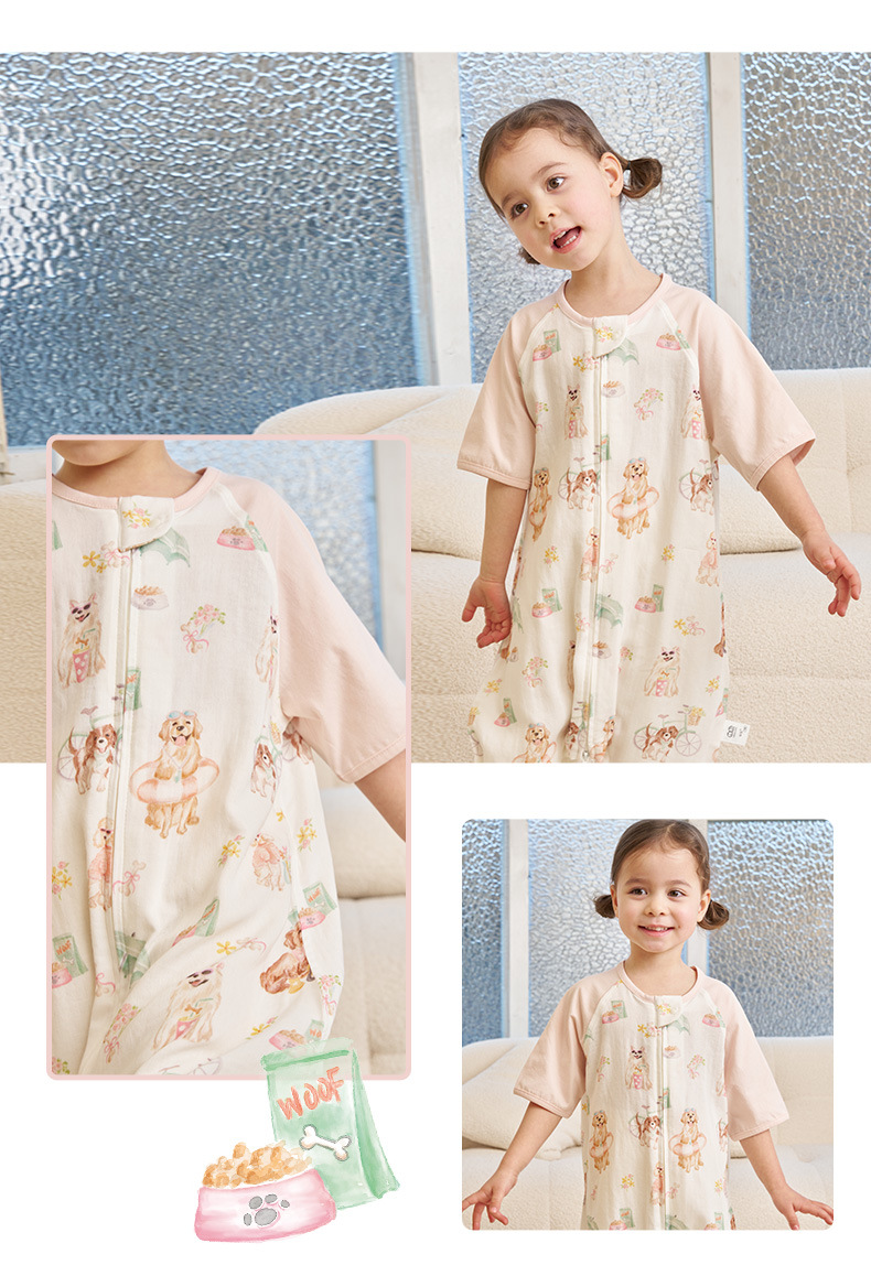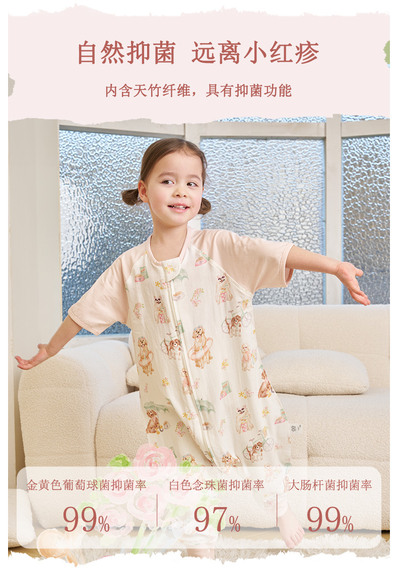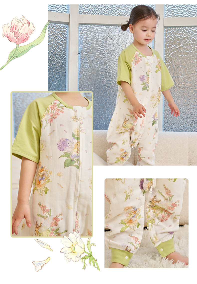 안단 신상 봄여름 얇은 수면조끼 아기 에어컨방 대나무면 반팔 다리 분리형 아동 수면조끼 유아 롬퍼