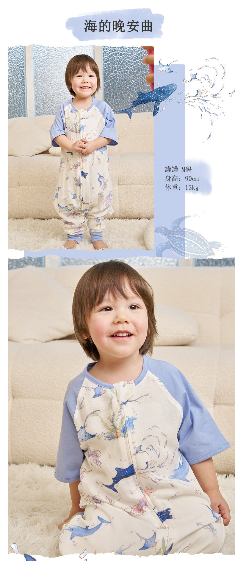 안단 신상 봄여름 얇은 수면조끼 아기 에어컨방 대나무면 반팔 다리 분리형 아동 수면조끼 유아 롬퍼스토어 가기