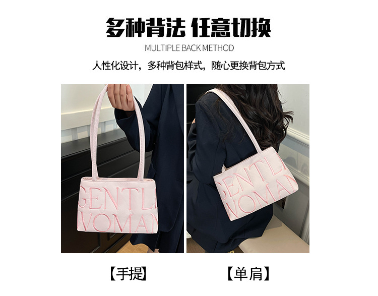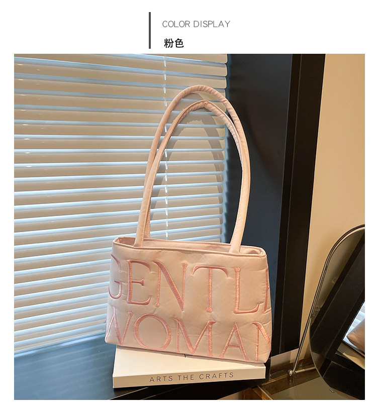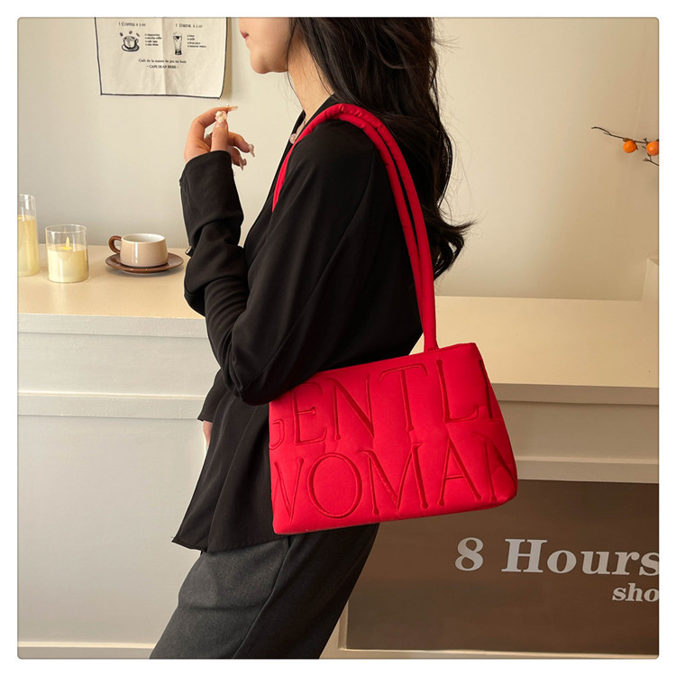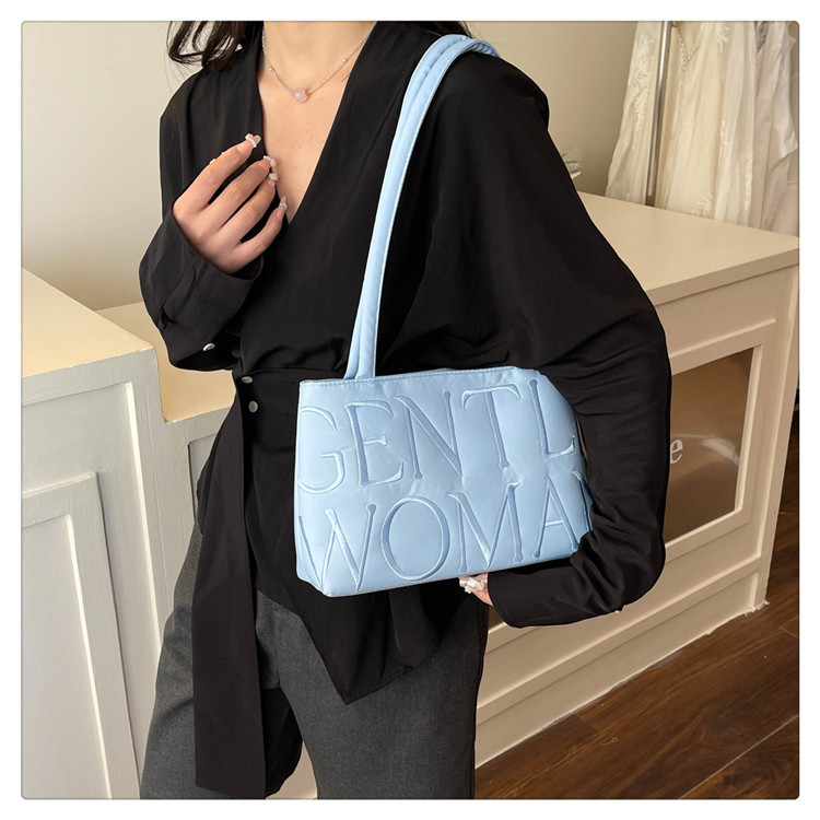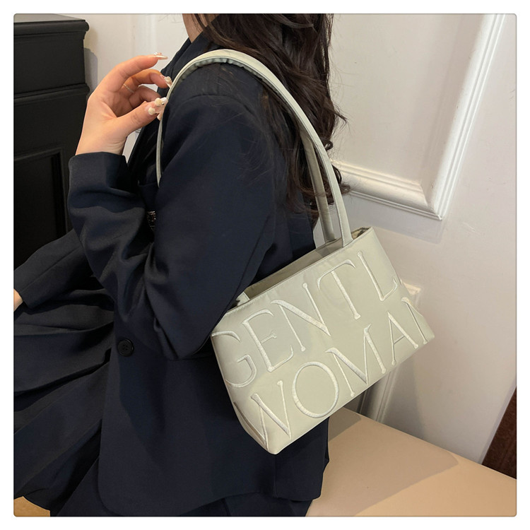 어깨 가방 새로운 2025 틈새 디자인 새틴 편지 자수 한국 스타일 유행 여자를위한 올 매치 핸드백