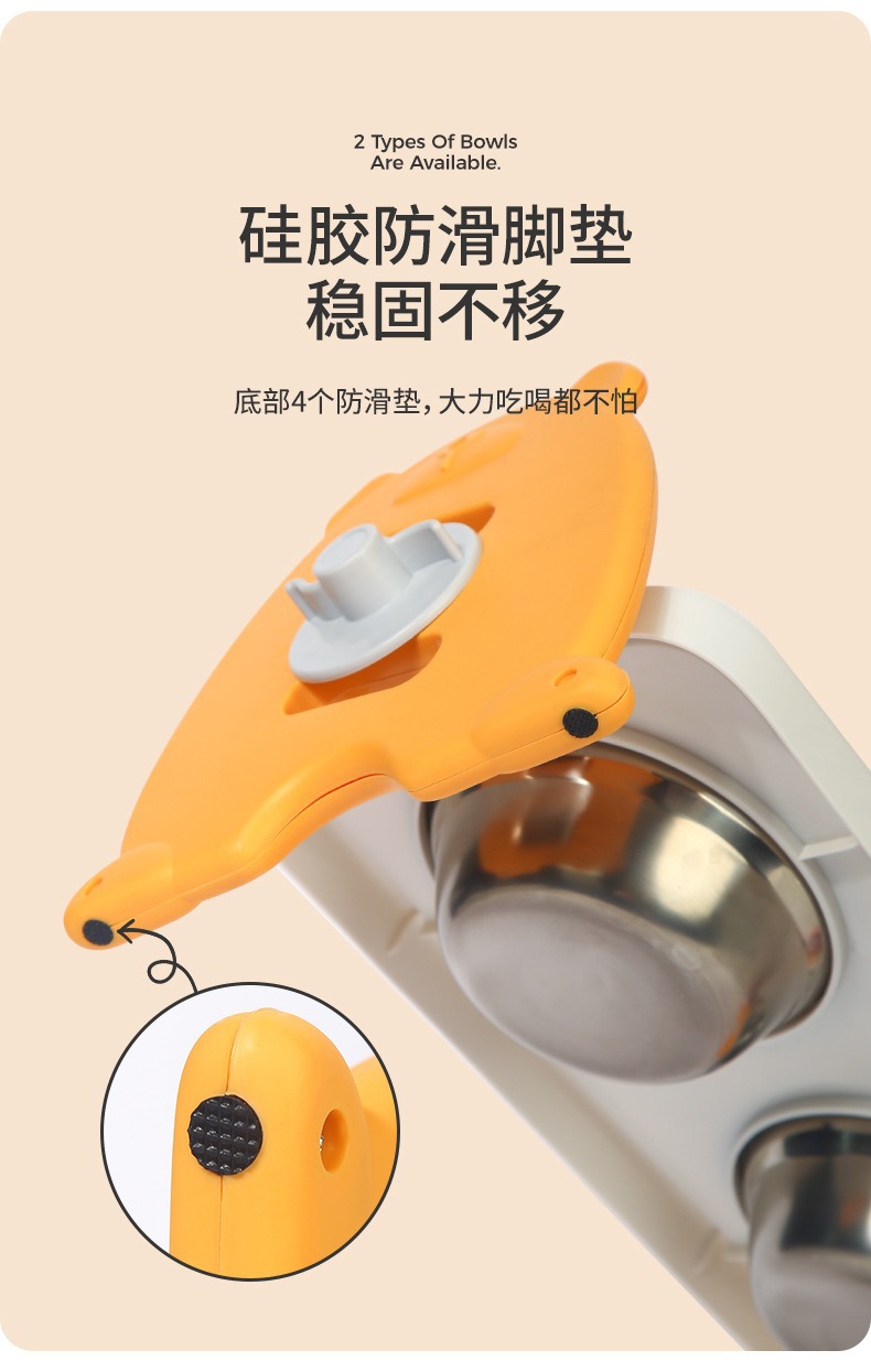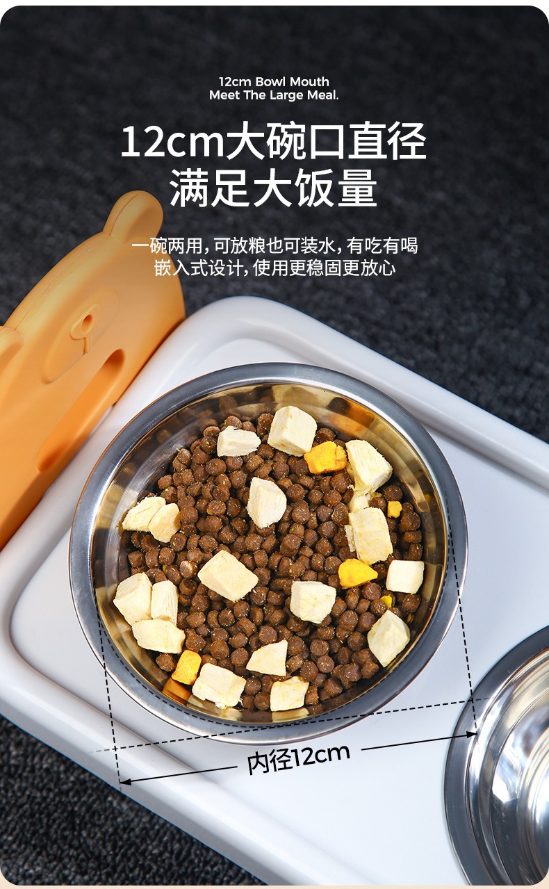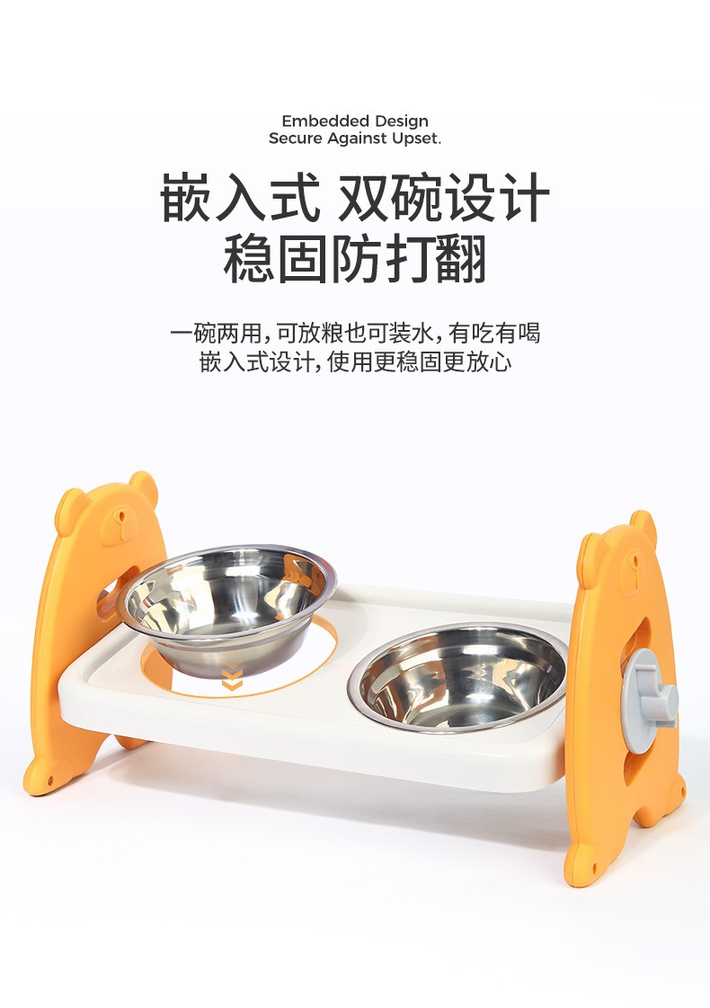 • 스테인레스 스틸 목 보호대 더블 보울-옐로우