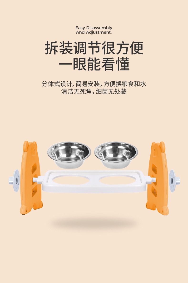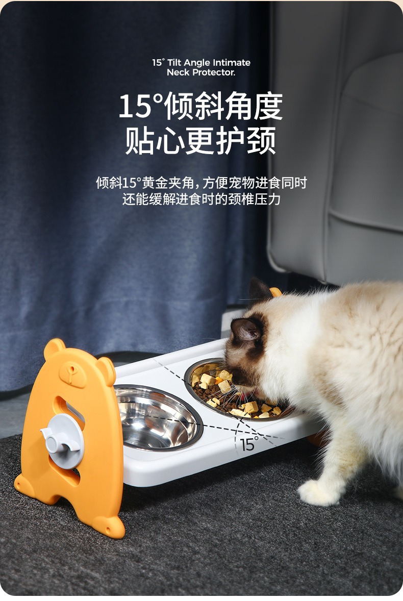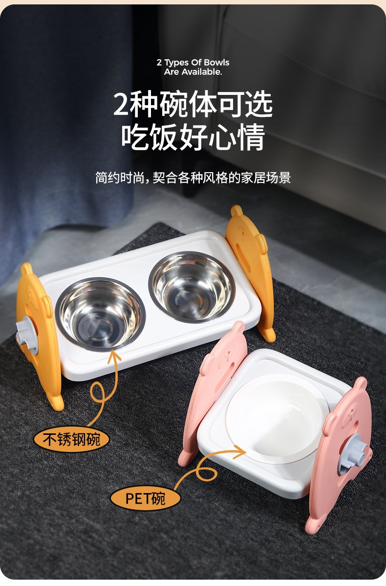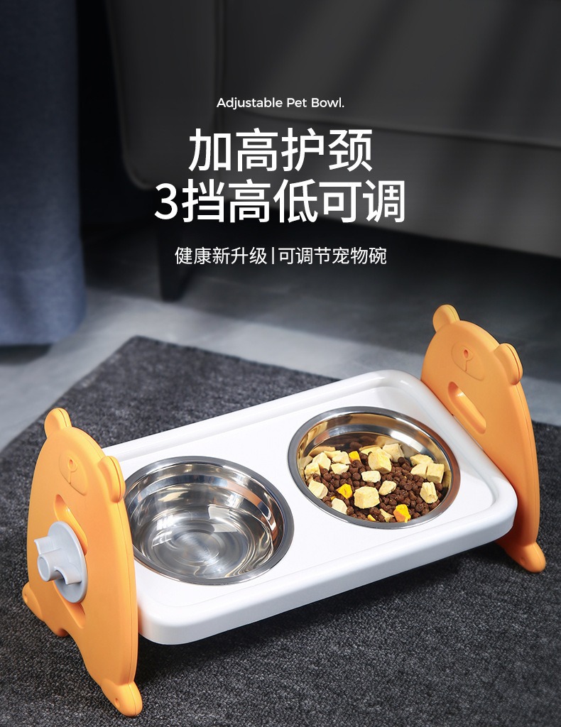 애완동물 고양이 그릇, 목 보호대, 조절 가능한 개 그릇, 고양이 식수 그릇, 개 대용량 스테인레스 스틸 더블 그릇, 고양이 사료 그릇 용품스토어 가기