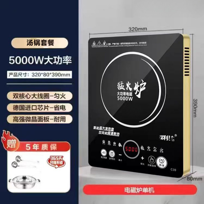 • 5000W 인덕션쿠커(이중팬) + 수프냄비 + 웍