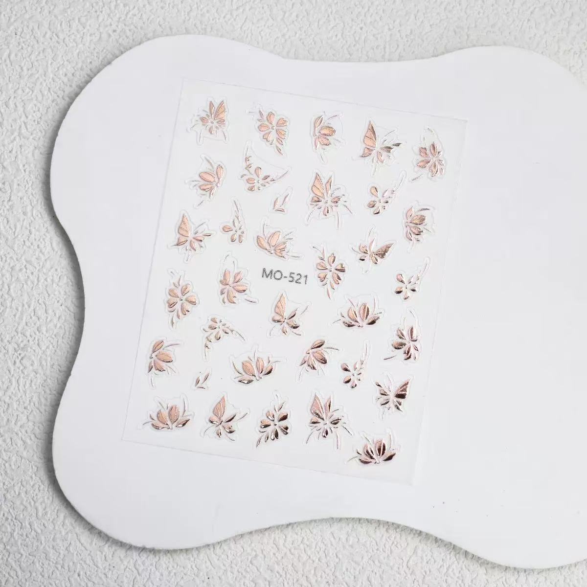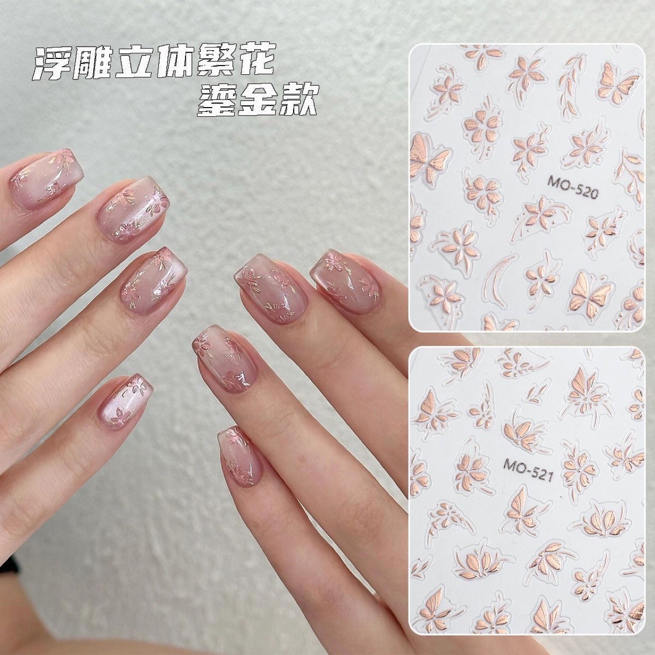 새로운 양각 꽃 네일 아트 스티커 복고풍 질감 골드 금박 손으로 그린 3 차원 청동 꽃 황금 3 차원 동백