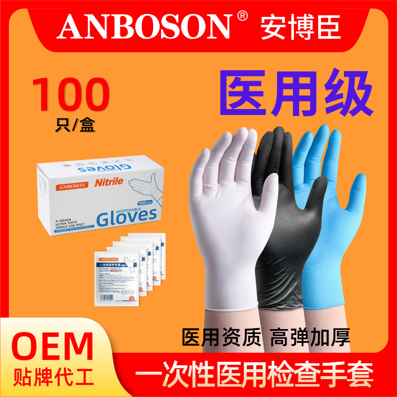 Ambochen 일회용 의사 니트릴 장갑 의료용 등급 두꺼운 검정색 고무 패턴 자수 니트릴 사용자 정의