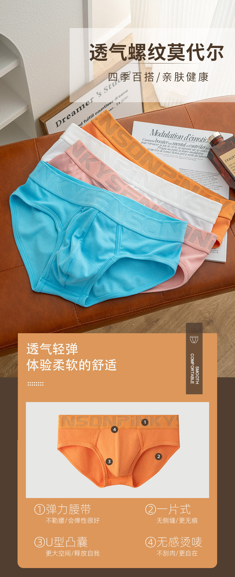 남성용 속옷, 남성용 중간 허리 모달 골지 팬티, 삼각 팬티, 통기성 팬티, 남성용 속옷
