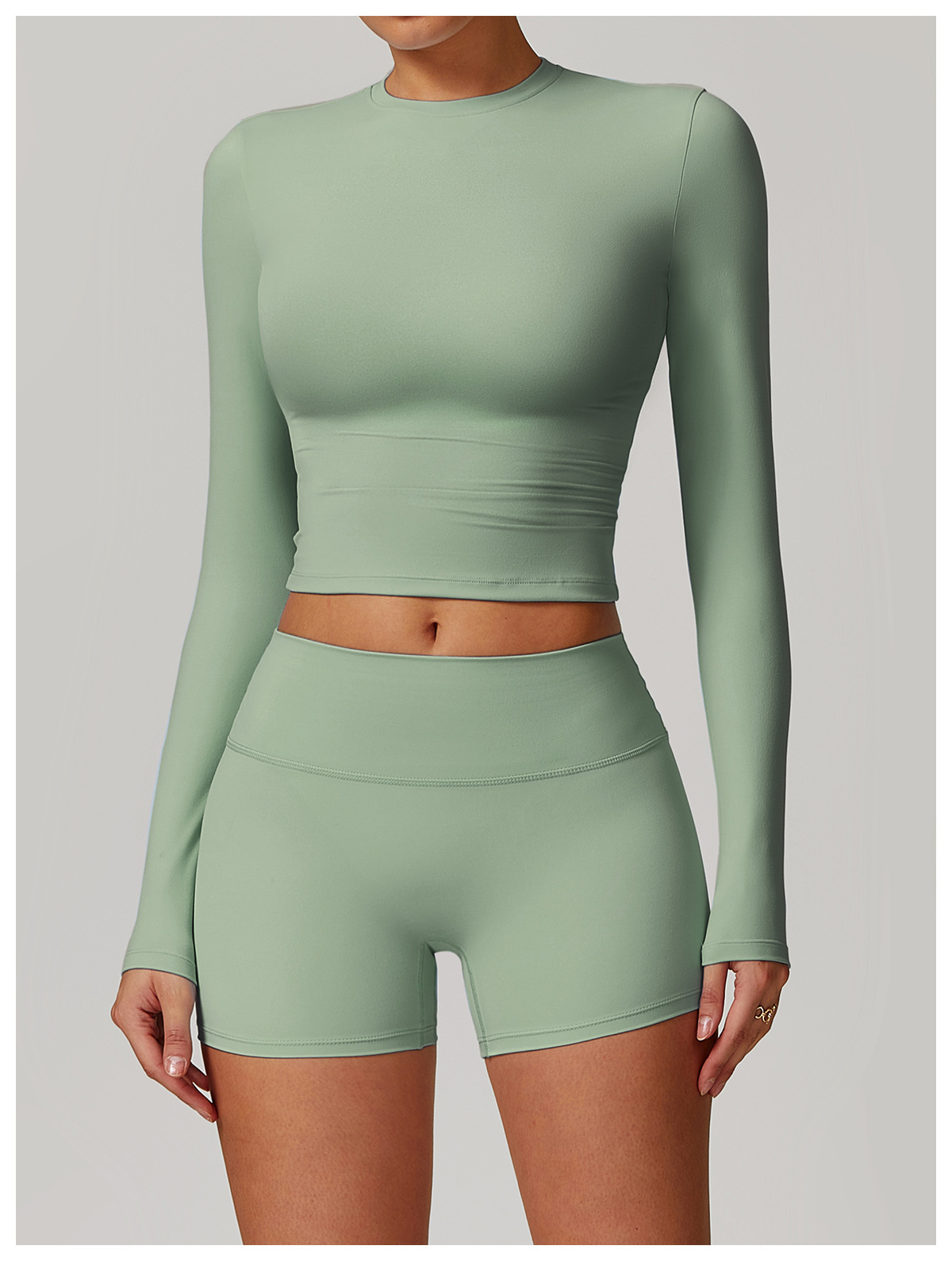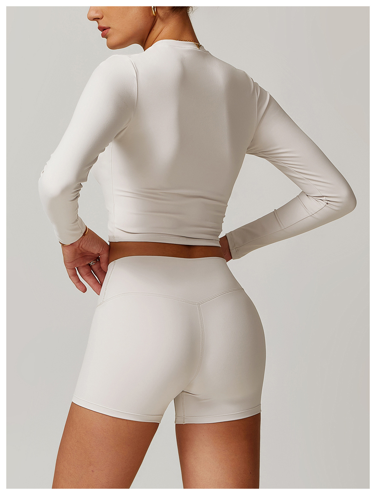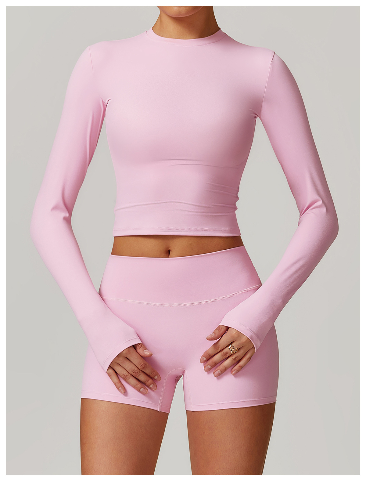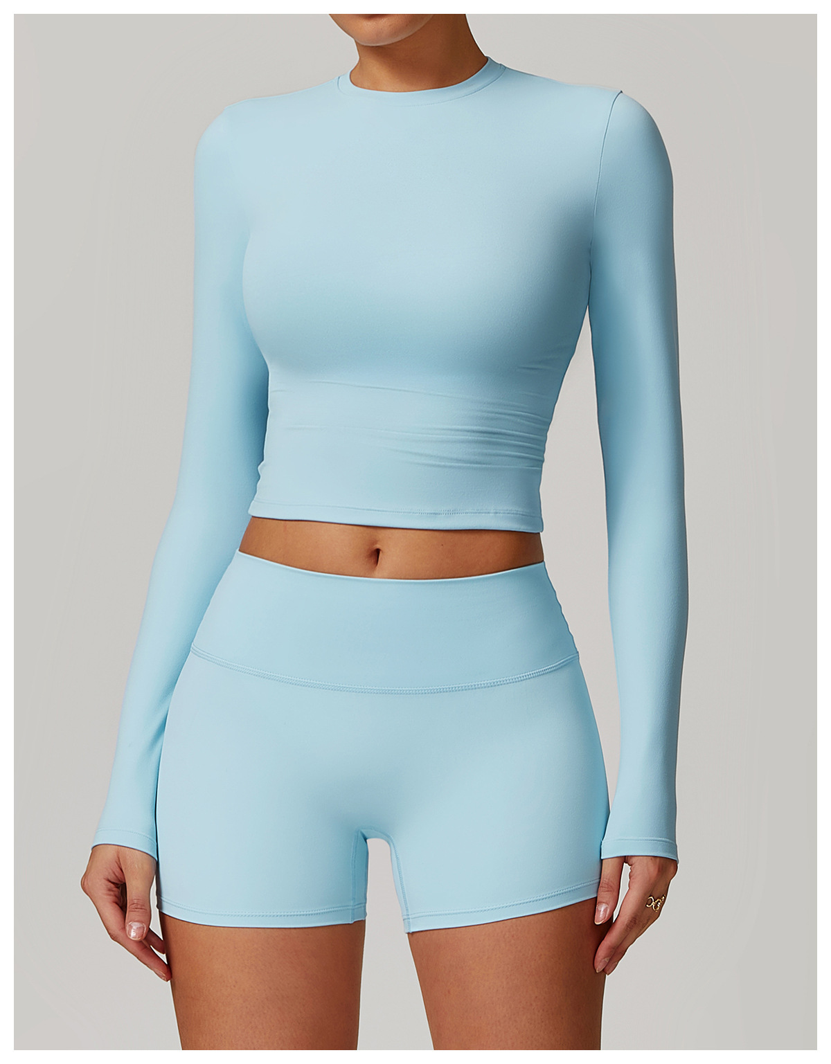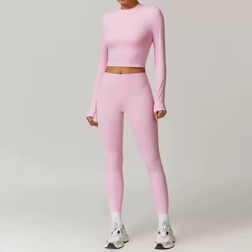 미백 효과 요가 상의 슬림핏 긴팔 티셔츠 야외 스포츠 여성 피트니스 요가복 트렌디 브랜드 라운드넥 요가 세트