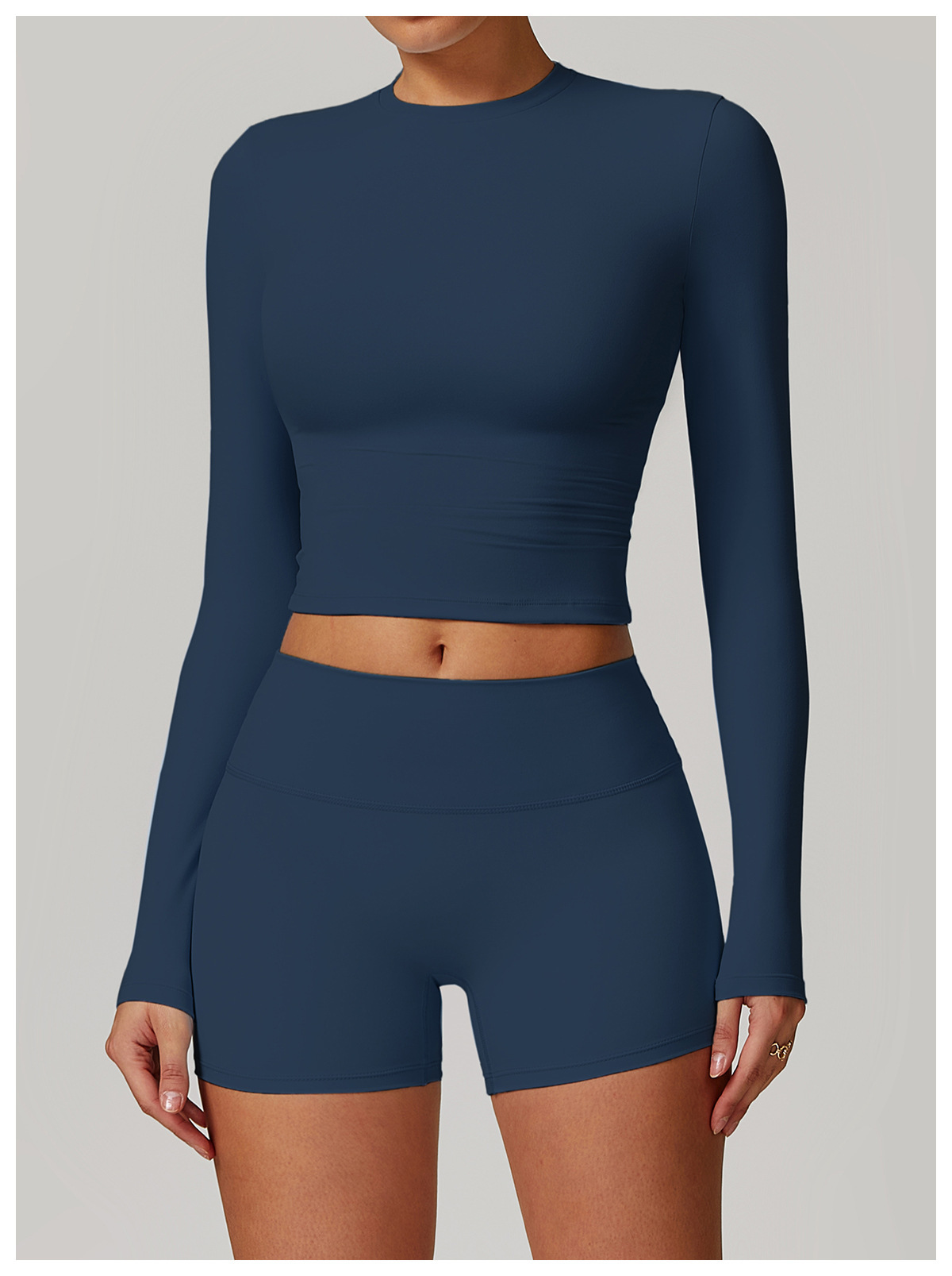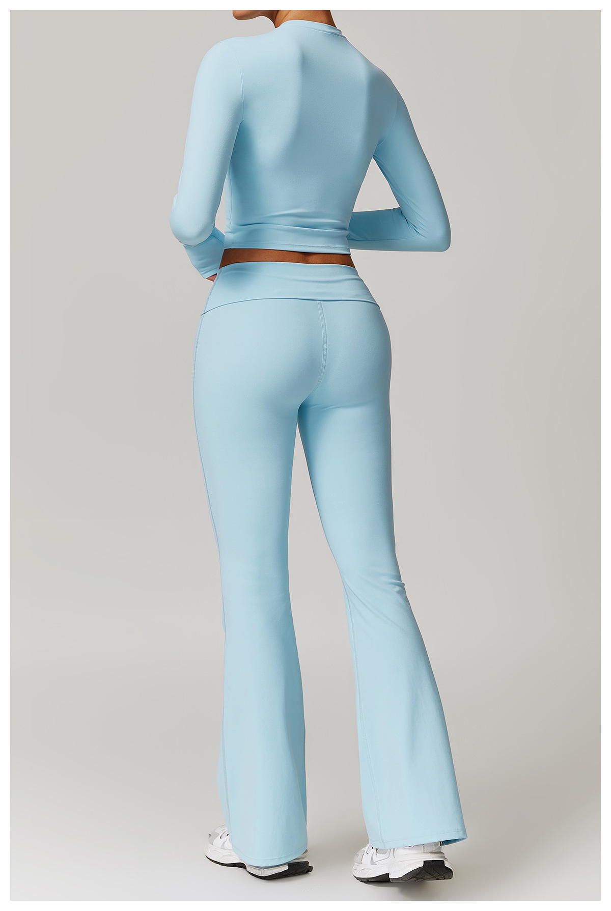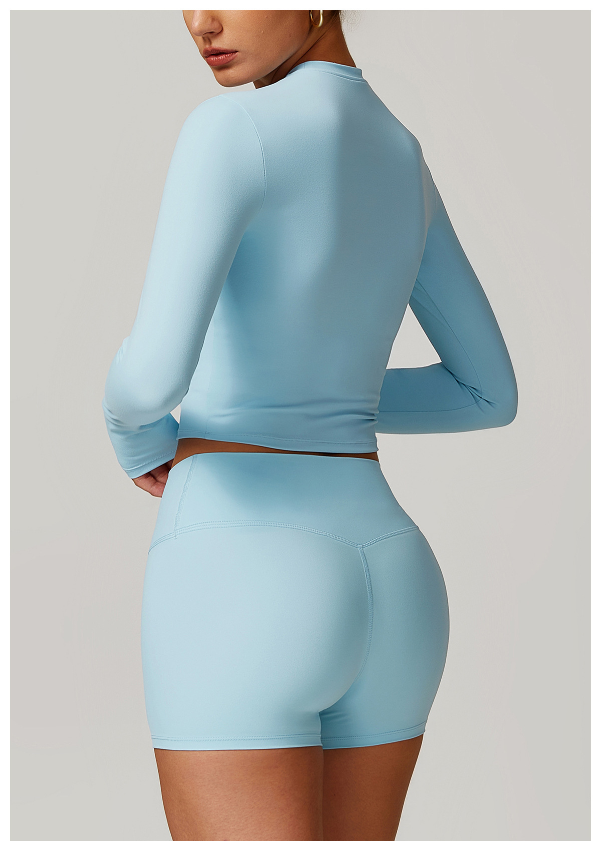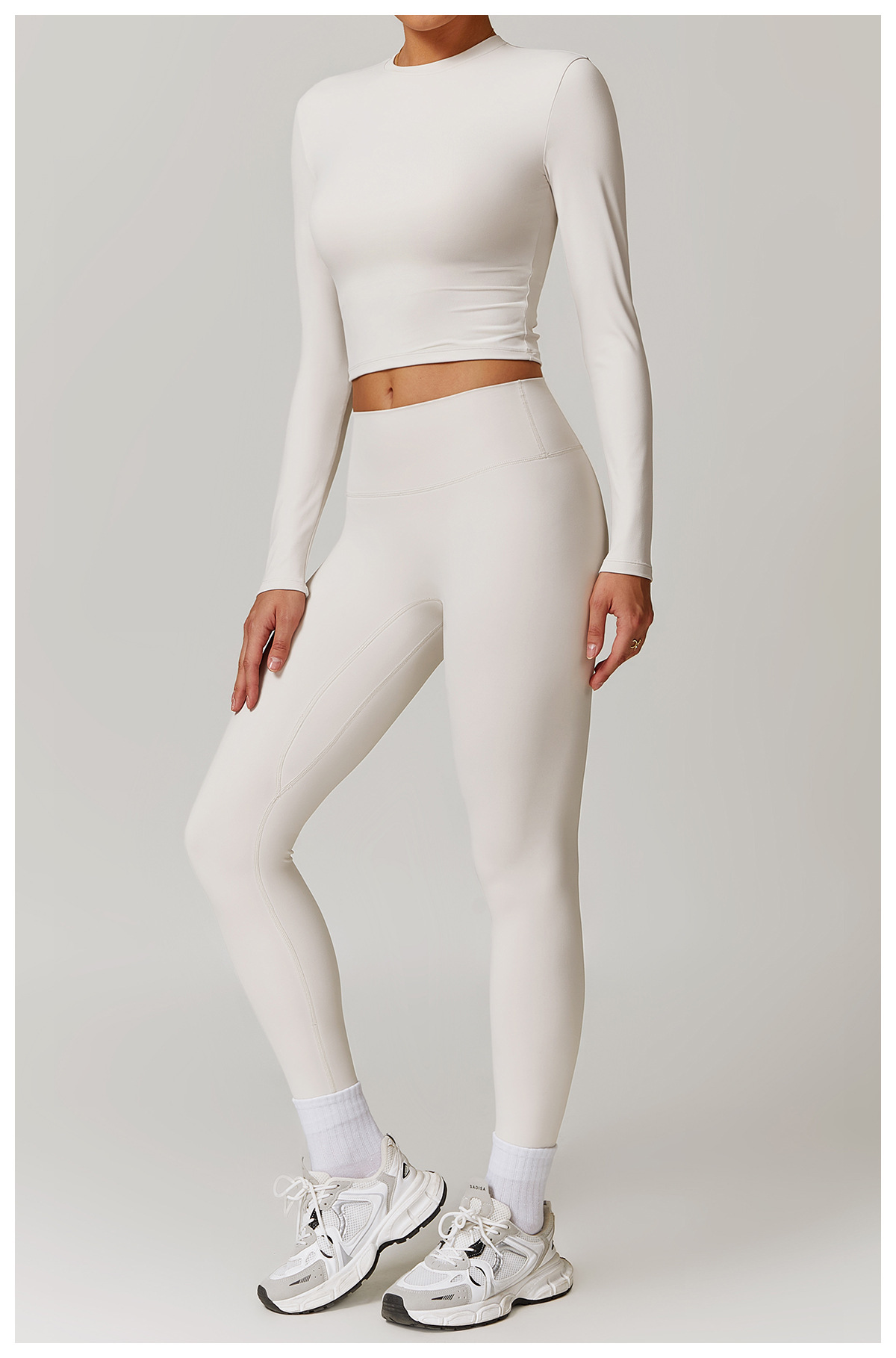 미백 효과 요가 상의 슬림핏 긴팔 티셔츠 야외 스포츠 여성 피트니스 요가복 트렌디 브랜드 라운드넥 요가 세트