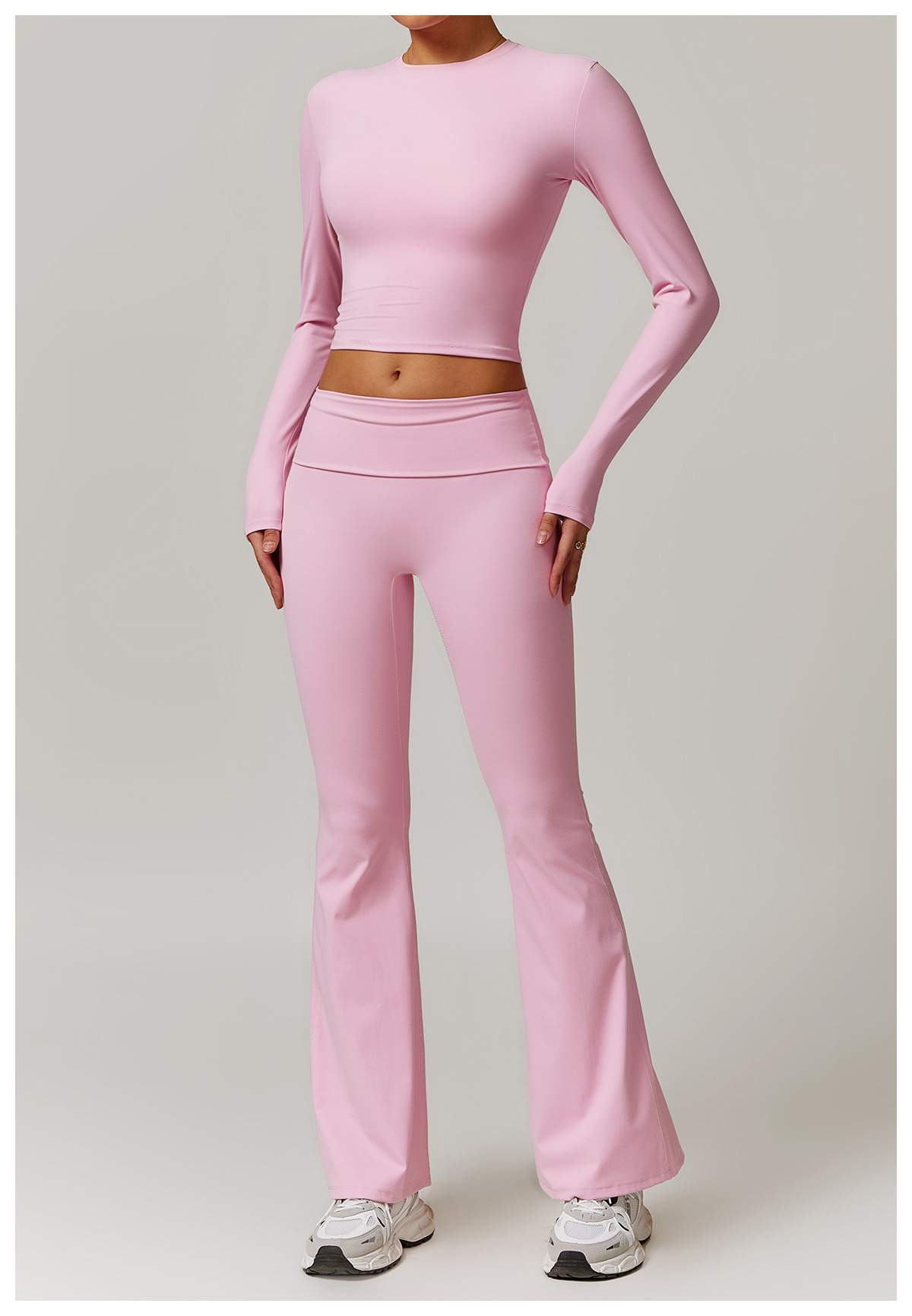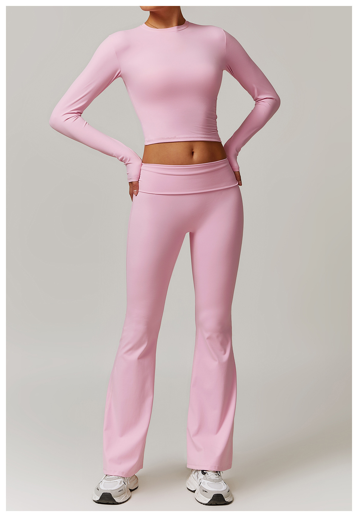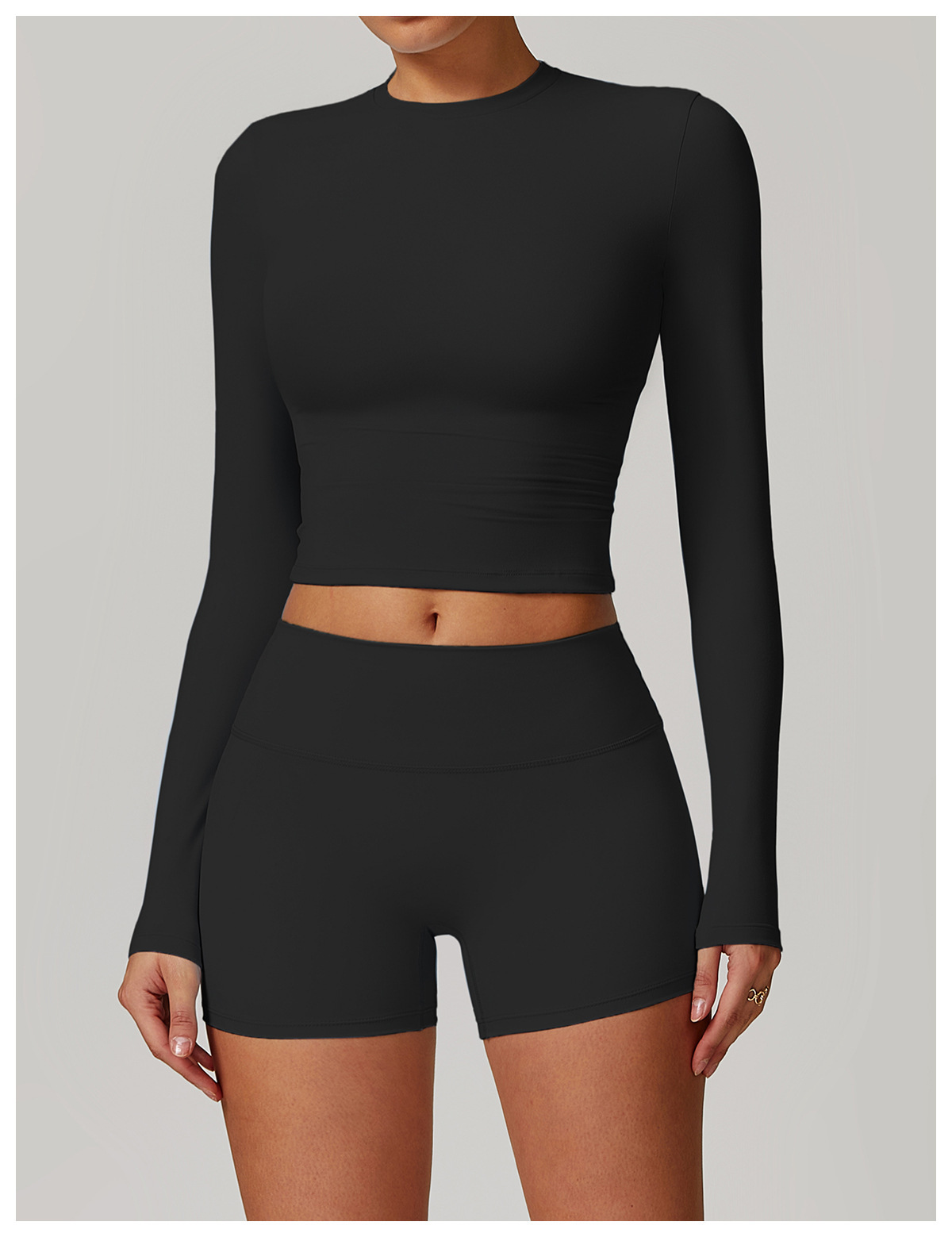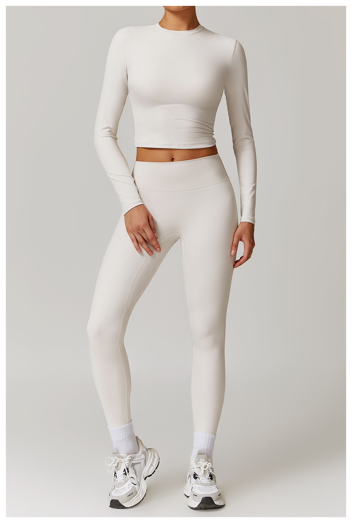 미백 효과 요가 상의 슬림핏 긴팔 티셔츠 야외 스포츠 여성 피트니스 요가복 트렌디 브랜드 라운드넥 요가 세트