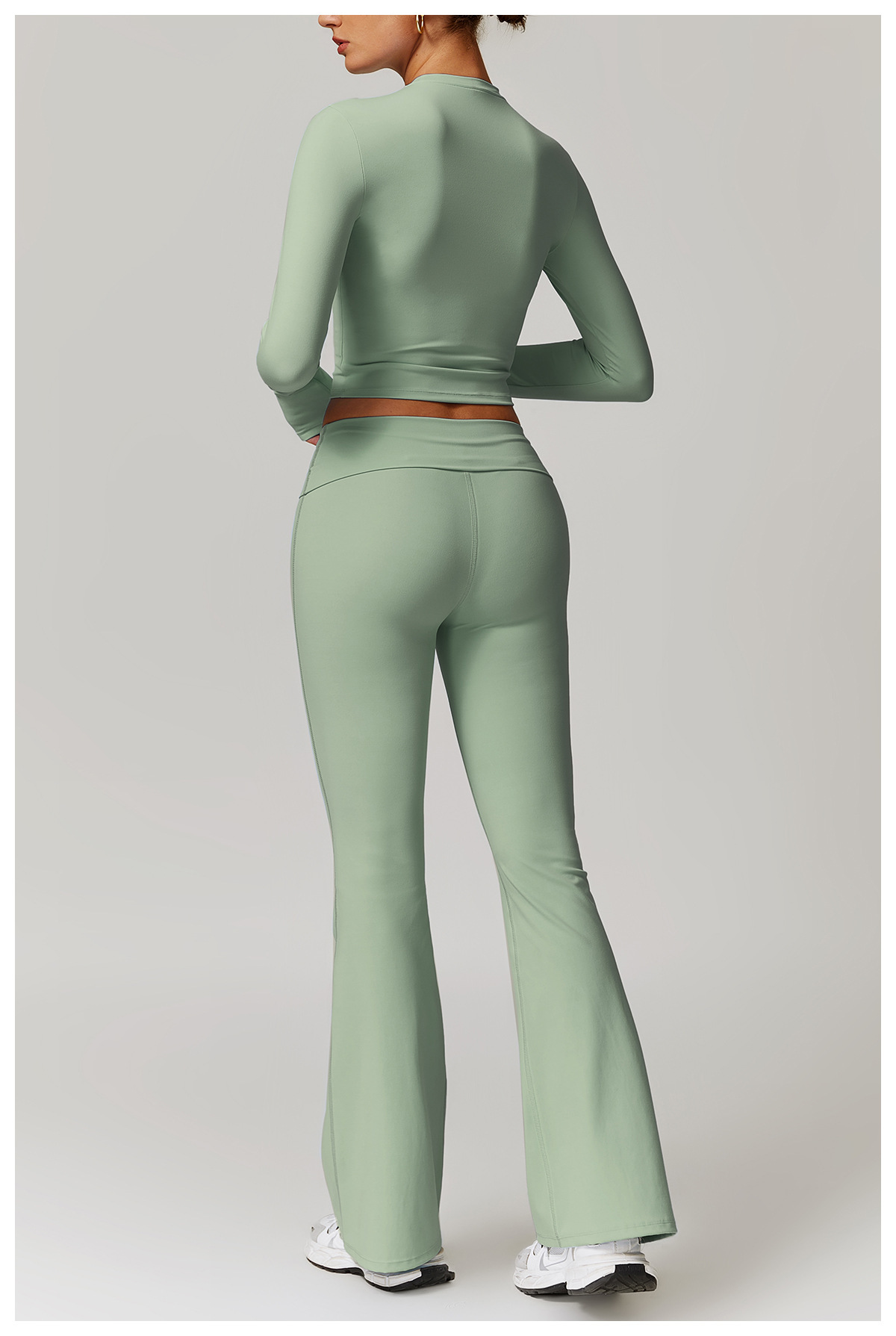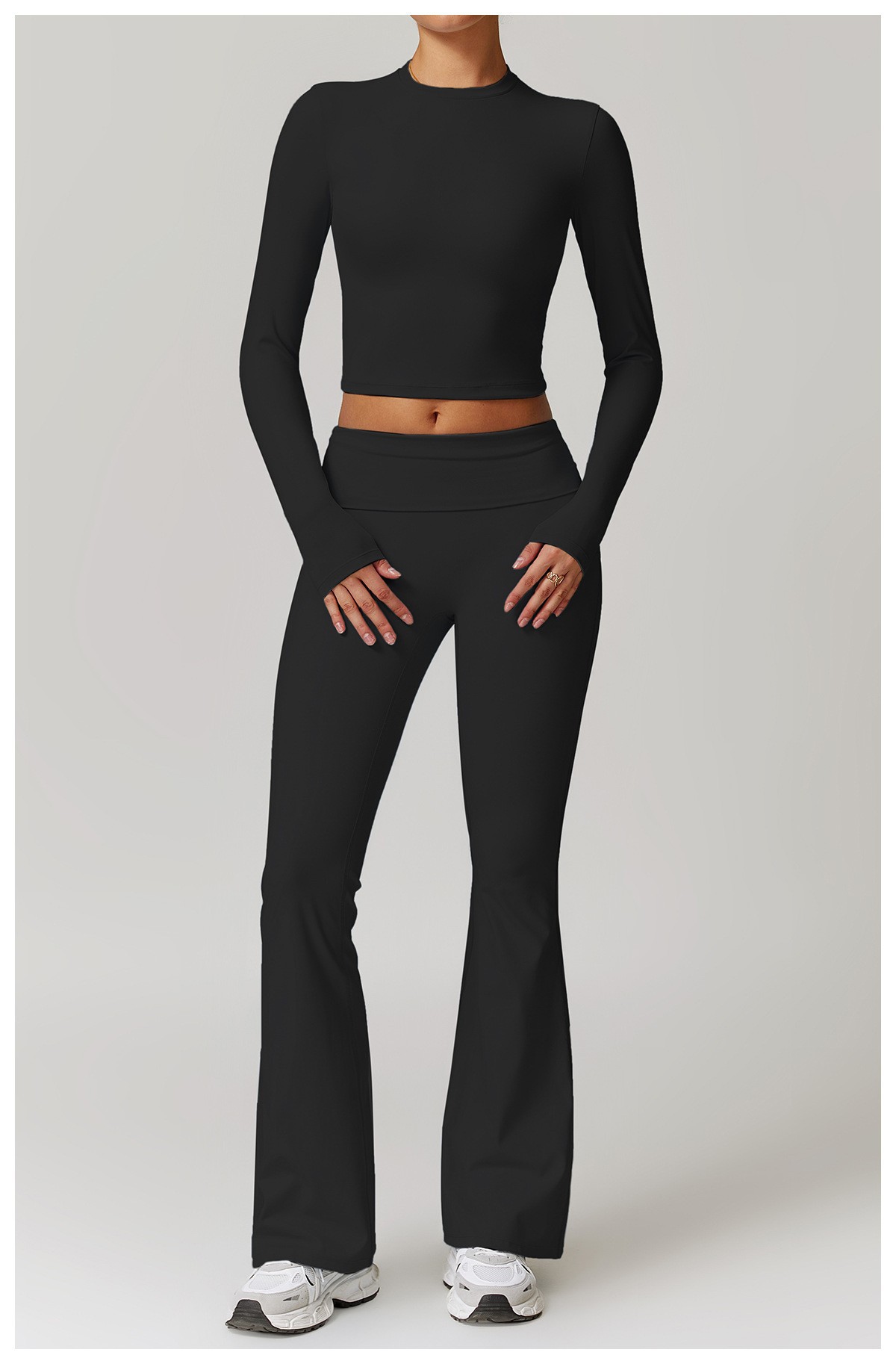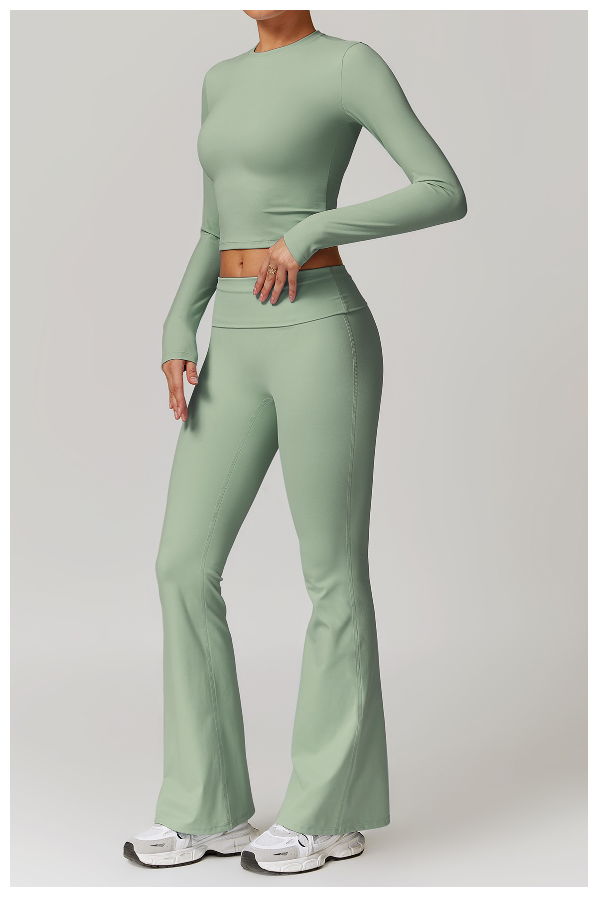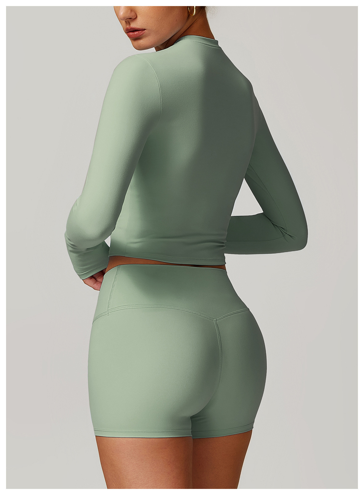 미백 효과 요가 상의 슬림핏 긴팔 티셔츠 야외 스포츠 여성 피트니스 요가복 트렌디 브랜드 라운드넥 요가 세트