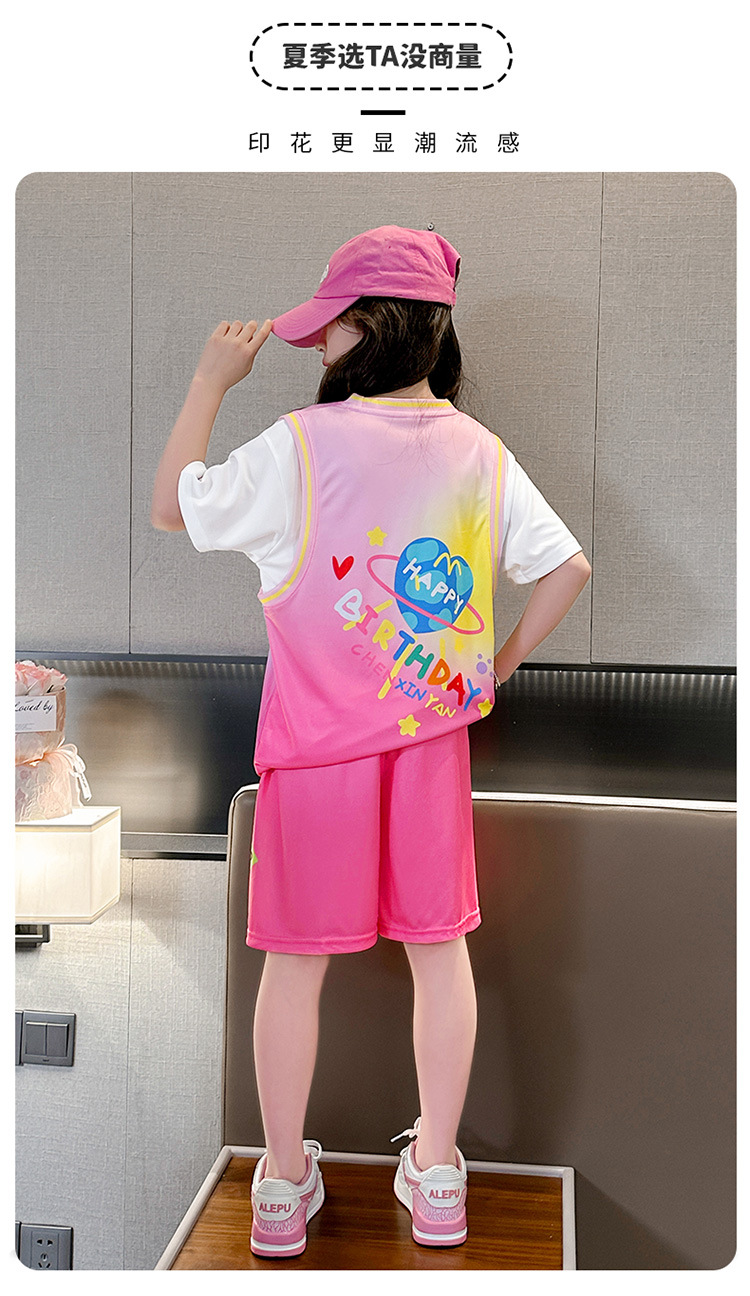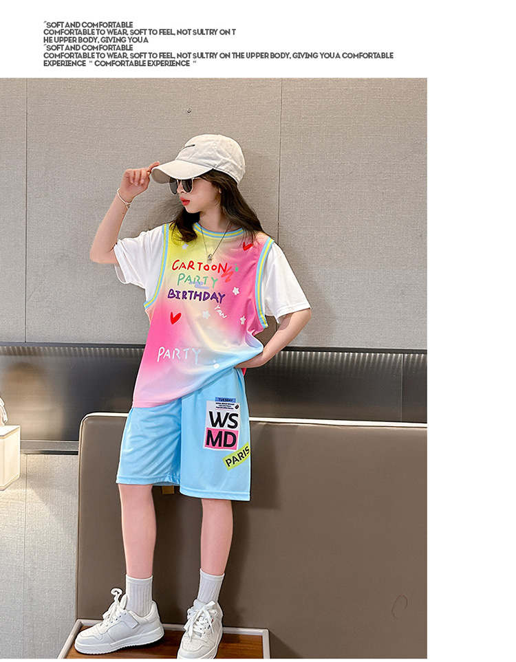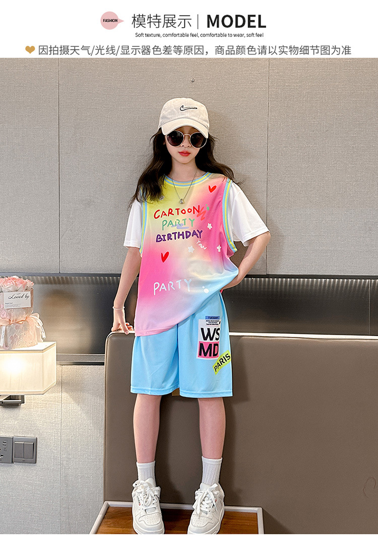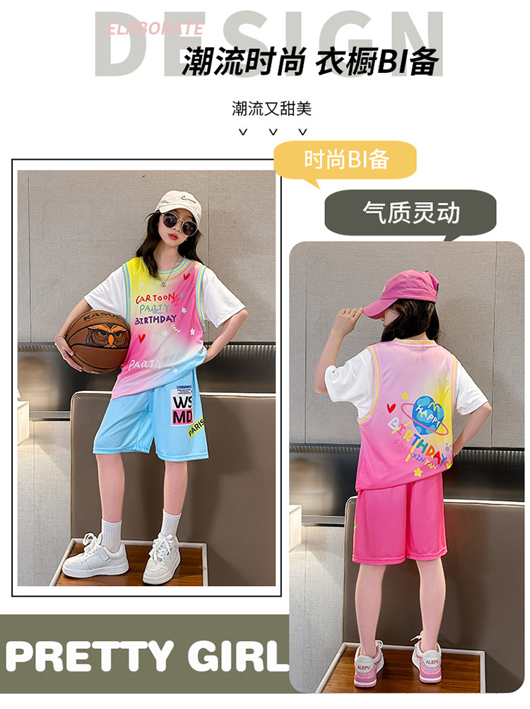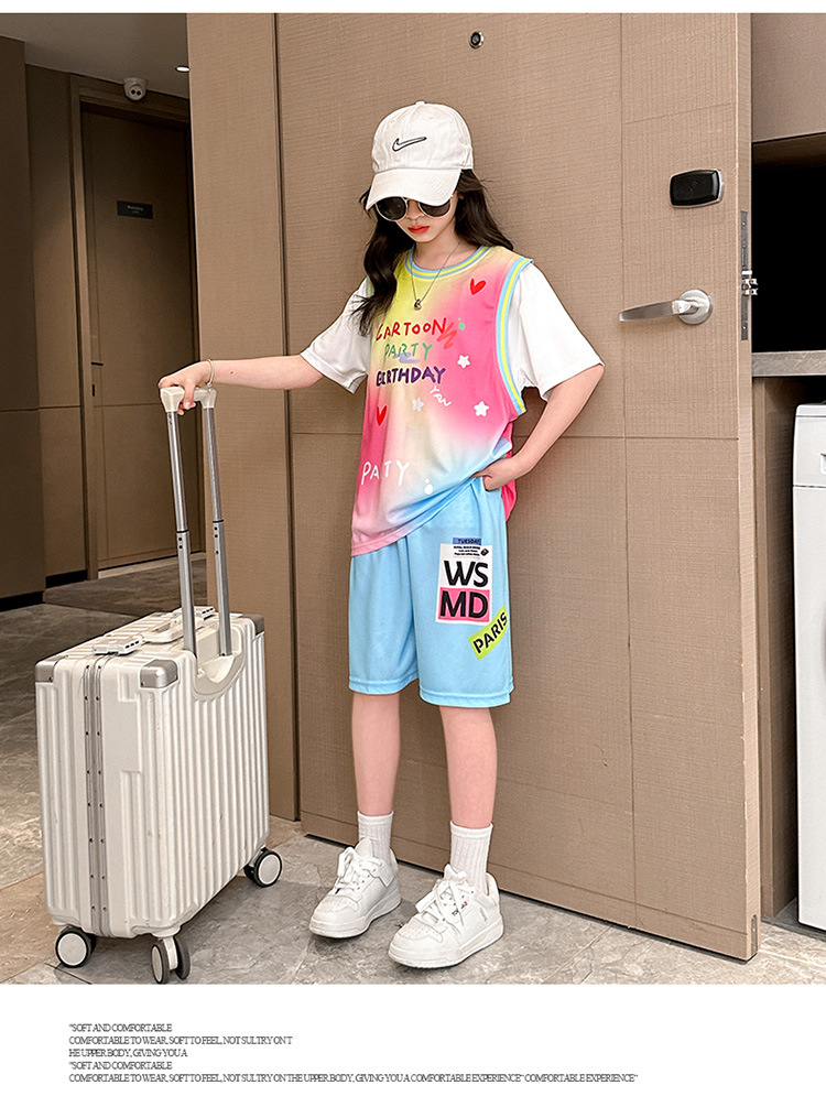 여자 세트 여름 2025 새로운 어린이 서양식 유행 인터넷 인기 스포츠 소녀 패션 사랑 그라디언트 세트