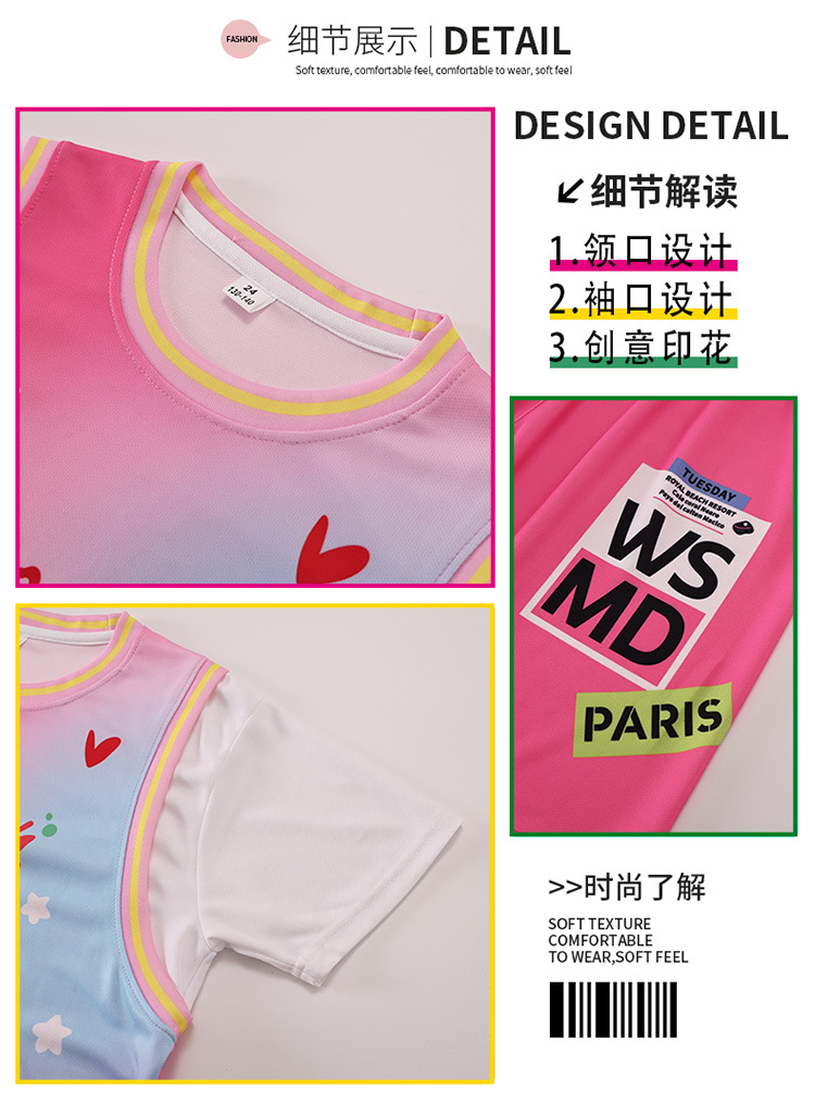 여자 세트 여름 2025 새로운 어린이 서양식 유행 인터넷 인기 스포츠 소녀 패션 사랑 그라디언트 세트스토어 가기