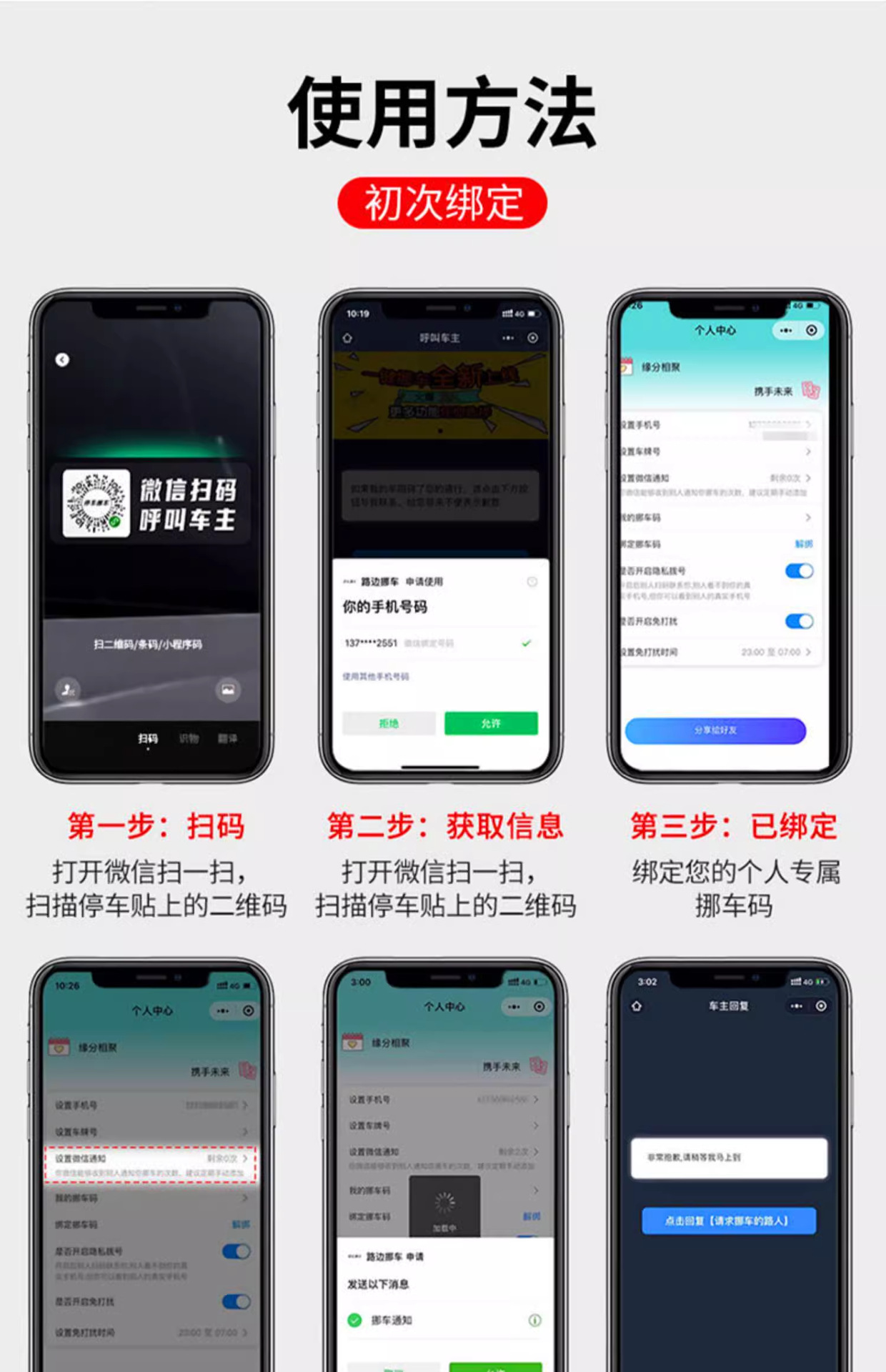 빛나는 임시 주차 기호 2 차원 코드 이동 자동차 스캐닝 표지판 지능형 창조적 인 정전기 붙여 개인 정보 보호 번호