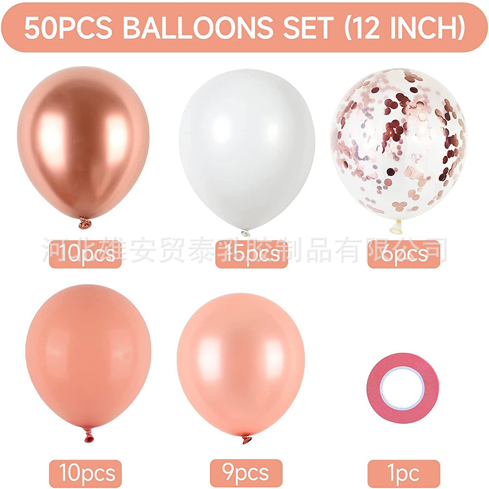 • 50pcs 금속 로즈 골드 화이트 풍선 세트