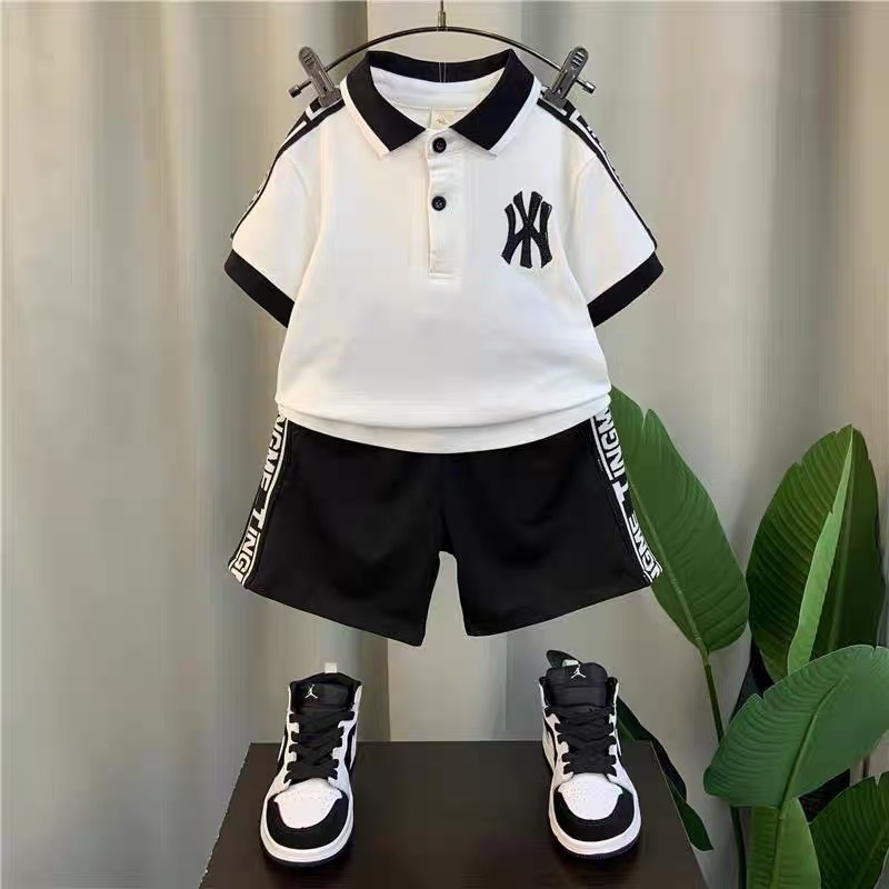 남자들의 여름 세트 2025 새로운 인터넷 축하 어린이 폴로 반팔 시원한 여름복 폭발 투피스 세트스토어 가기