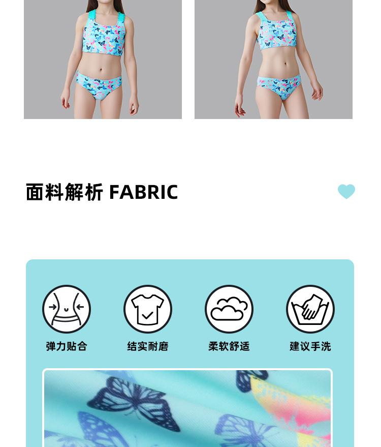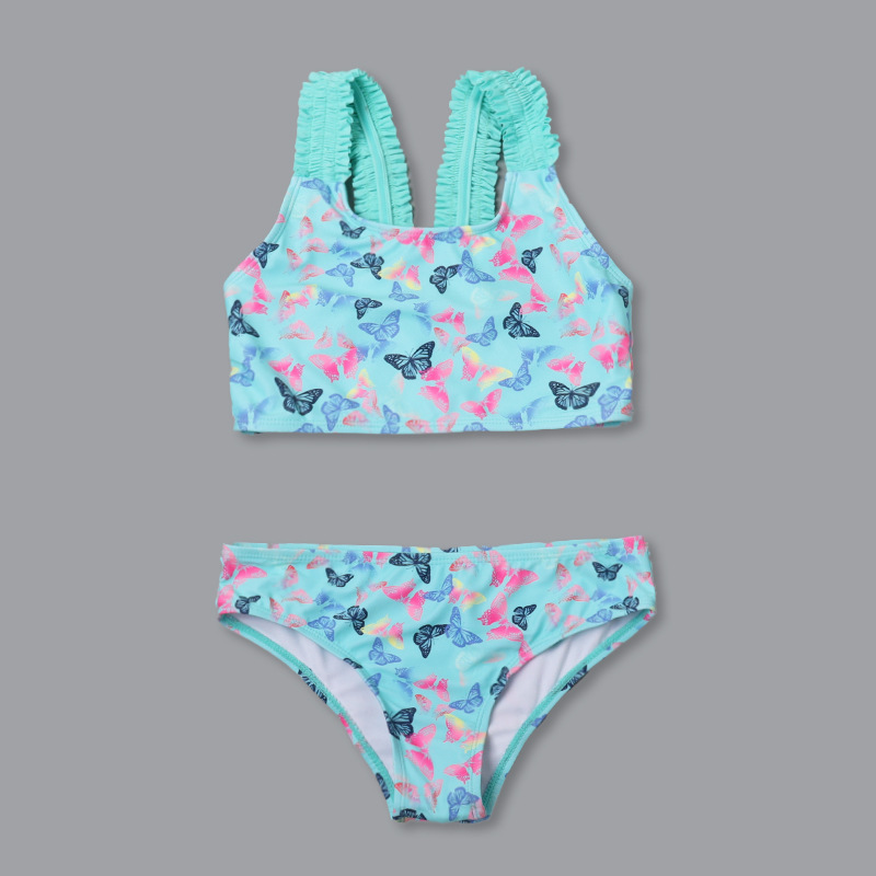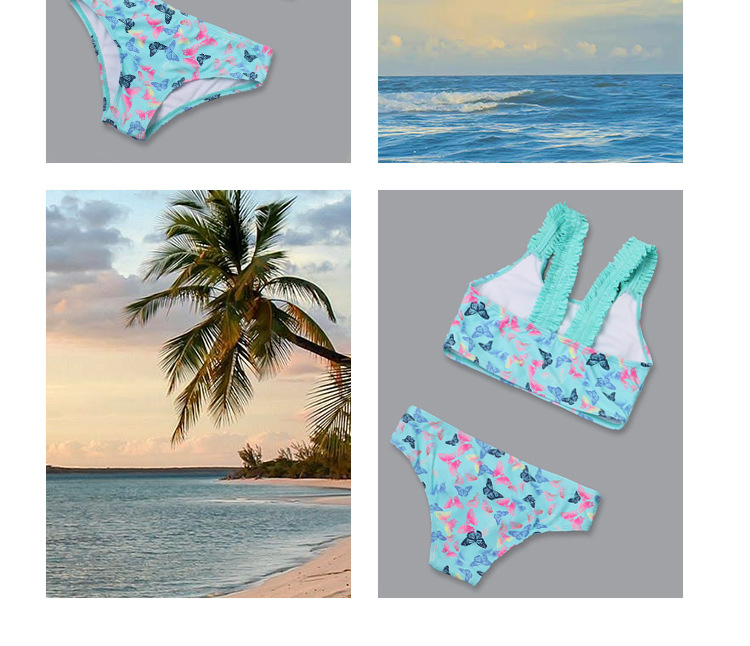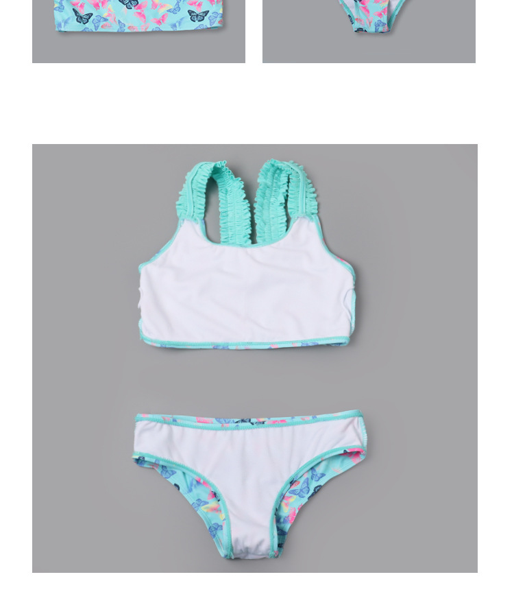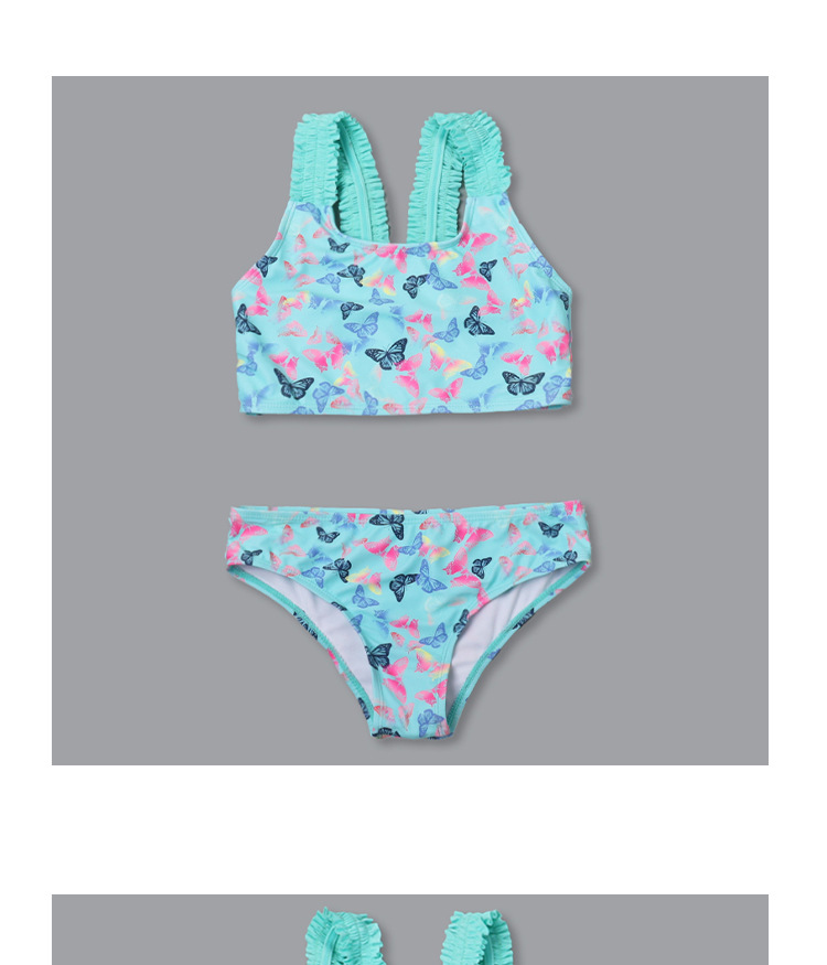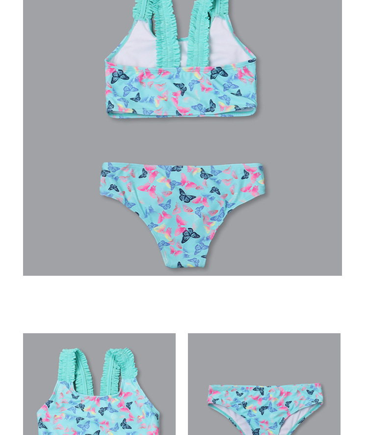 2025 새로운 대외 무역 유럽과 미국 아마존 어린이 분할 수영복 호수 블루 나비 인쇄 작은 소녀 비키니스토어 가기
