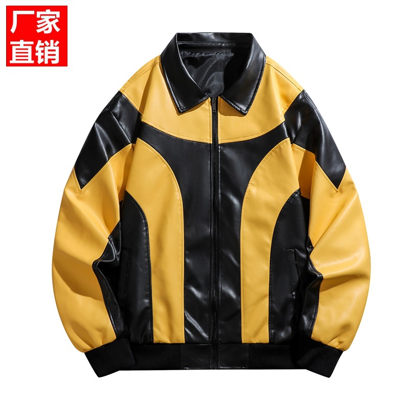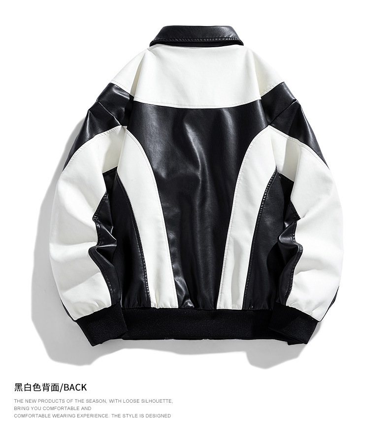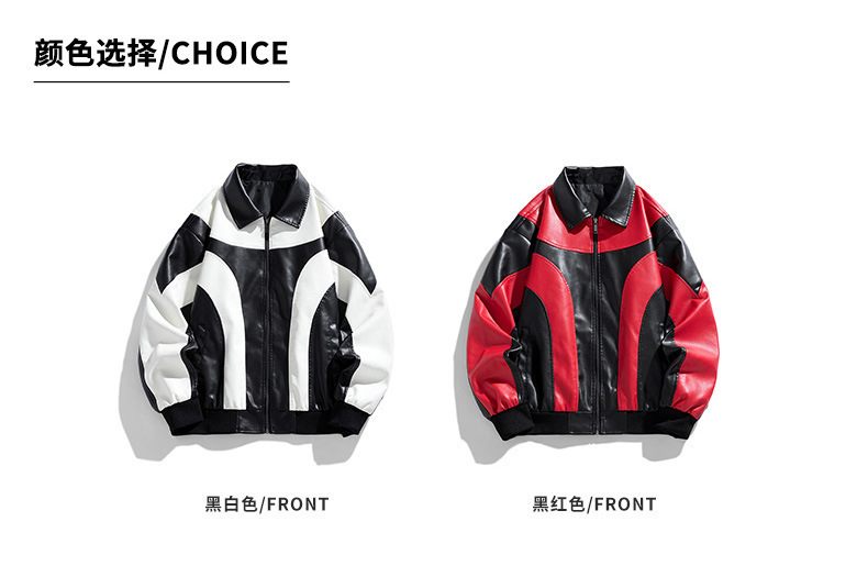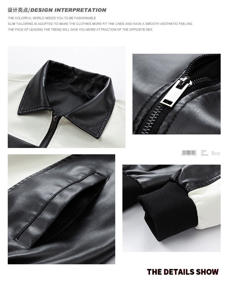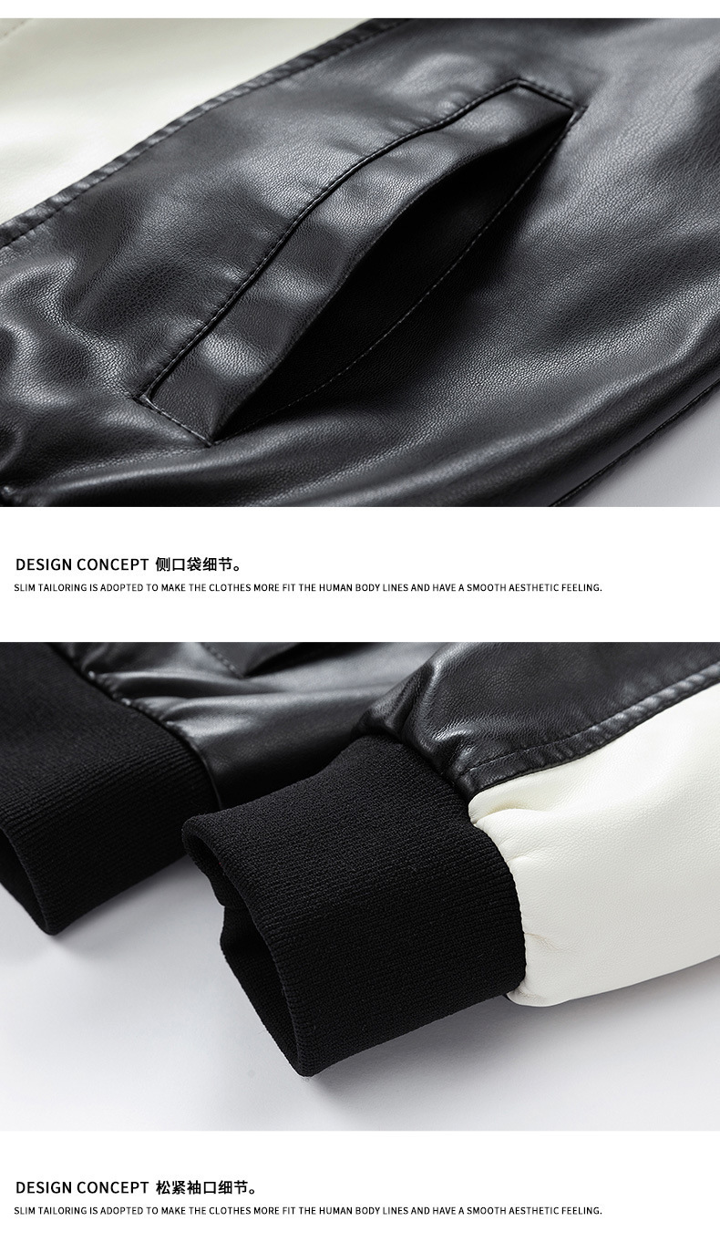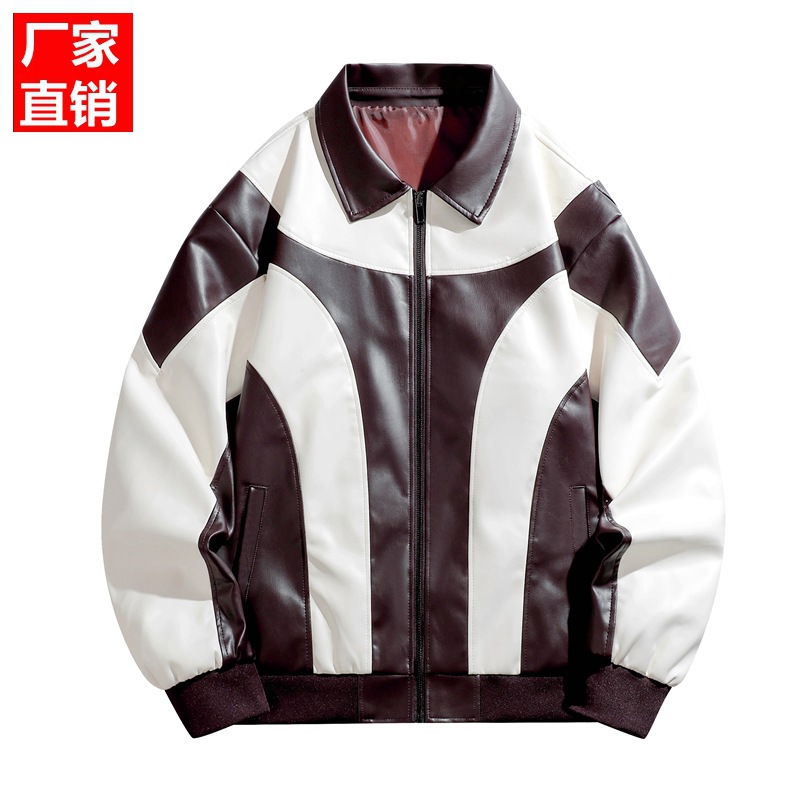跨境男装皮夹克新款男士PU机车服夹克外套拼色时尚皮衣男906皮衣