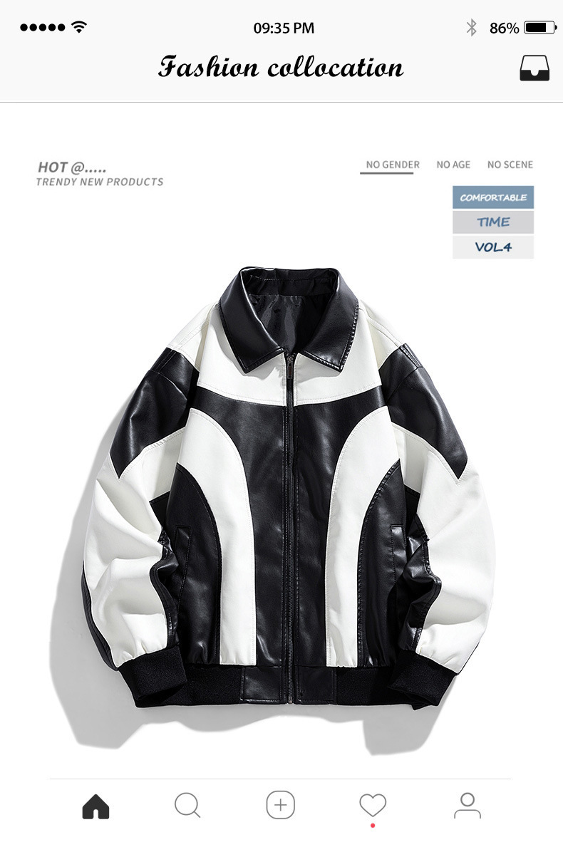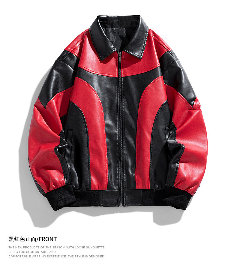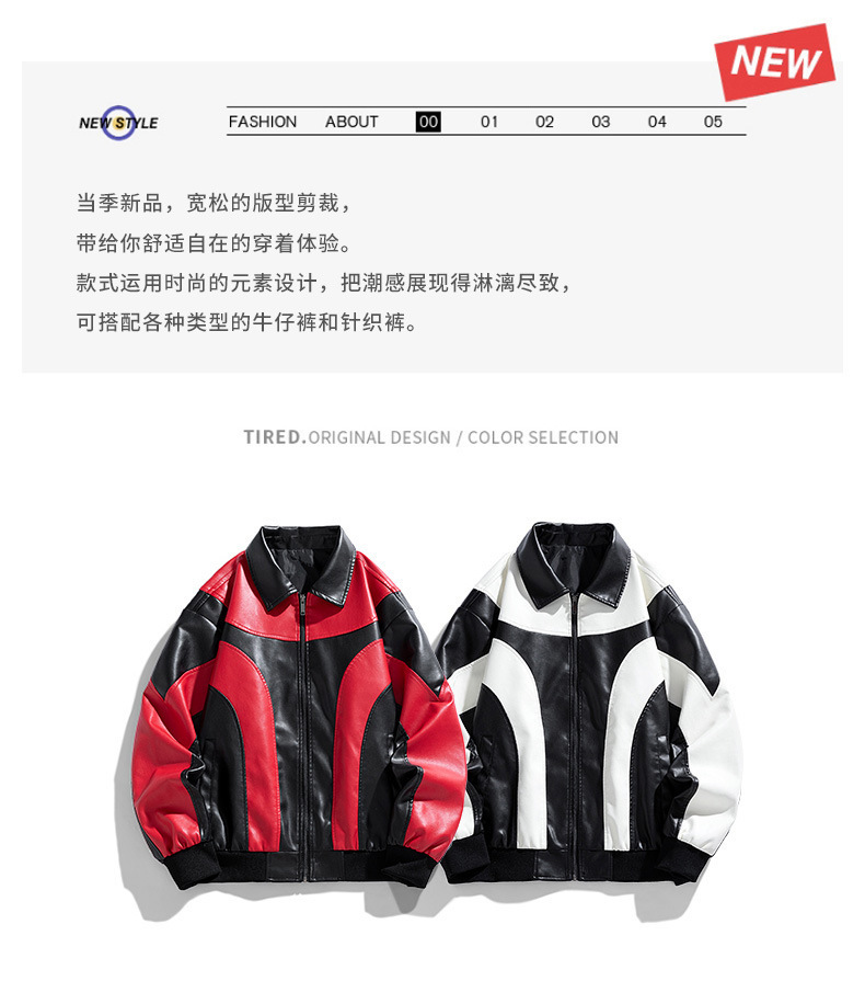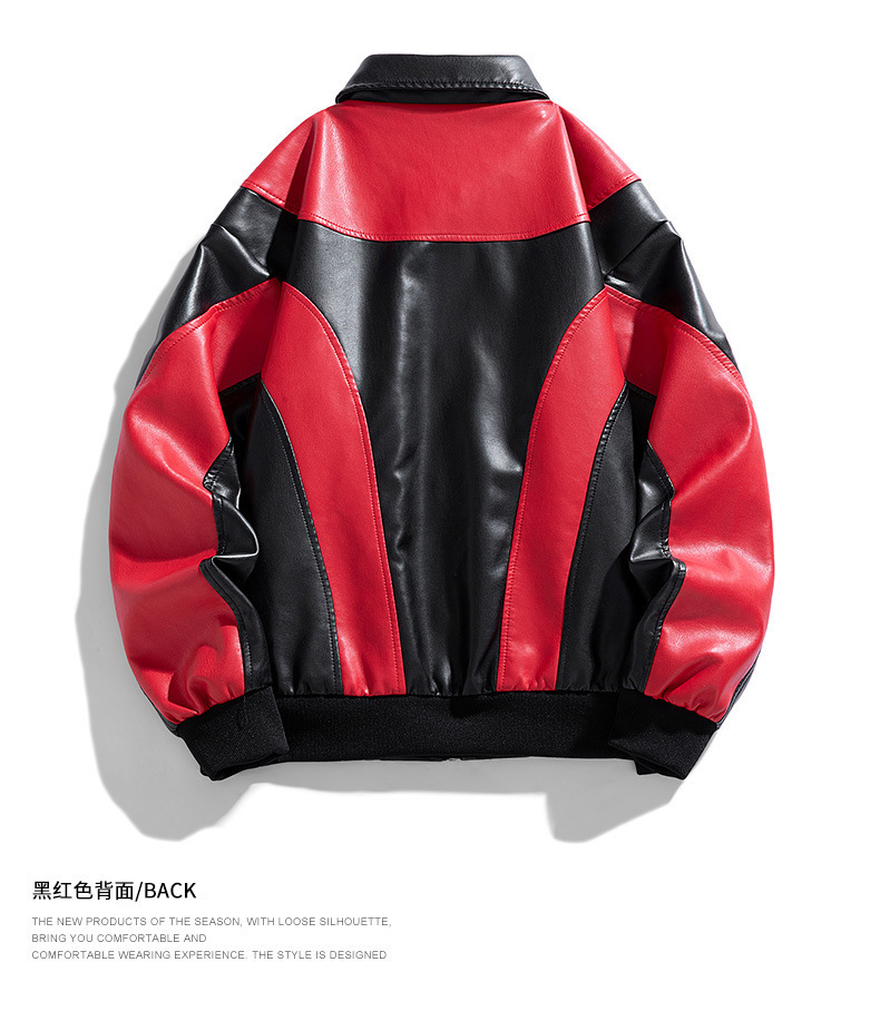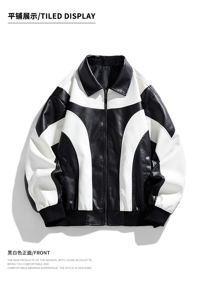 跨境男装皮夹克新款男士PU机车服夹克外套拼色时尚皮衣男906皮衣