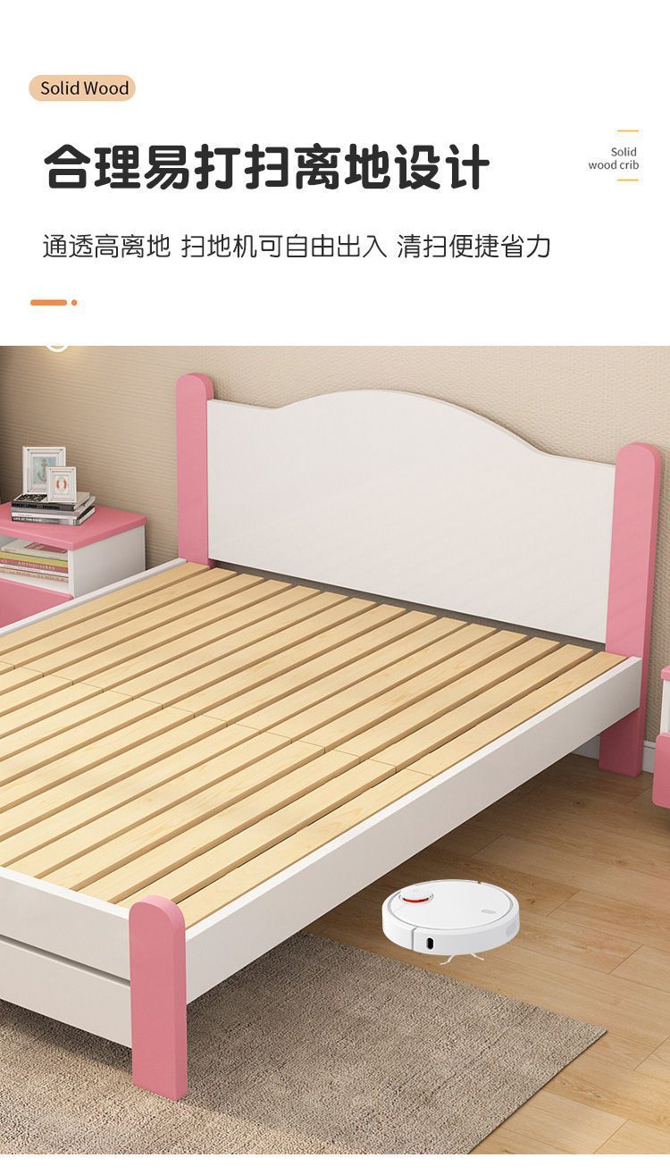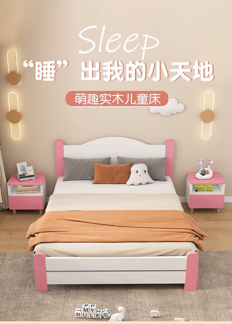 새로운 어린이 침대 소년 가정용 어린이 침대 소녀 핑크 더블 침대 싱글 사이드 침구 단단한 나무 침대 무료 배송