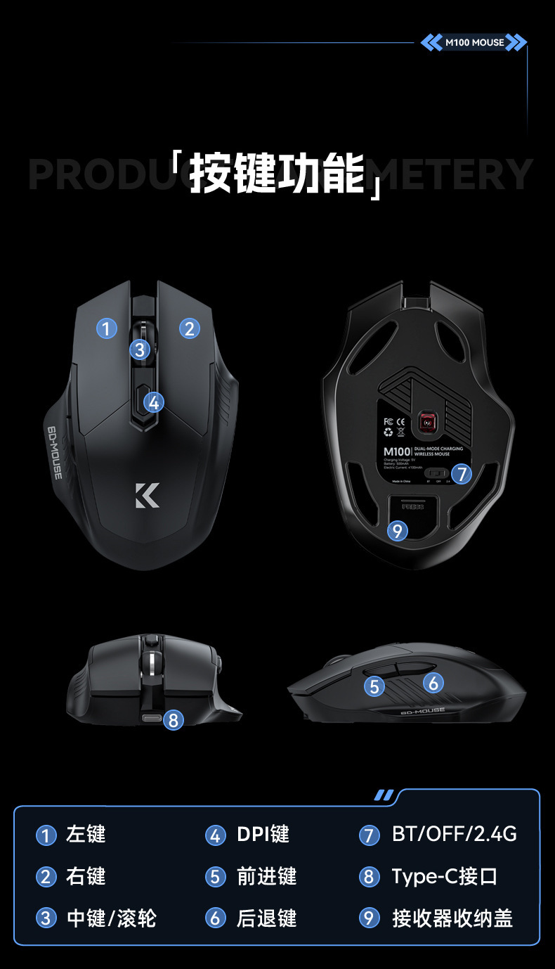• 충전 2.4G+Bluetooth 듀얼 모드 - 검정색