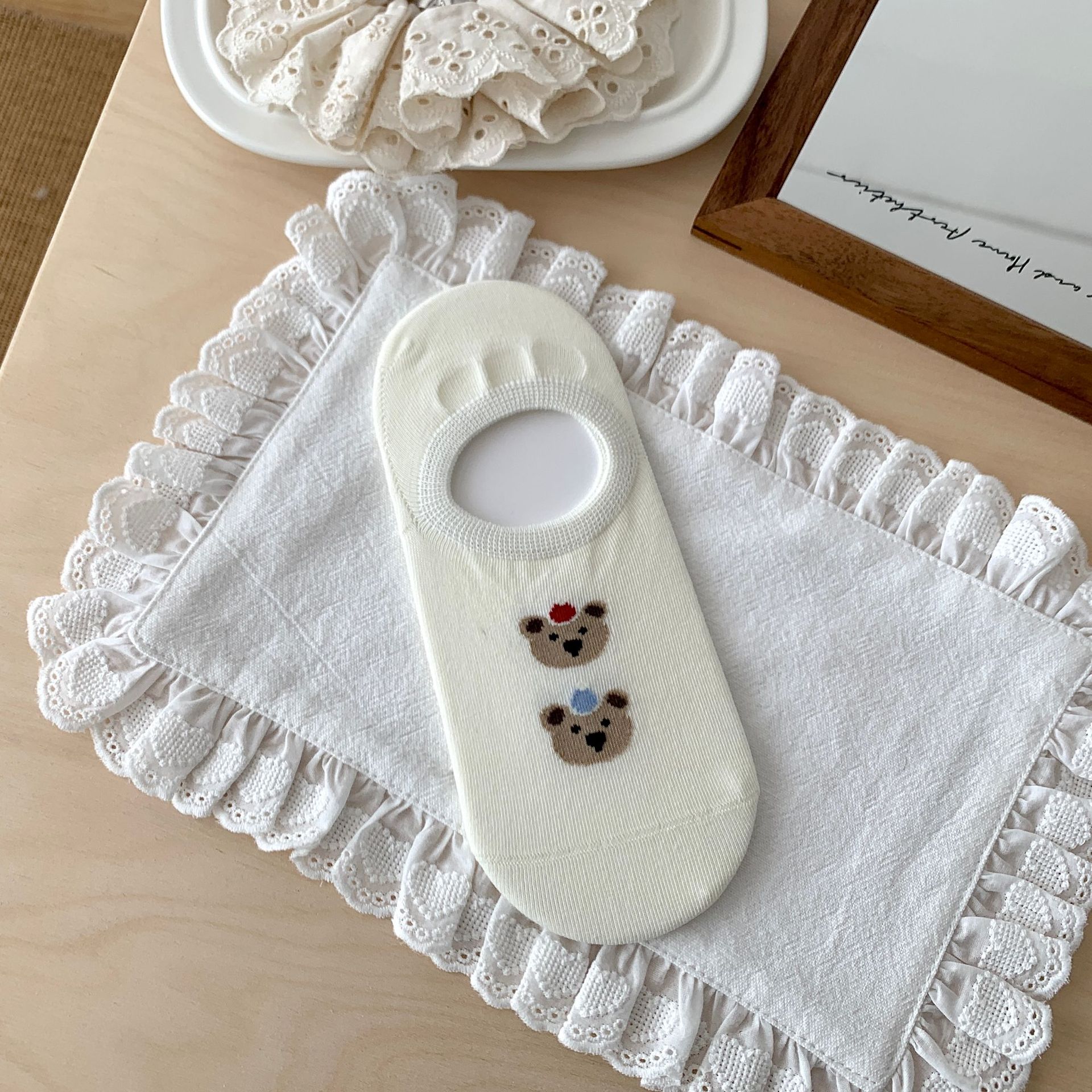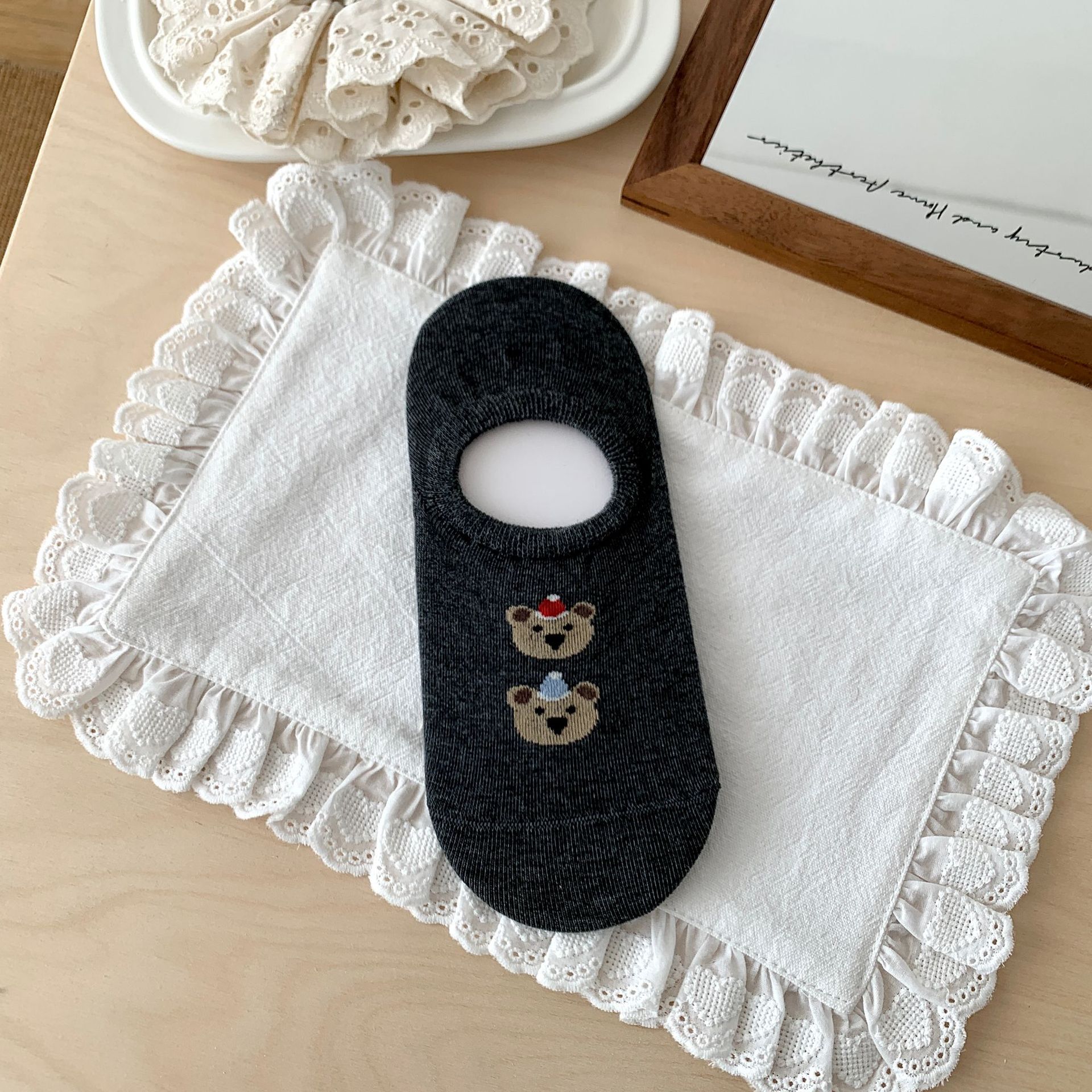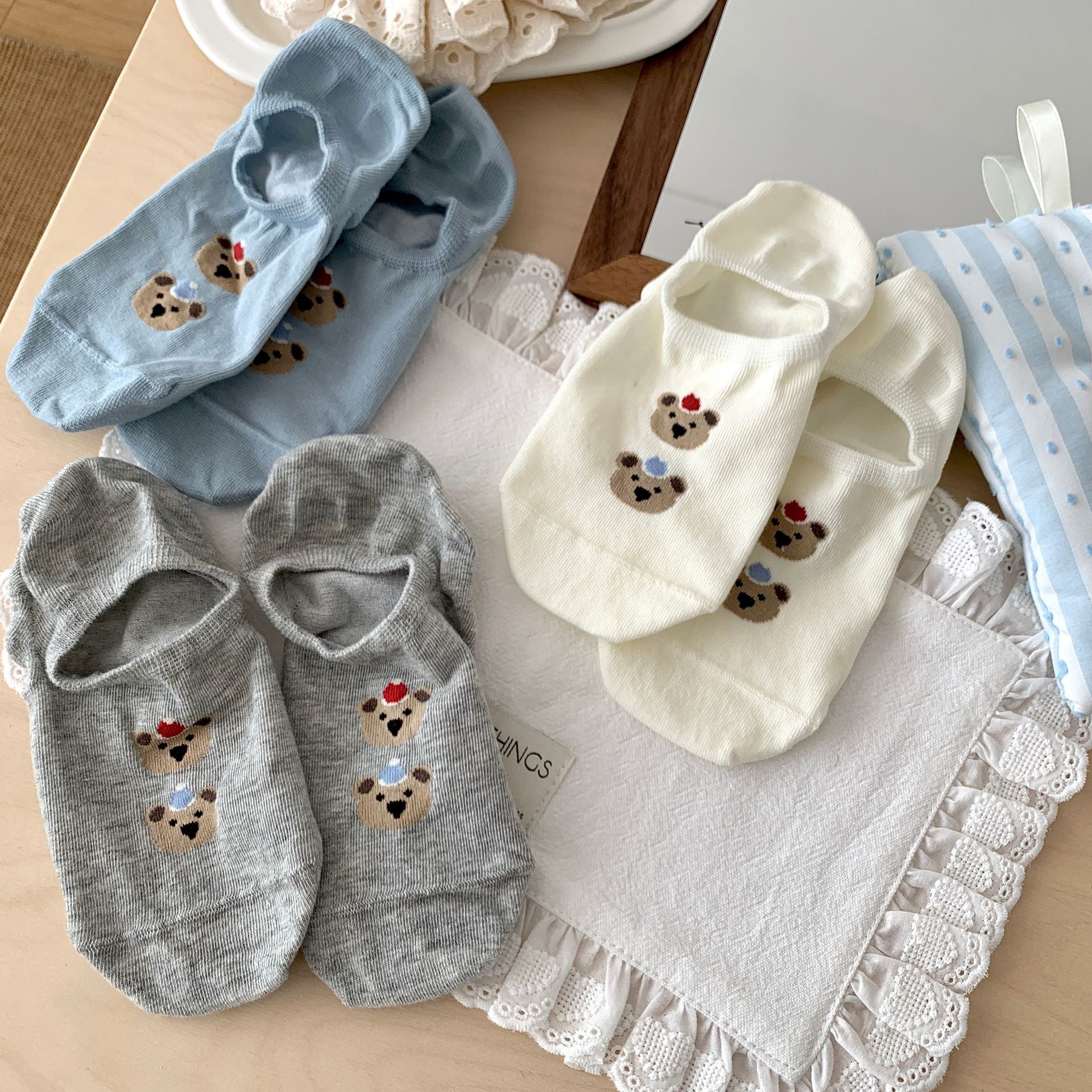 봄 여름 면 보트 양말, 곰 얇은 미끄럼 방지 실리콘 얕은 양말, 뼈없는 통기성 면 보이지 않는 양말스토어 가기