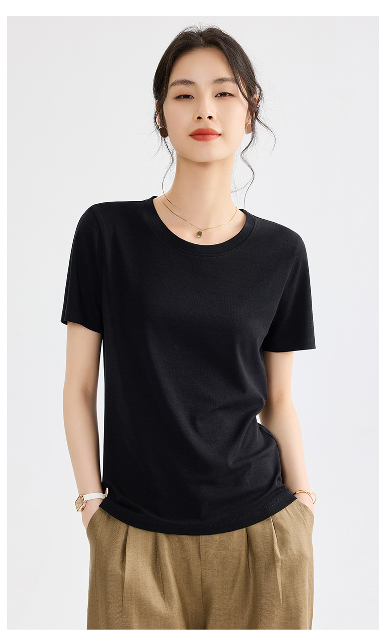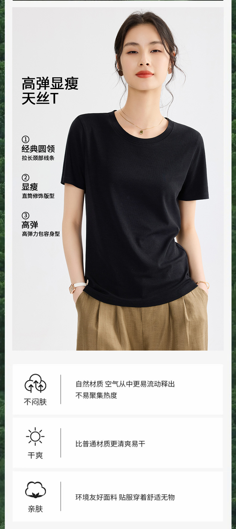 Lyocell Tencel Net Edition 라운드 넥 반팔 티셔츠 여성 여름 2025 뉴 숄더 얇은 슬림 핏 쿨탑스토어 가기