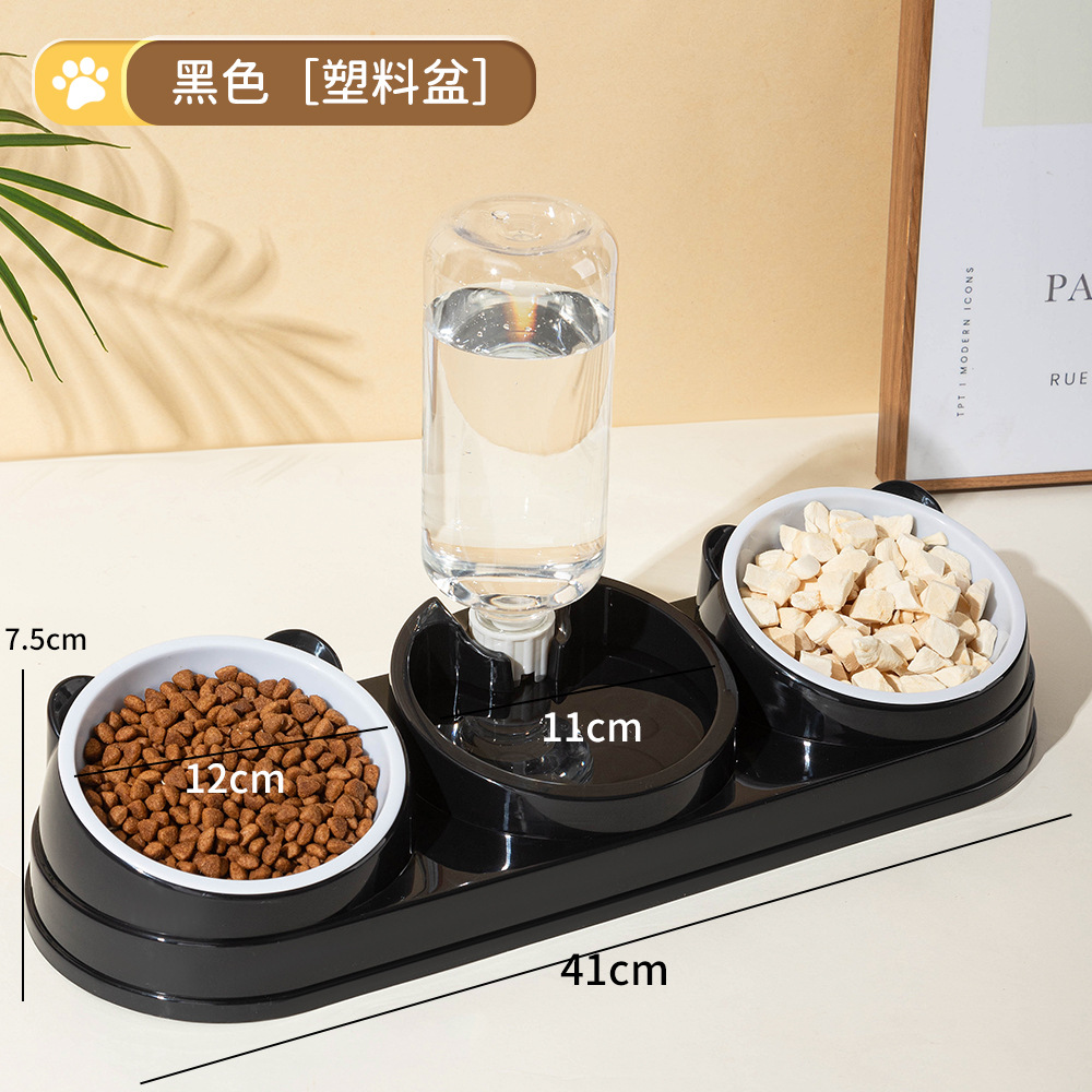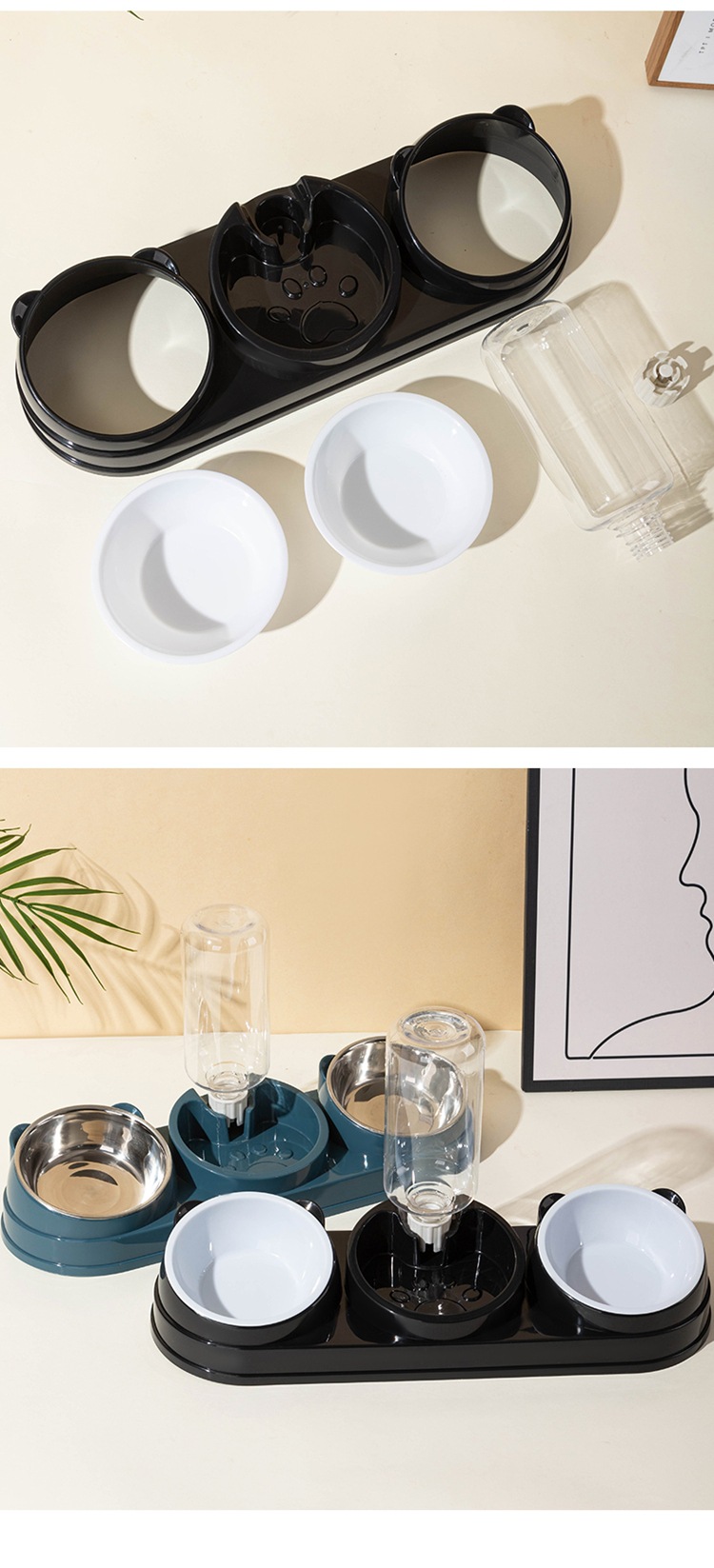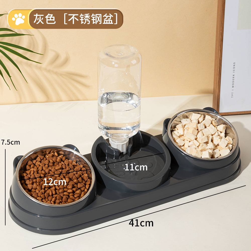 고양이 그릇 비스듬한 입 그릇 고양이 쌀 분지 더블 그릇 스테인리스 스틸 자동 물 리필 애완 동물 그릇 2-in -1 식수 피더
