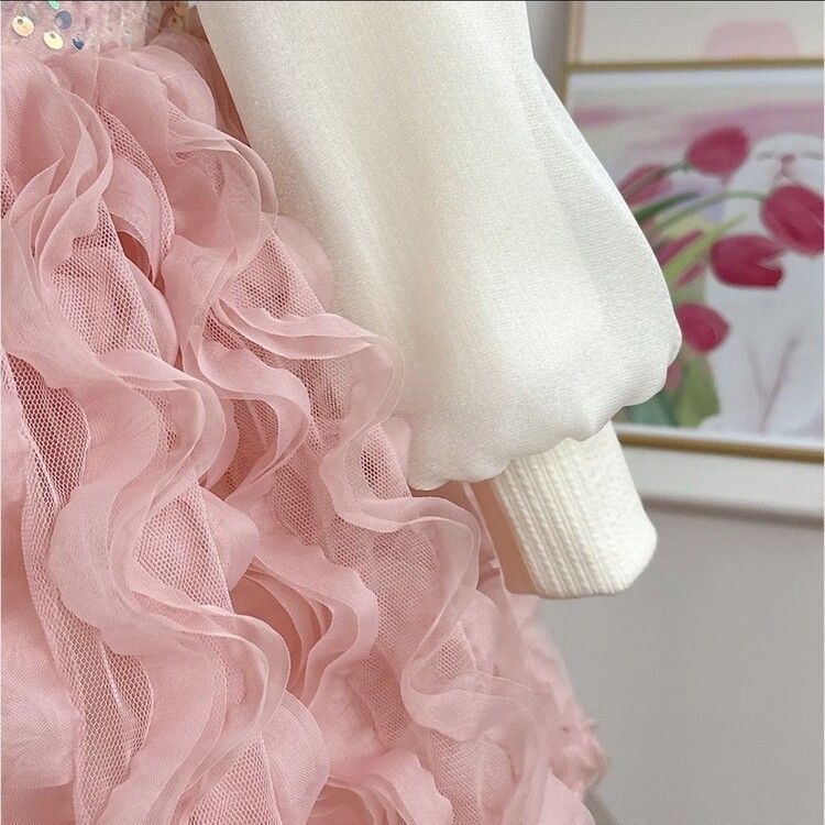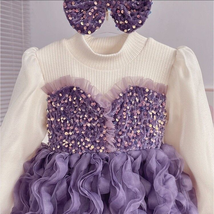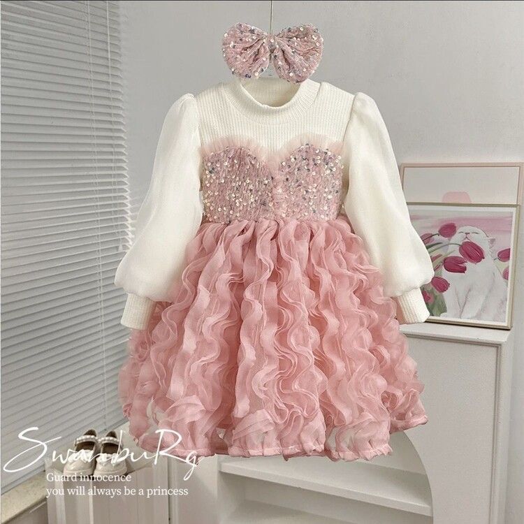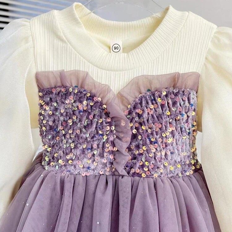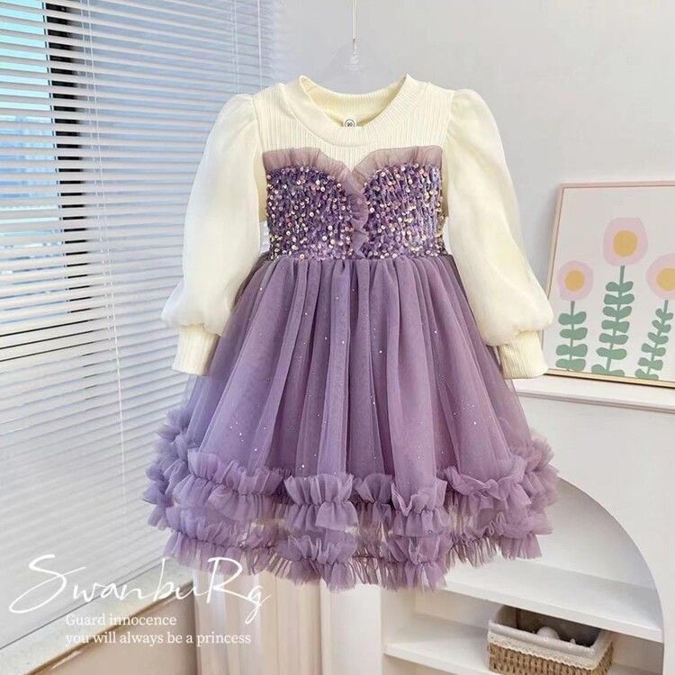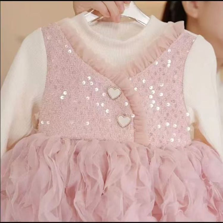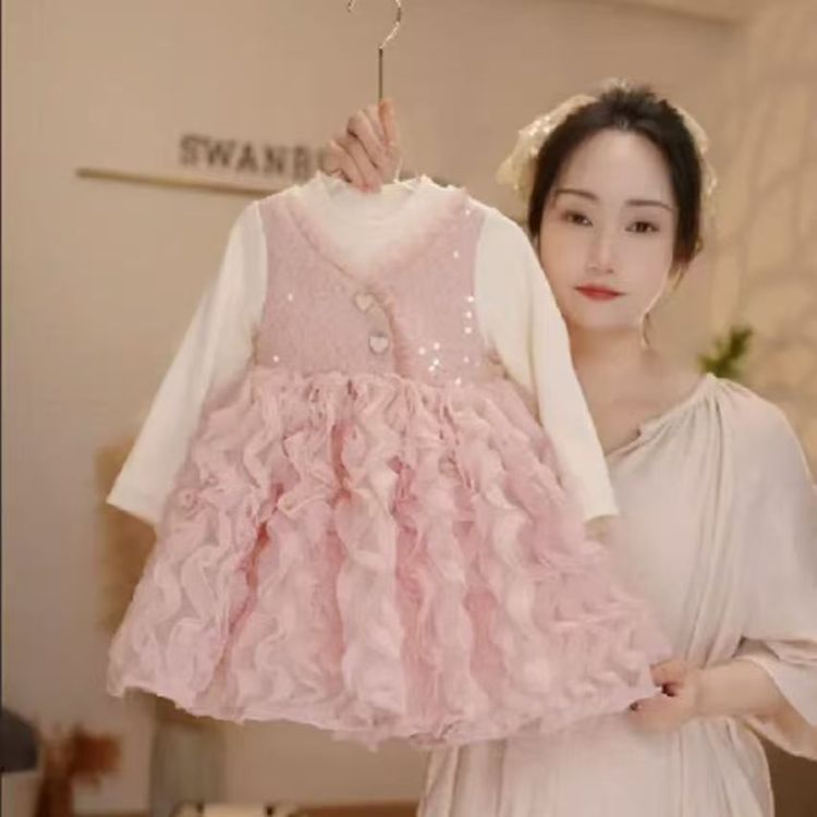 여자 드레스 가을, 겨울 2024 새로운 아기 푹신한 메쉬 스커트 크리스마스 드레스 플러스 벨벳 가짜 투피스 공주 드레스스토어 가기