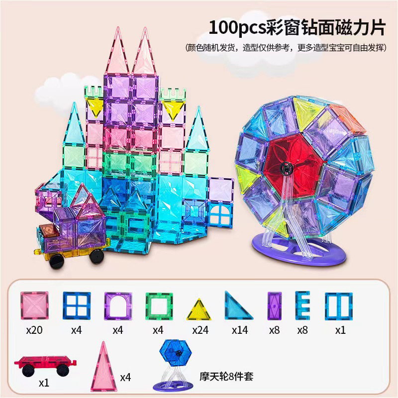 4D大自然色磁力管道玩具4D彩窗强磁磁力片大号磁力片强磁