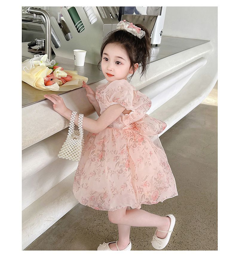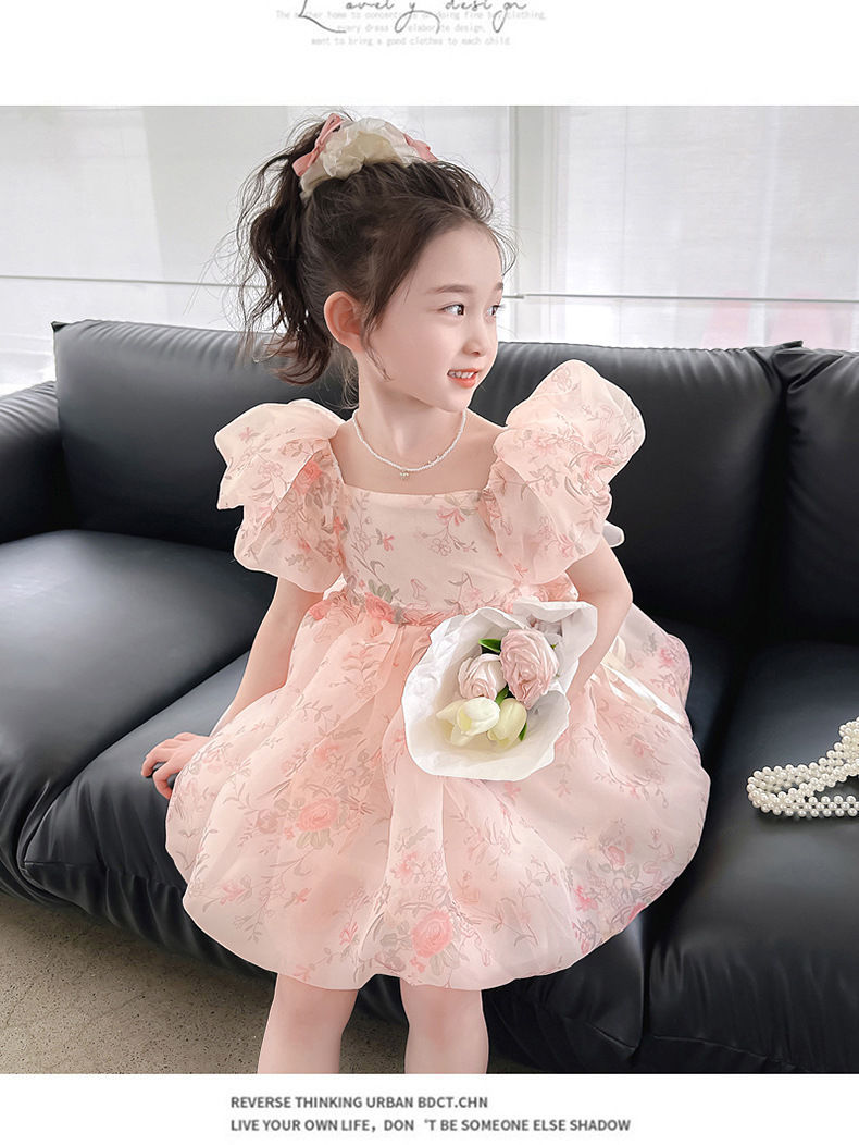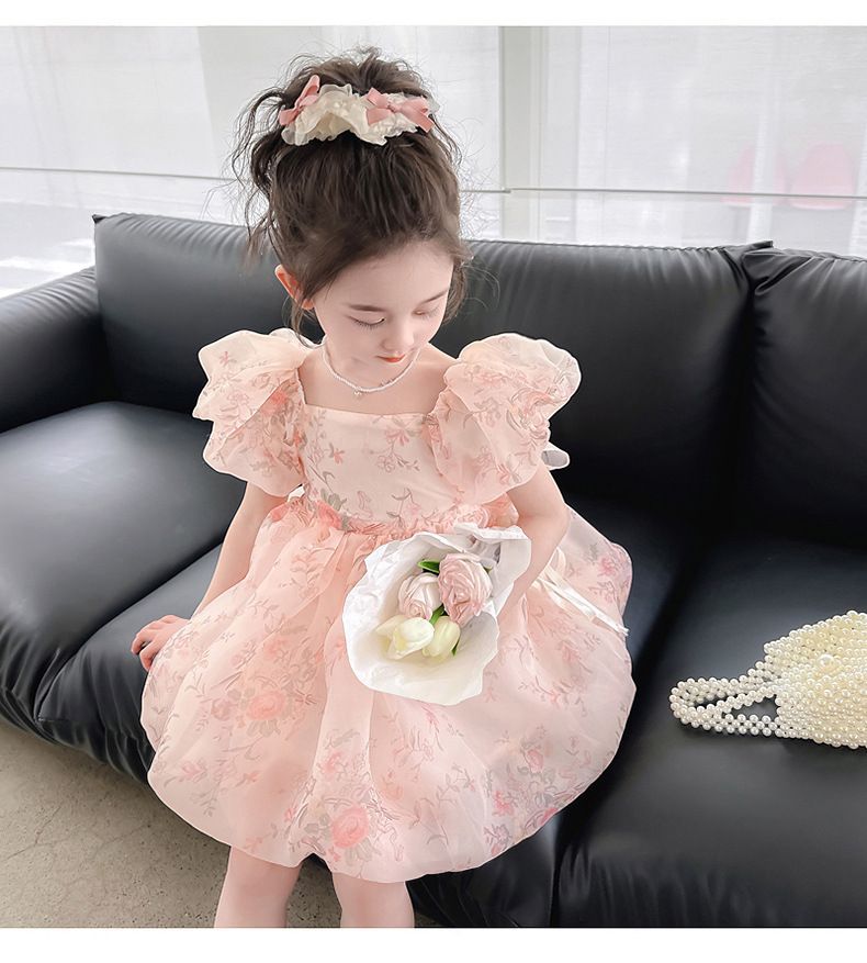 고급 소녀 원피스 여름 2025 새로운 여성 아기 서양 스타일 달콤한 꽃 거품 소매 우아한 공주 원피스