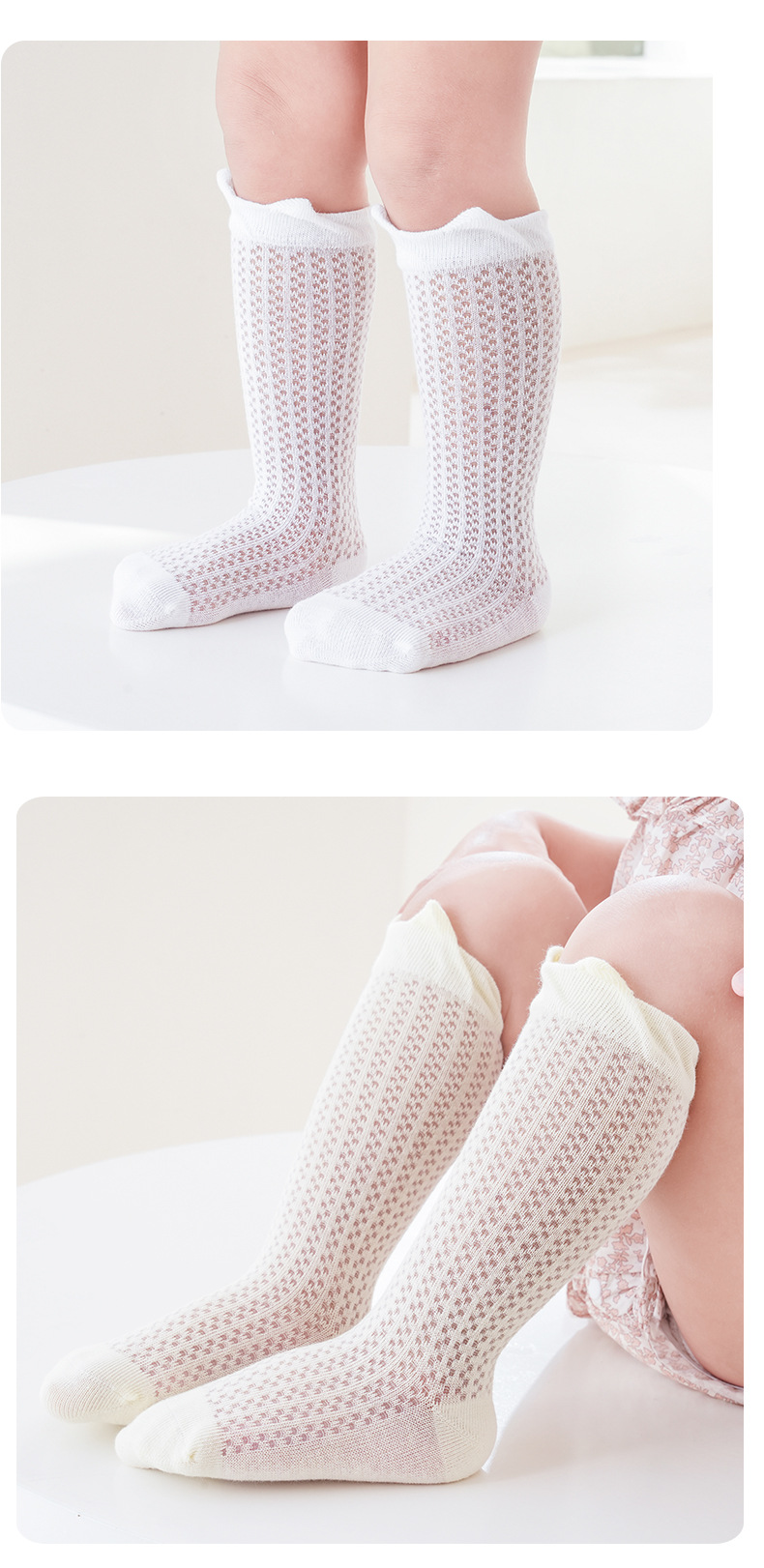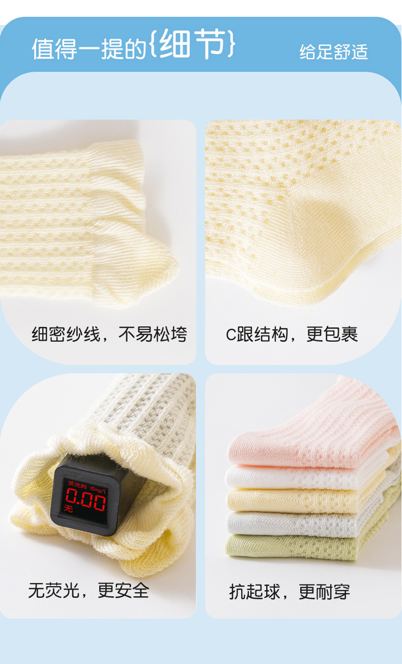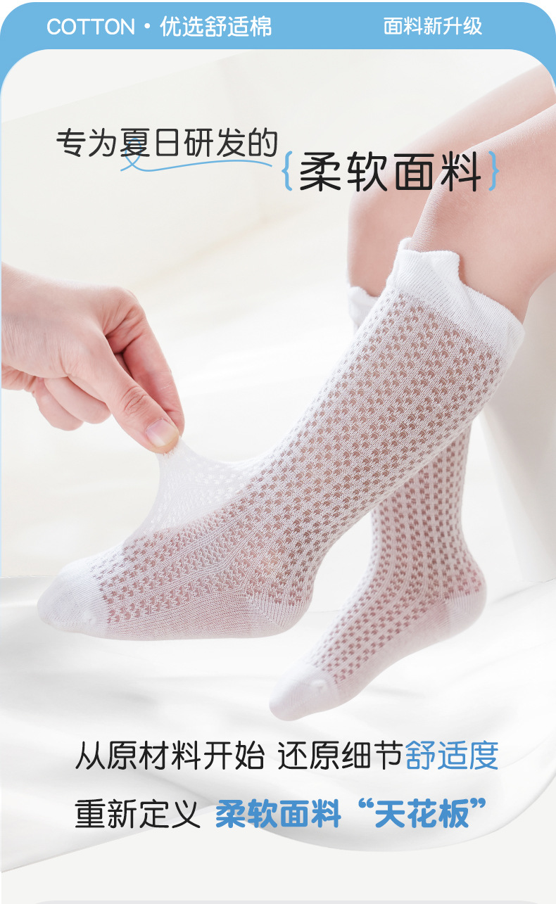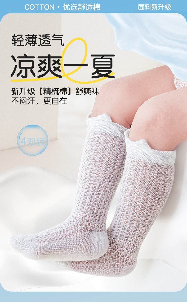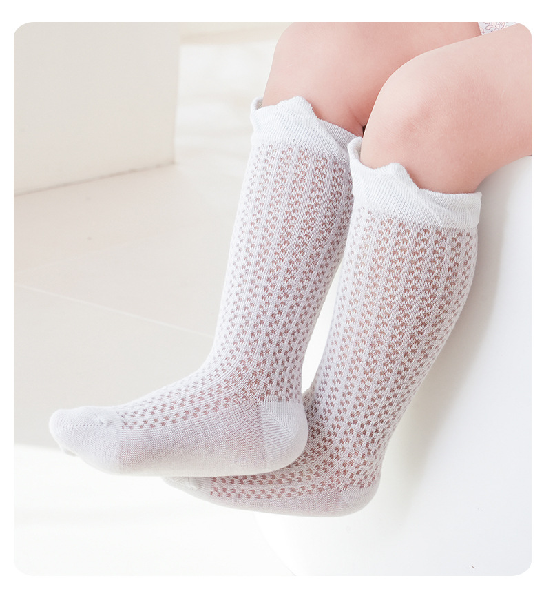 소년과 소녀를위한 여름 얇은 아기 양말 단색 통기성 메쉬 양말 귀여운 작은 귀 느슨한 중간 튜브 양말스토어 가기