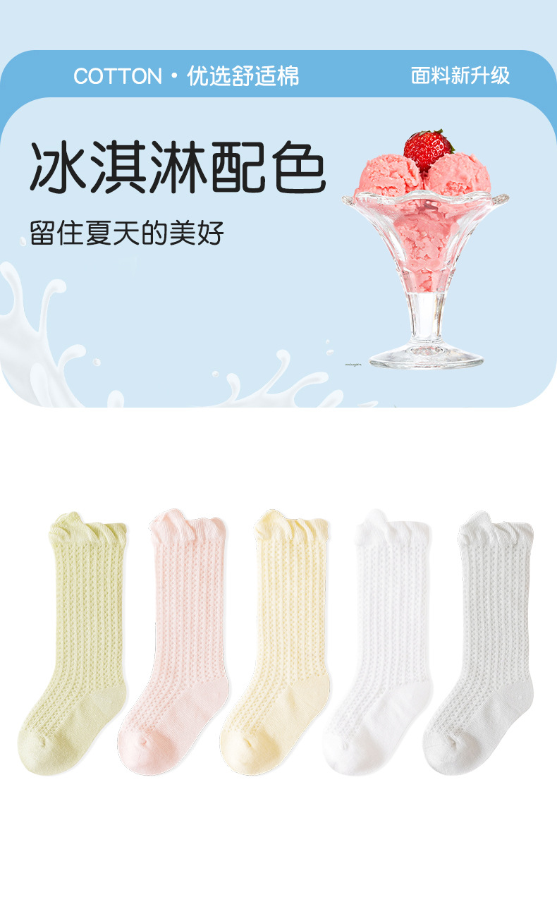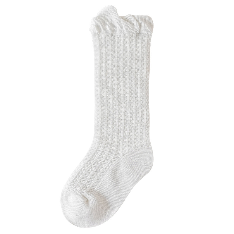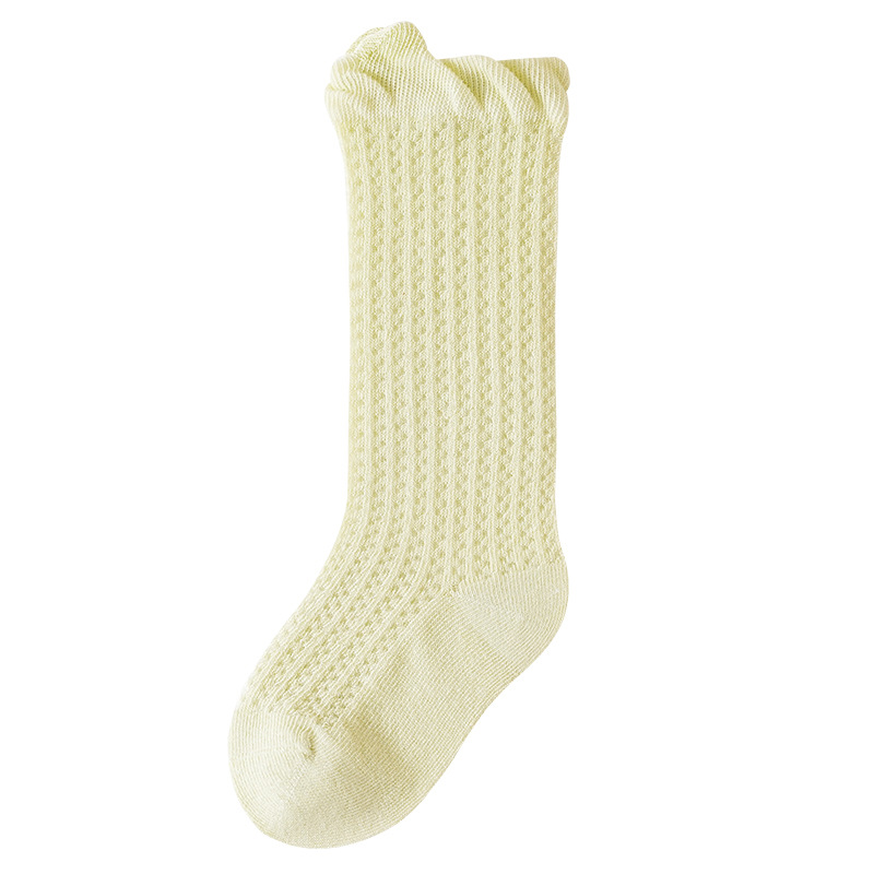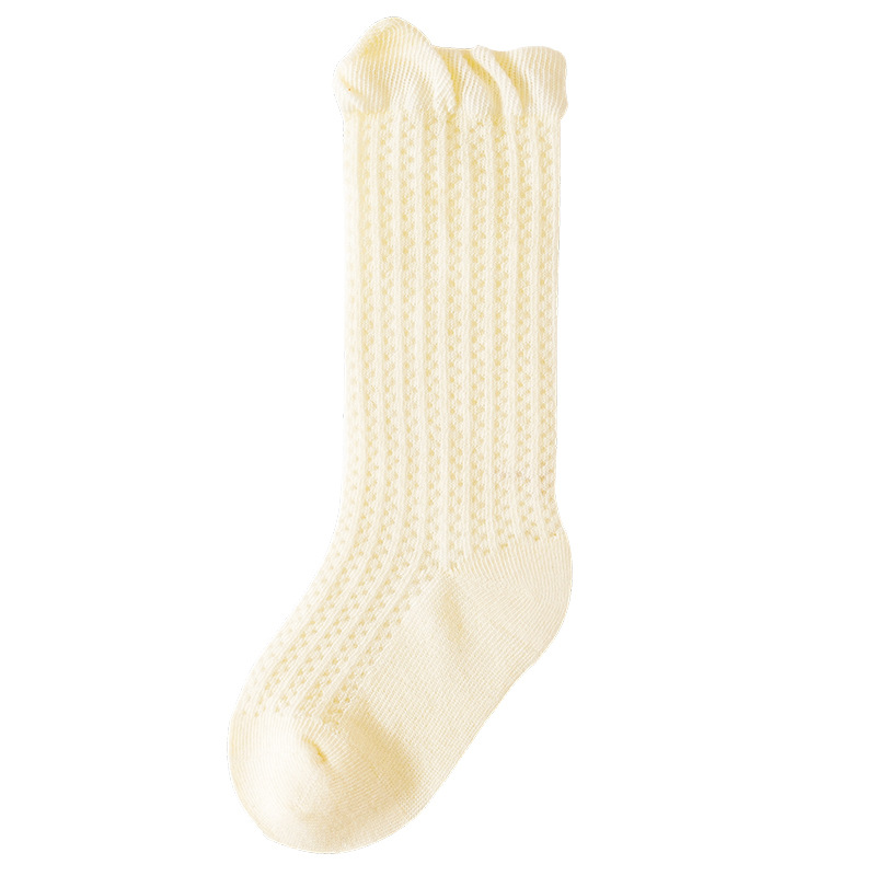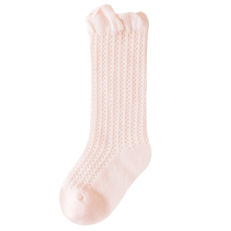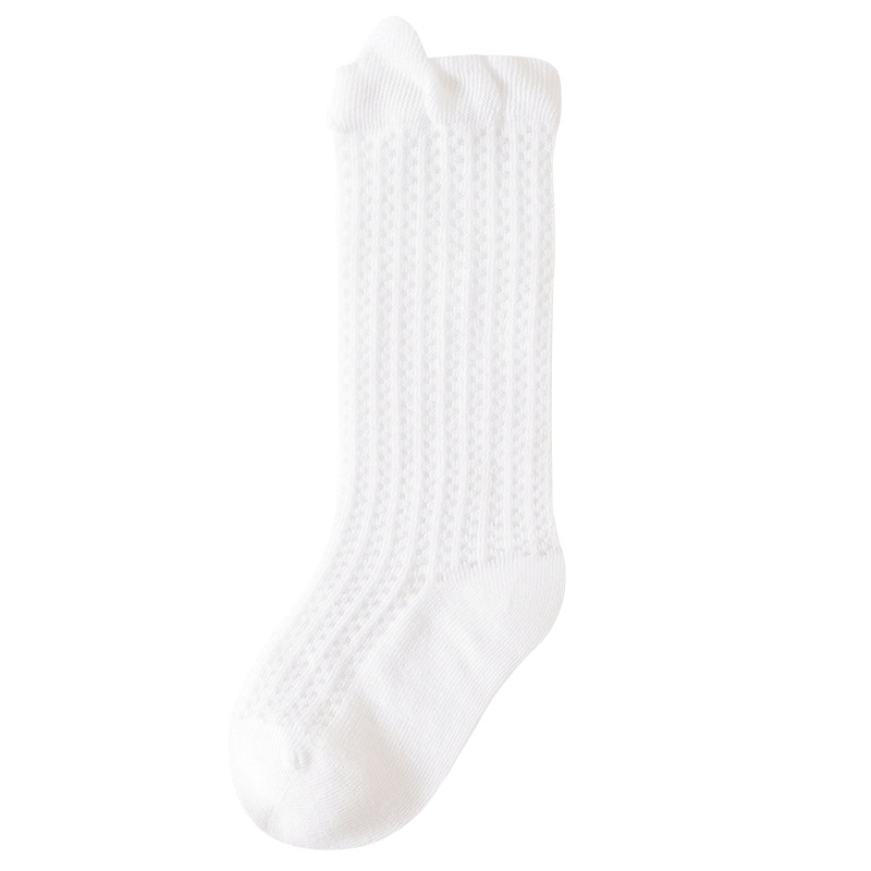 소년과 소녀를위한 여름 얇은 아기 양말 단색 통기성 메쉬 양말 귀여운 작은 귀 느슨한 중간 튜브 양말