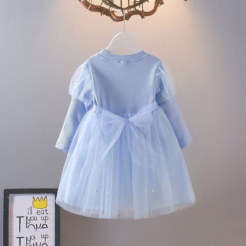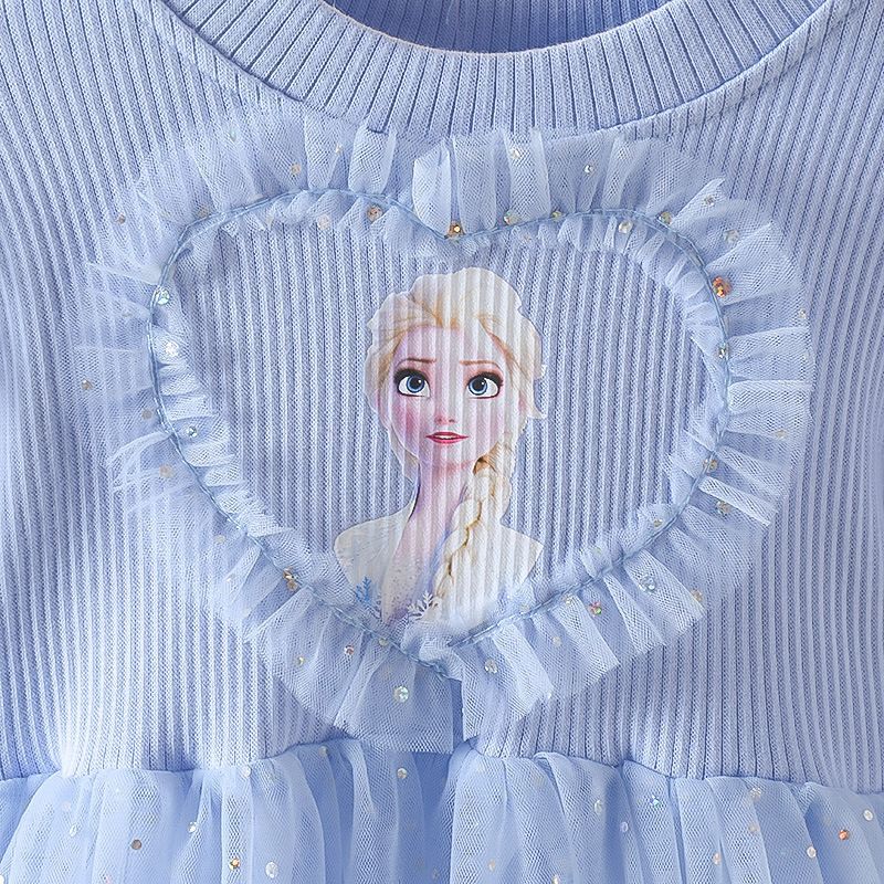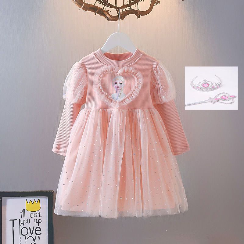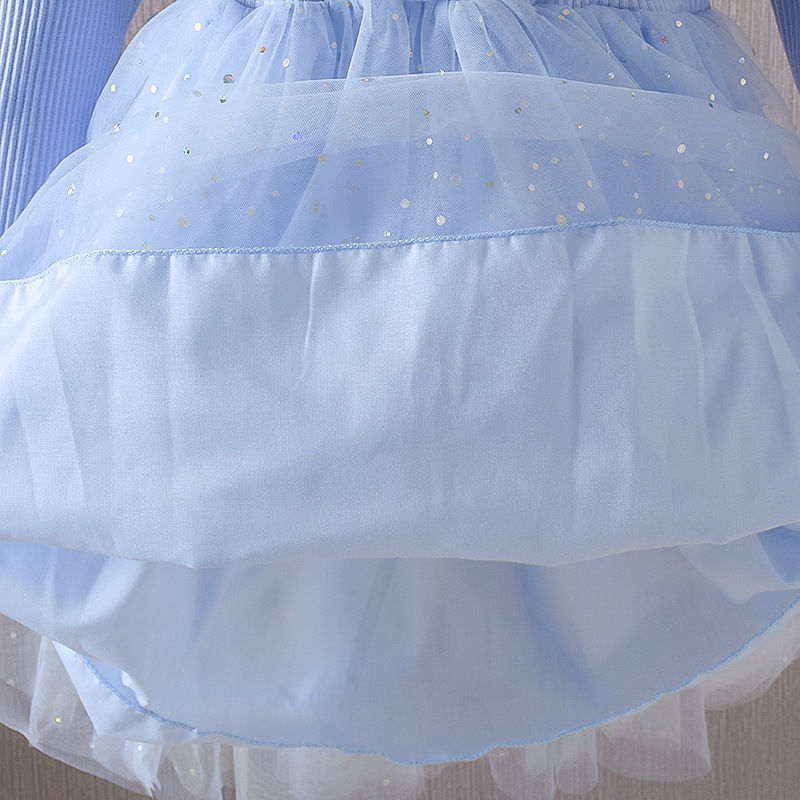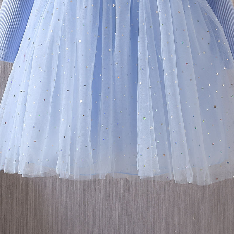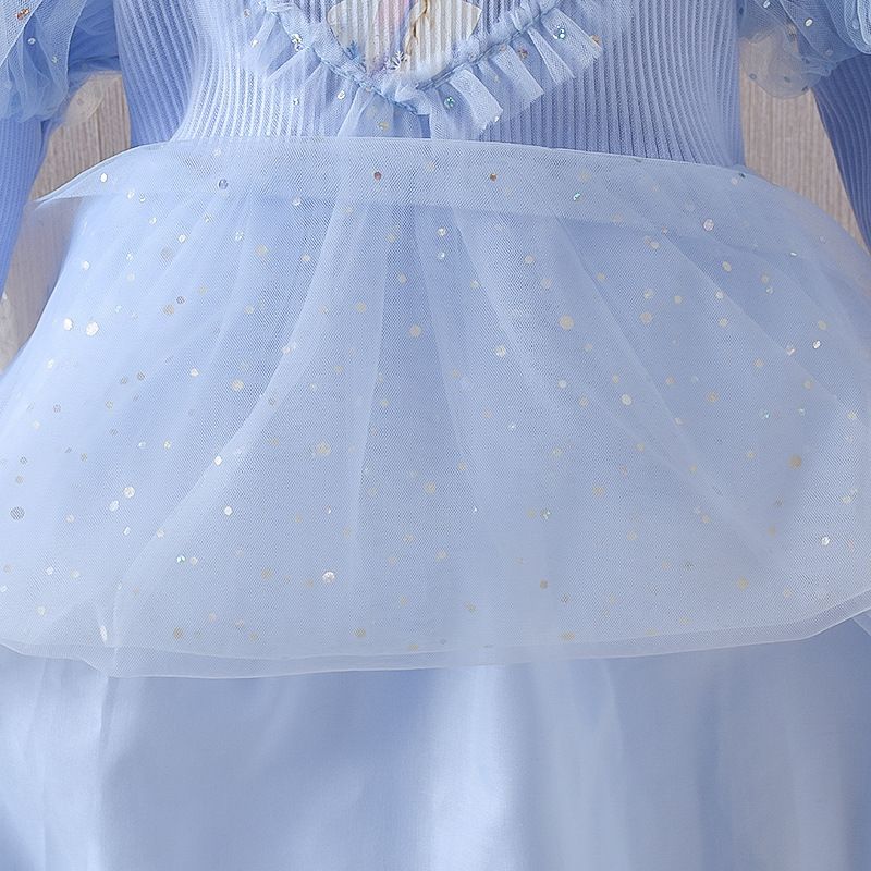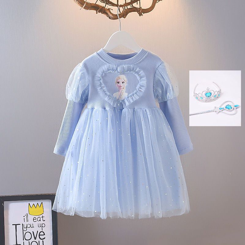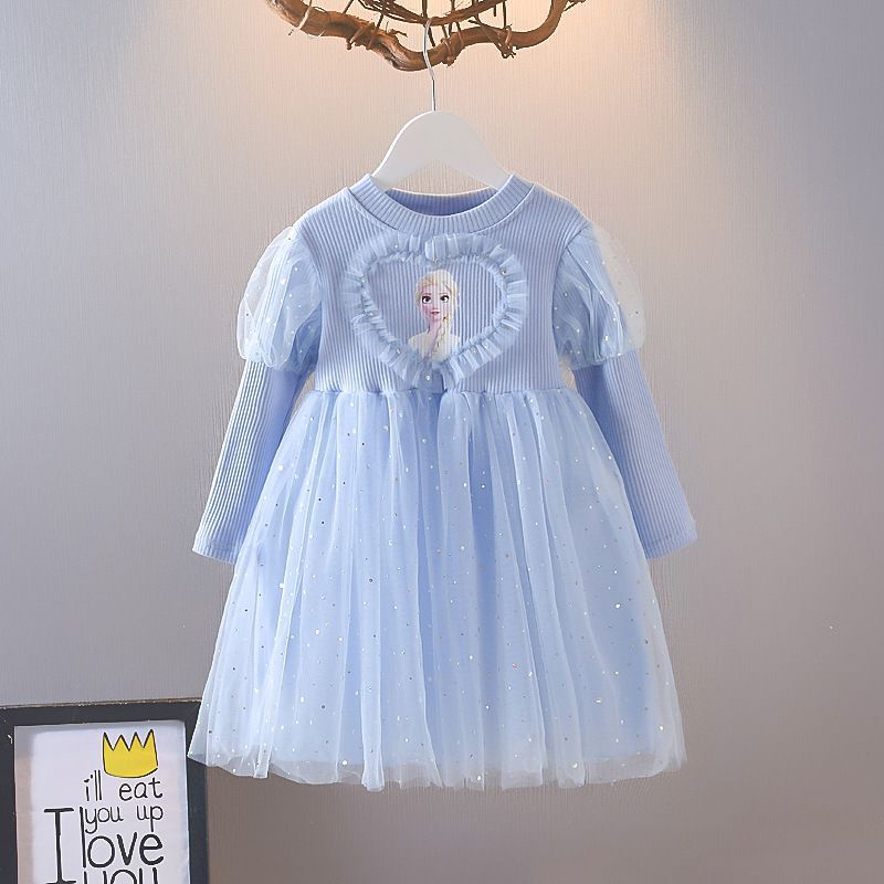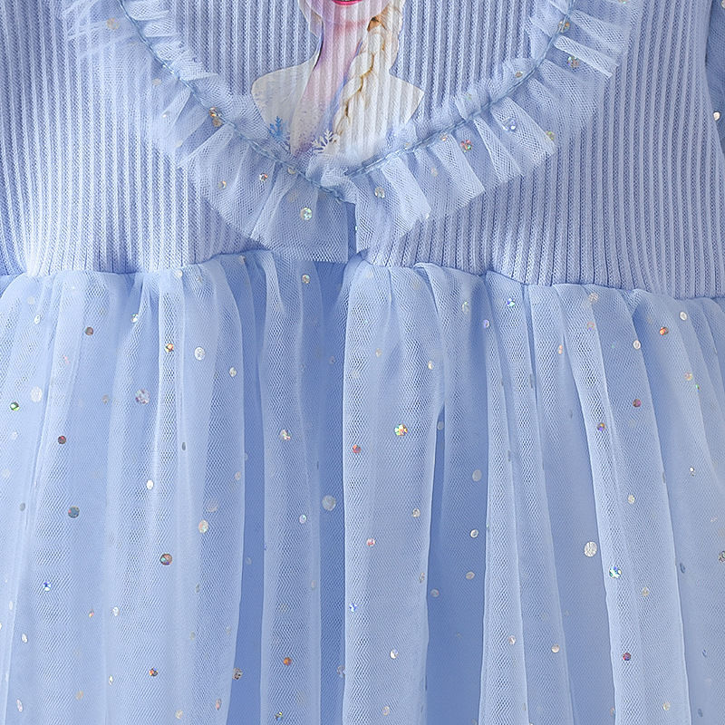 겨울왕국 소녀 봄 드레스 아기 긴팔 엘사 공주 드레스 어린이 봄 엘사 얇은 명주 그물 드레스 유행