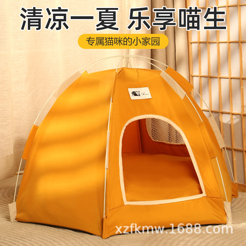 사계절 고양이 둥지 애완 동물 텐트 분리 및 세척 가능한 여름 매트 반 밀폐형 작은 개와 고양이 집 어린이 놀이터