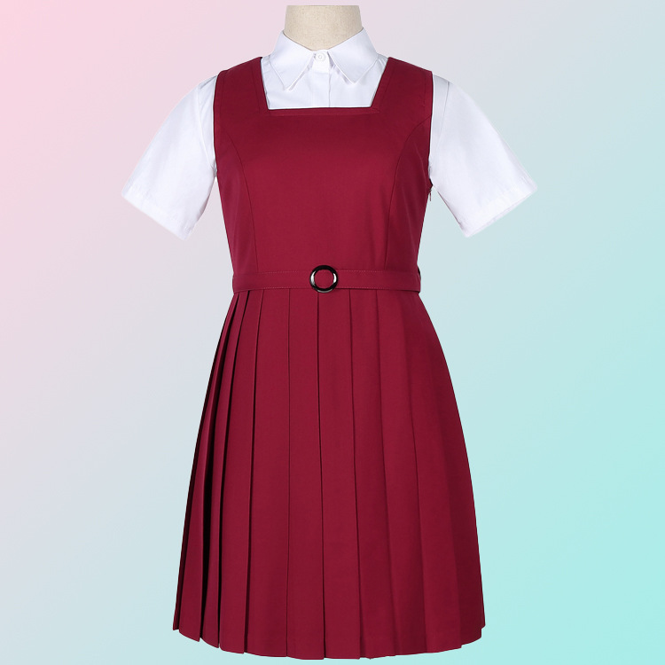 스팟 캐미솔 점프수트, 밑단 스커트, 외부 착용 가능, 민소매 안감, 중간길이 학생복, 교복, 드레스 스커트