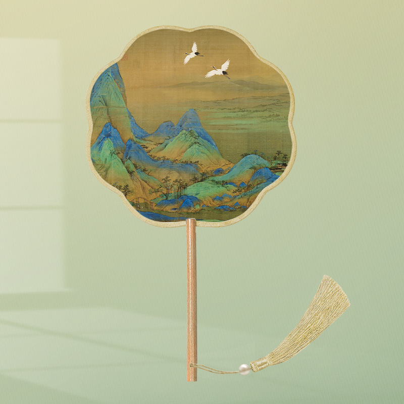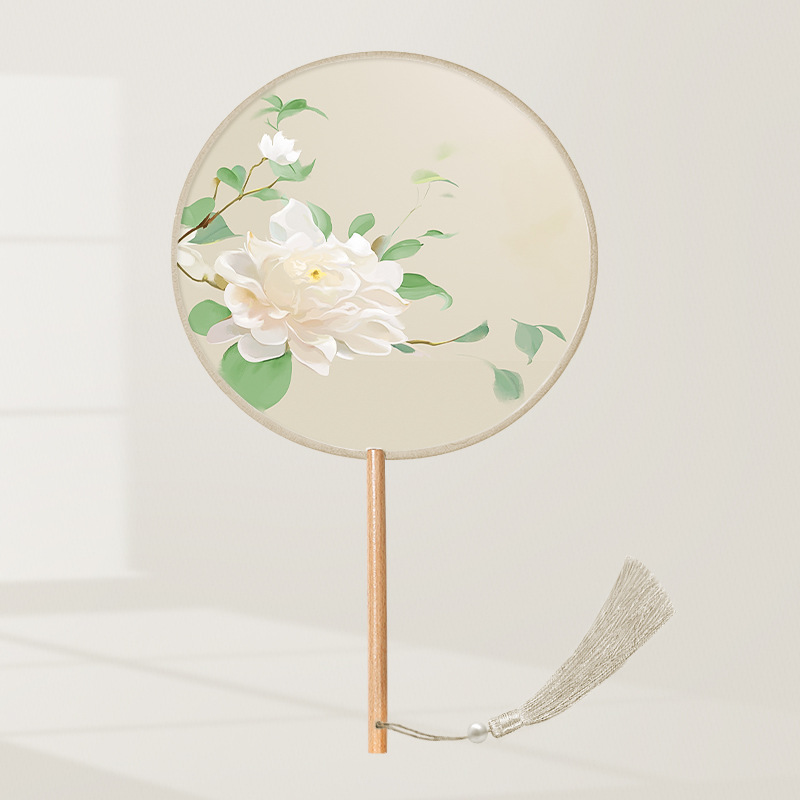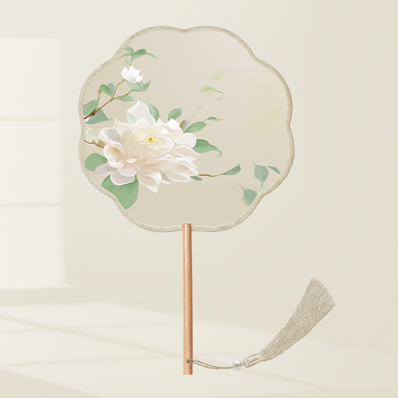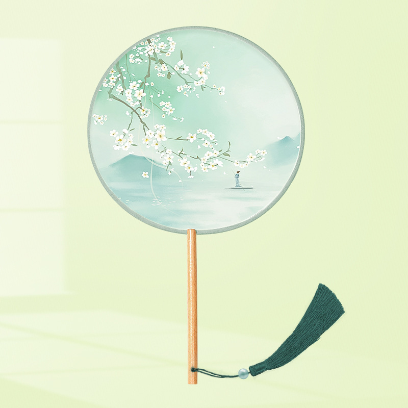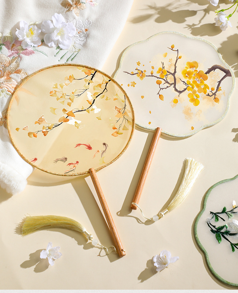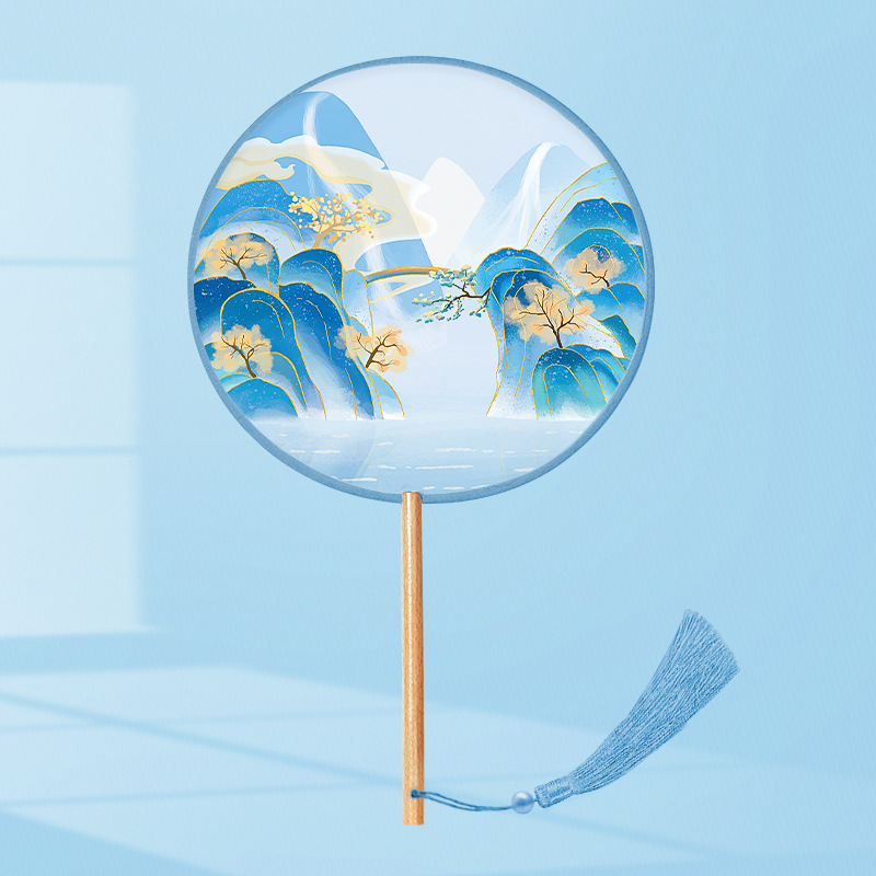 둥근 팬 고대 스타일 팬 어린이 여름 반투명 긴 손잡이 댄스 팬소녀 고대 중국 의류 청삼 수 놓은 작은 라운드 팬
